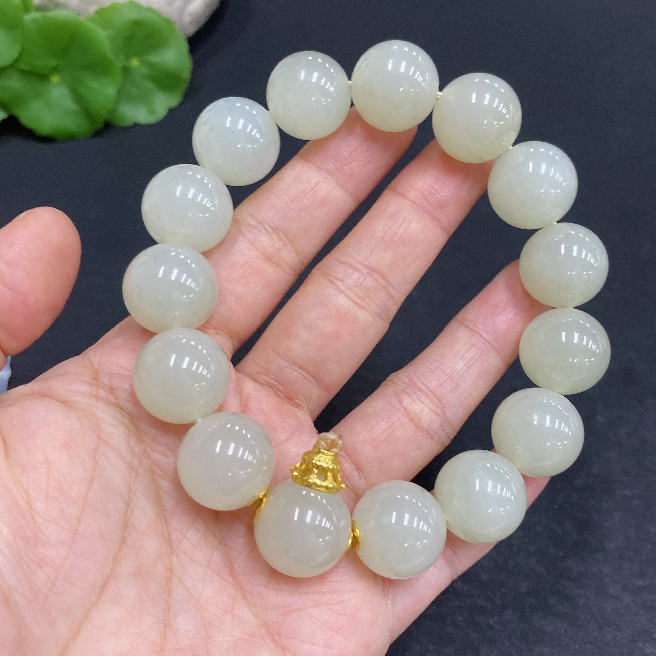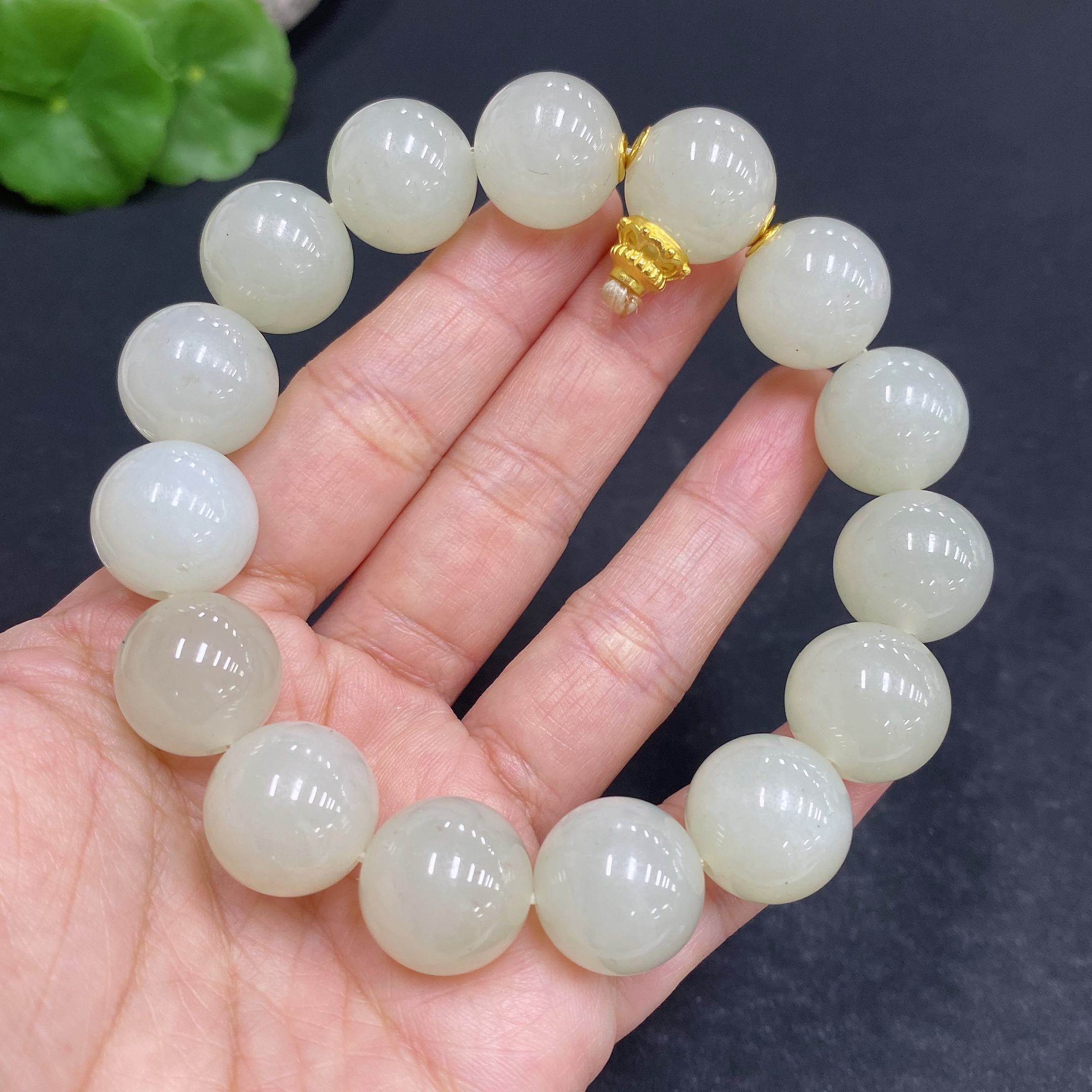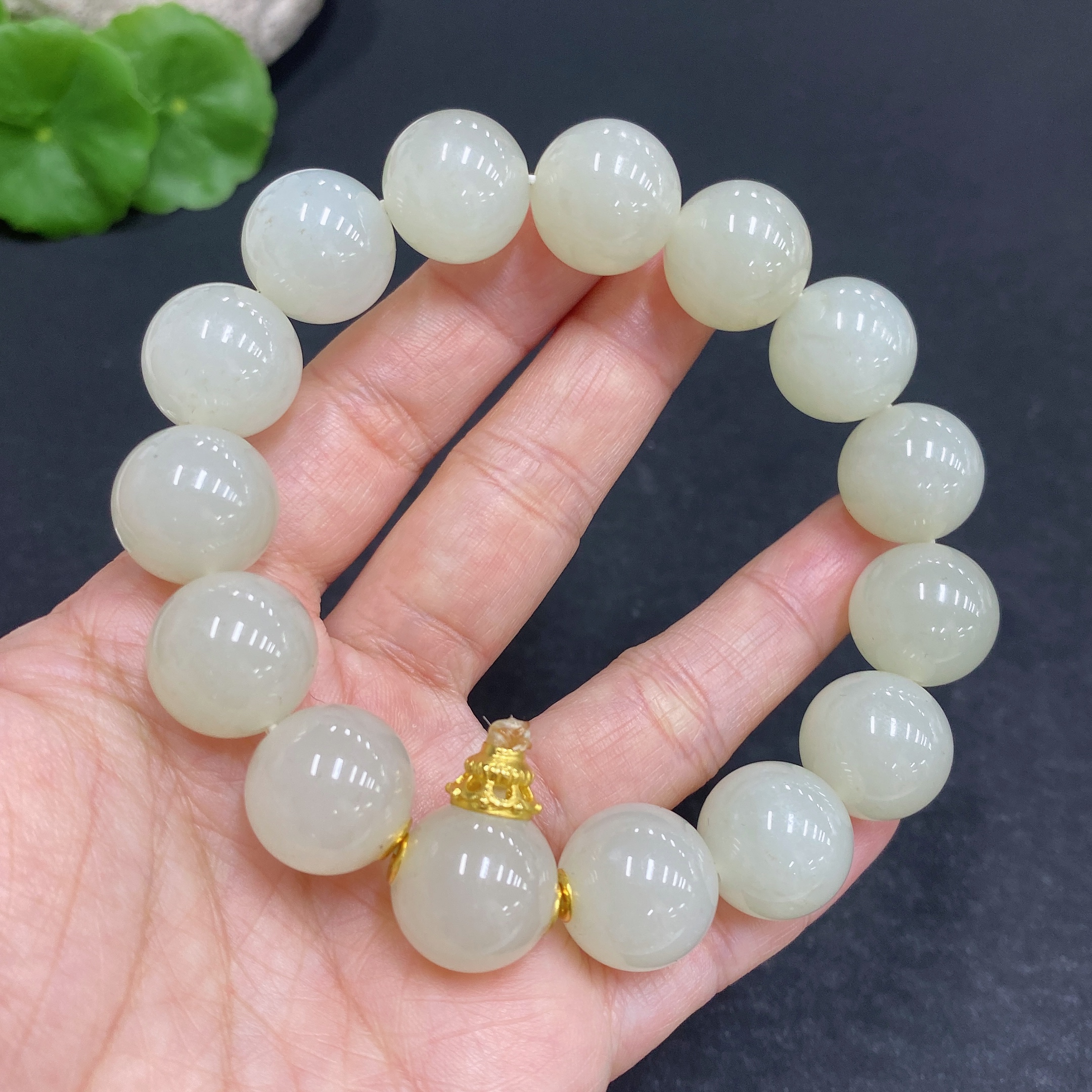 Hetian Jade Bracelet, approx. 14.8mm beads, 97% gold content, total weight approx. 81.3g