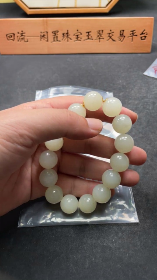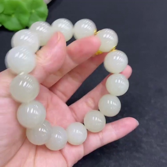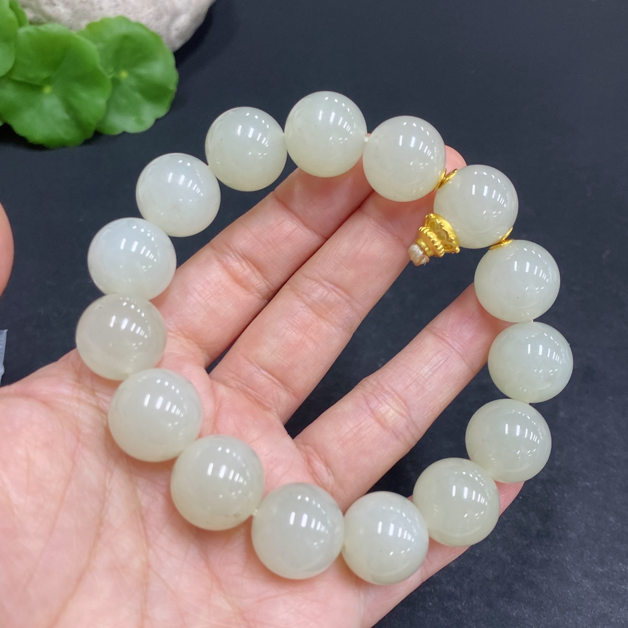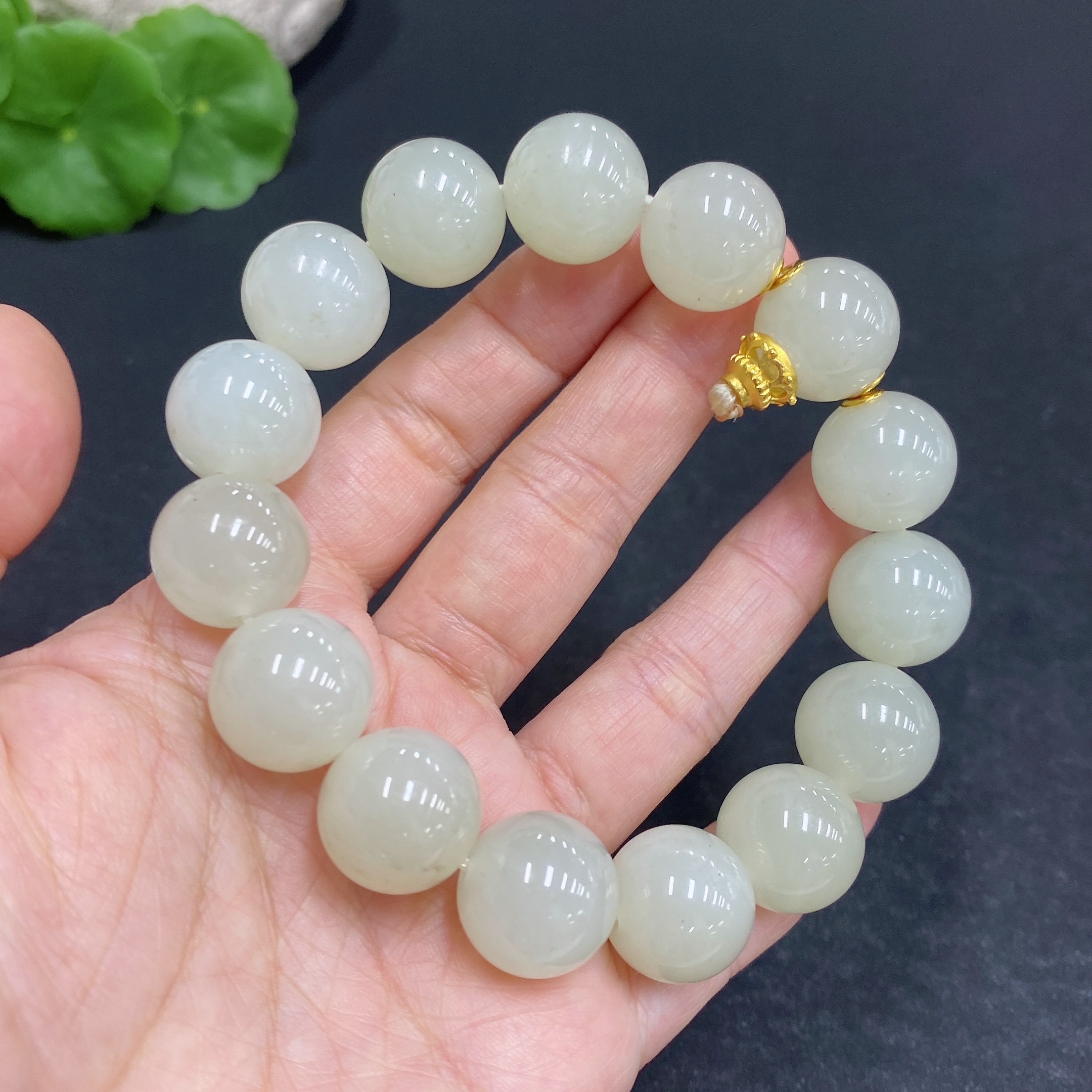 Hetian Jade Bracelet, approx. 14.8mm beads, 97% gold content, total weight approx. 81.3g