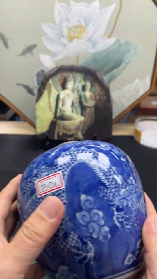 Ceramic chip, mid-to-late Qing dynasty blue and white dragon jar (subject to actual item)