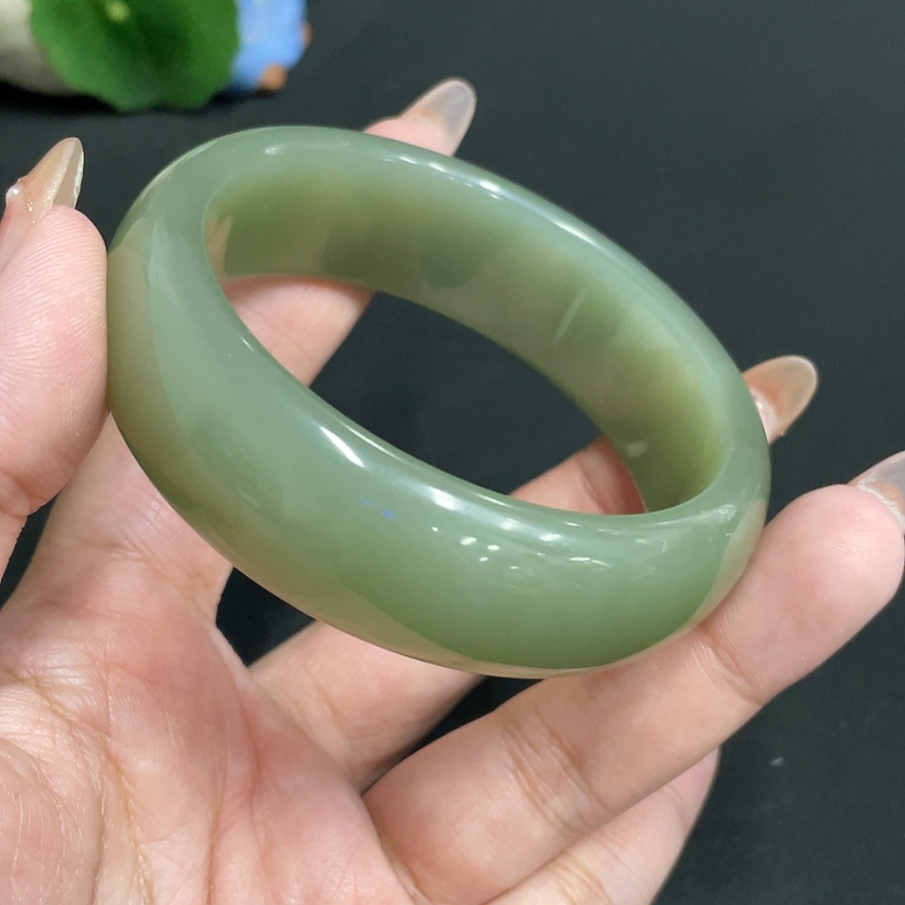 Hetian Jade Round Bracelet, Size 58.5, Total Weight Approx. 75.2g