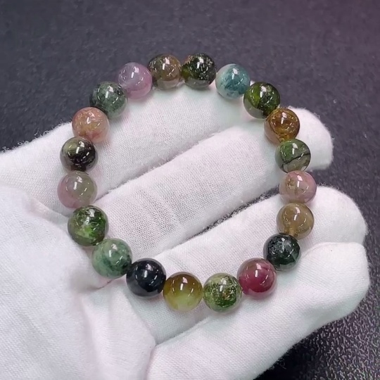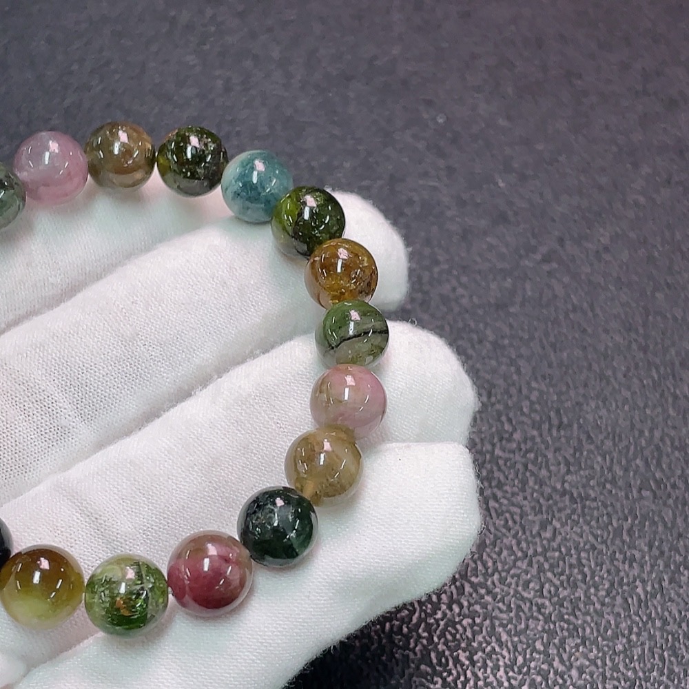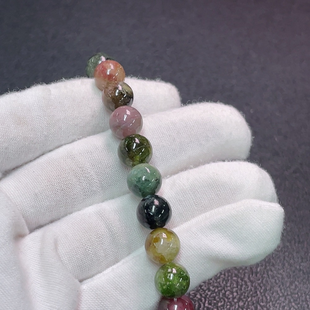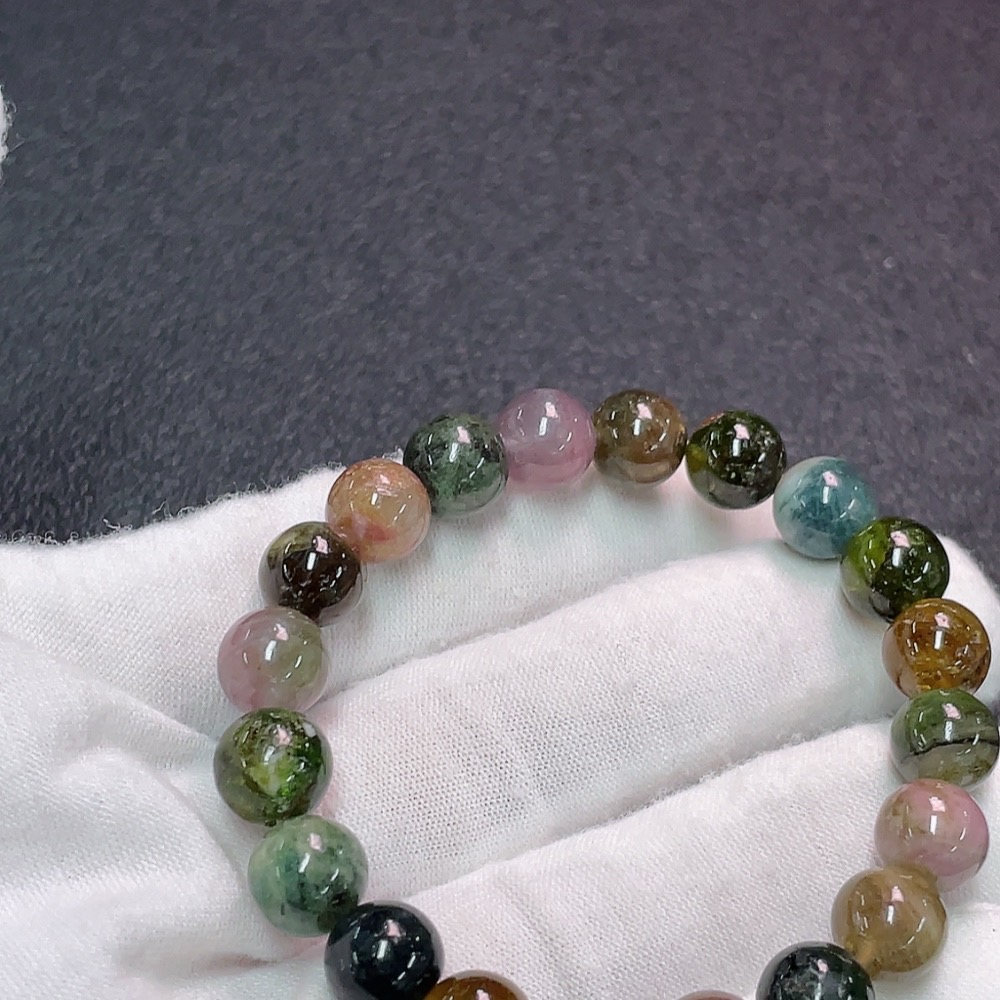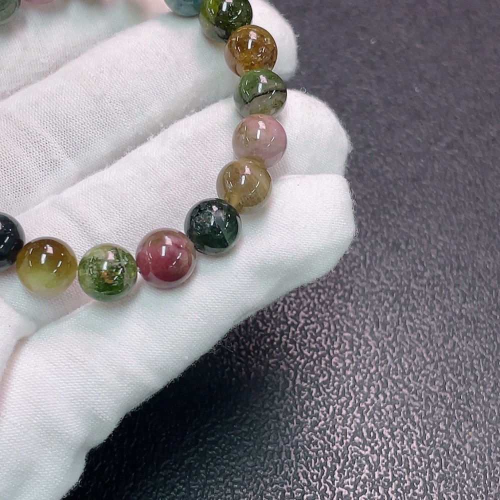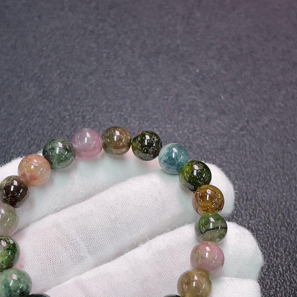 Tourmaline Bracelet with Other Mineral Components, Visible Organic Matter, Total Weight Approx. 19.41g, Size ~8.7mm