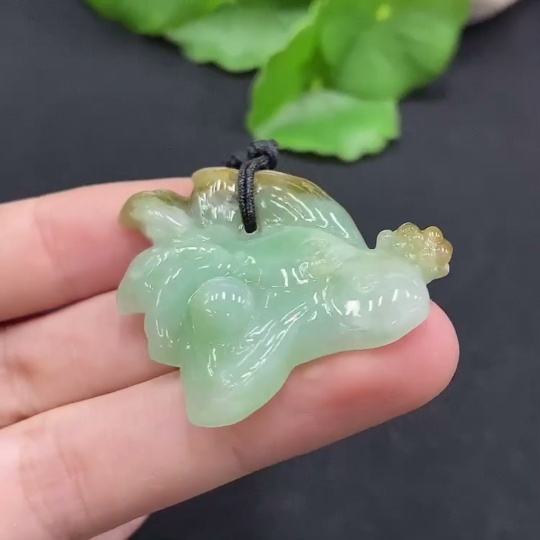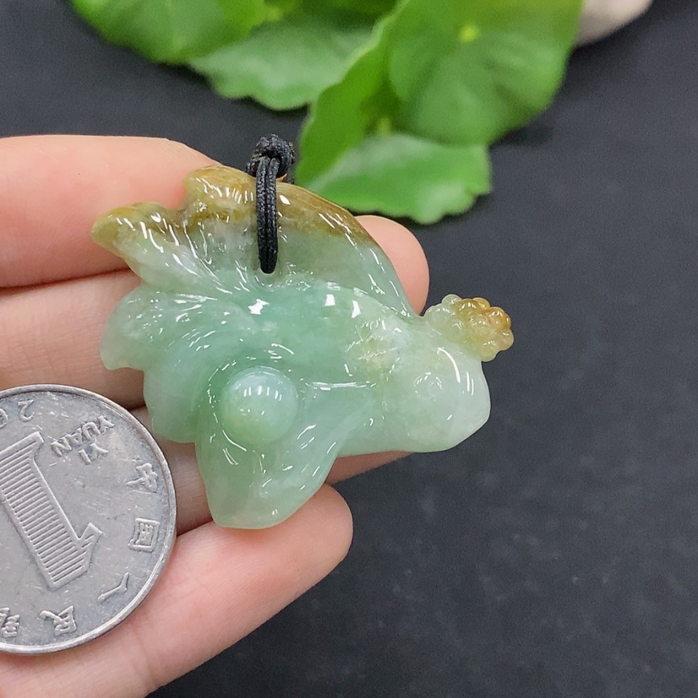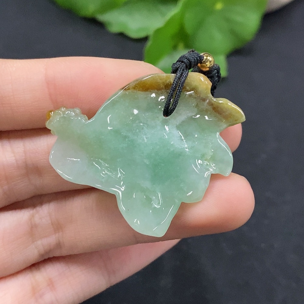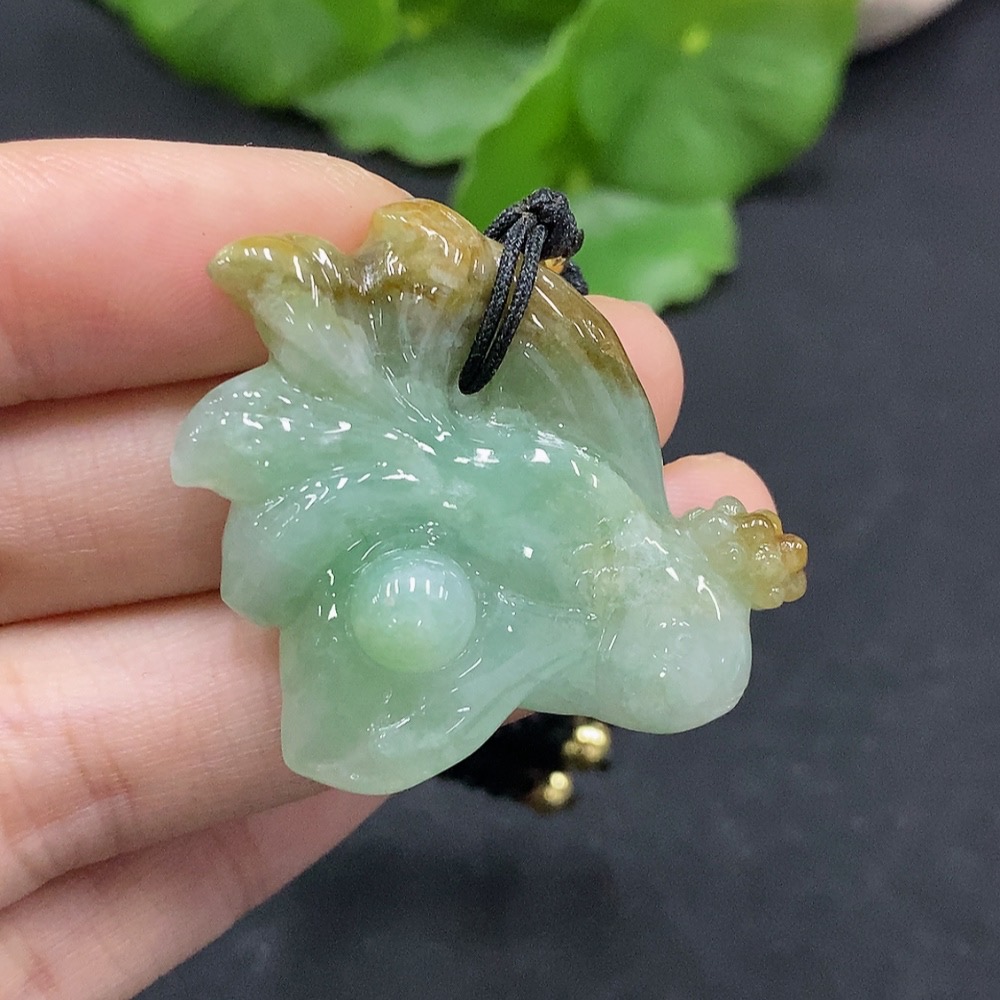 Jadeite Fish Pendant Total Weight Approx. 17.4g (Including Cord) (Color Origin Undetermined)