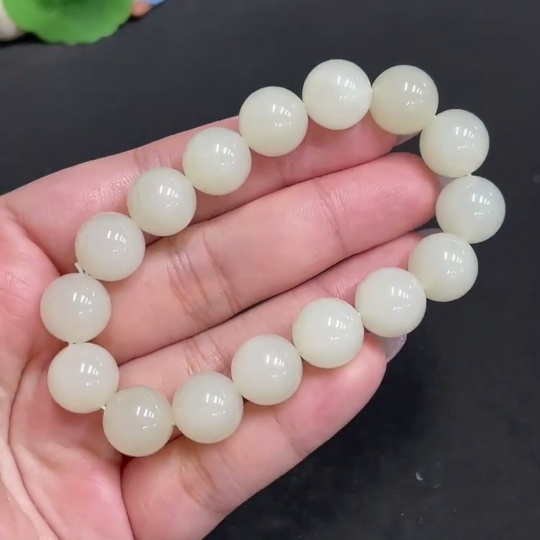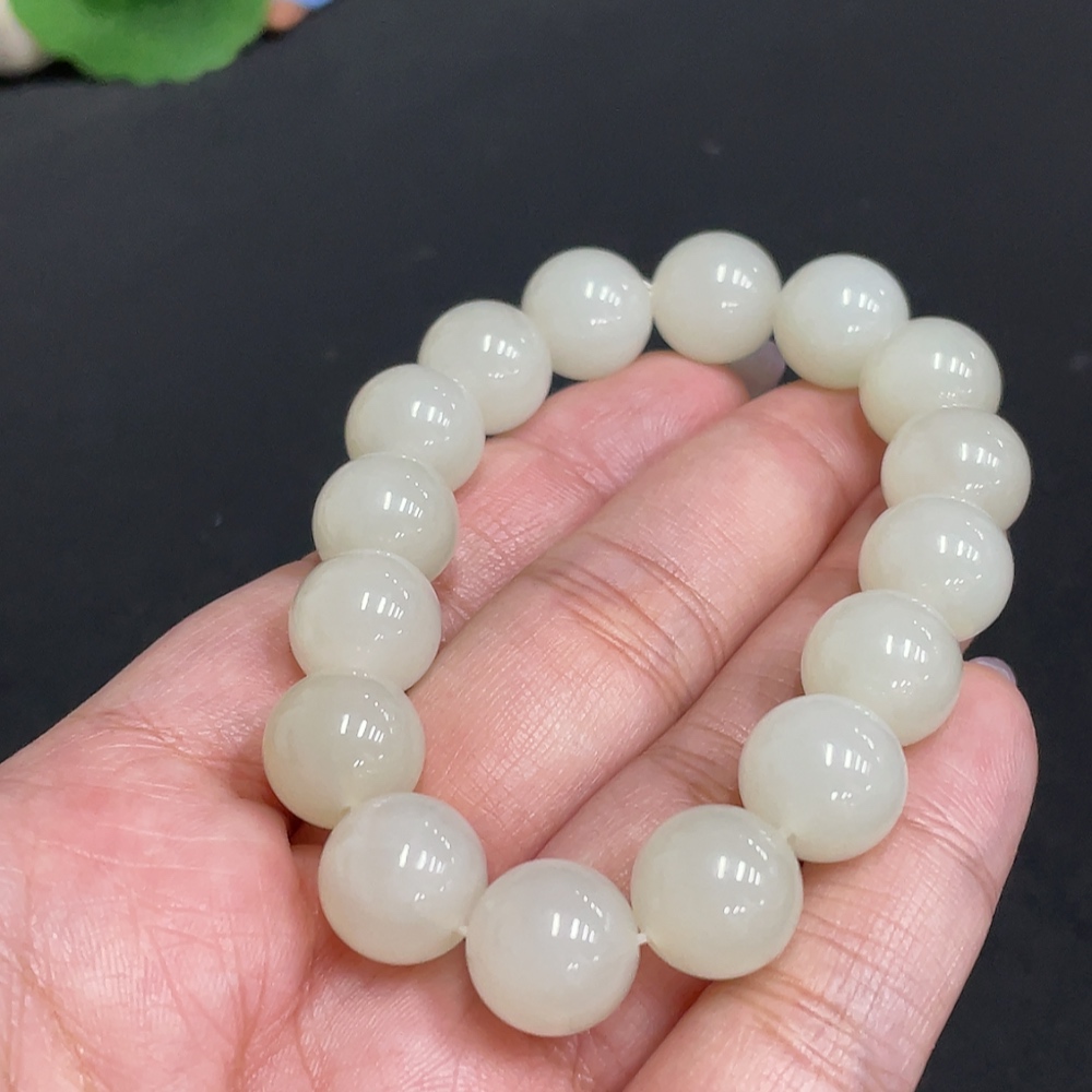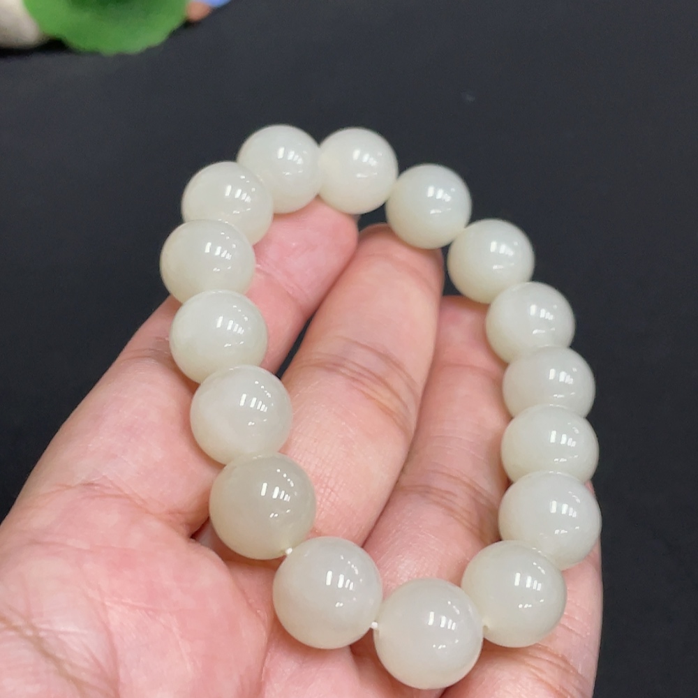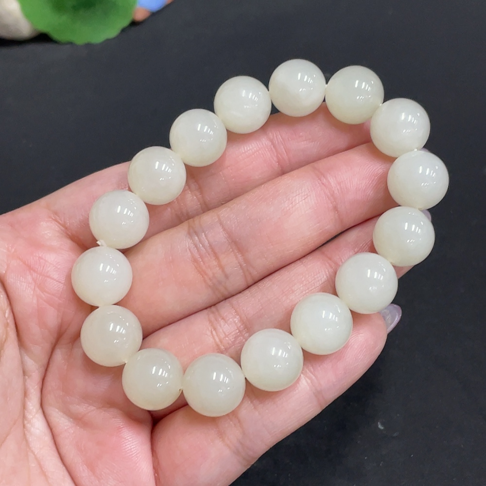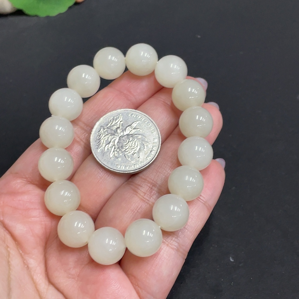 Hetian Jade Bracelet, Approx. 11.9 mm Beads, Total Weight About 42.2g