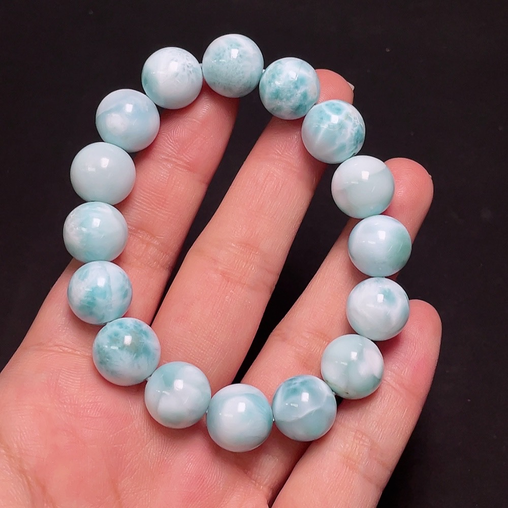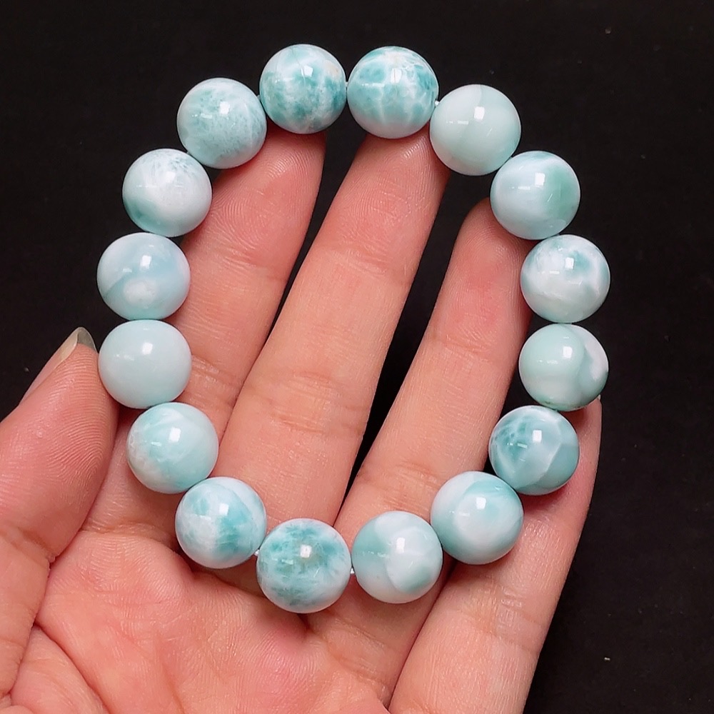 Larimar Bracelet Total Weight Approx. 48.39g Size 12.6mm Contains Other Mineral Components Visible Organic Matter