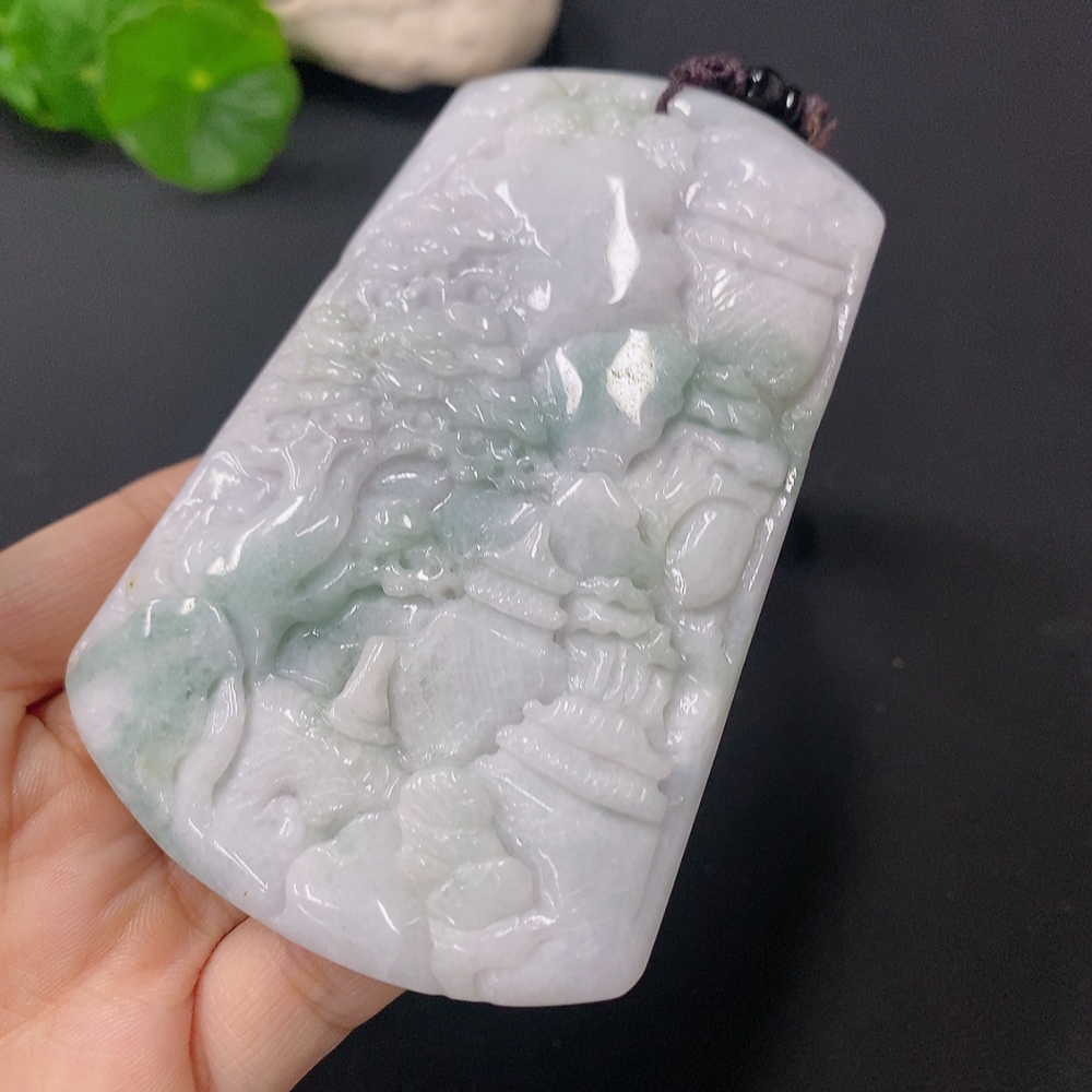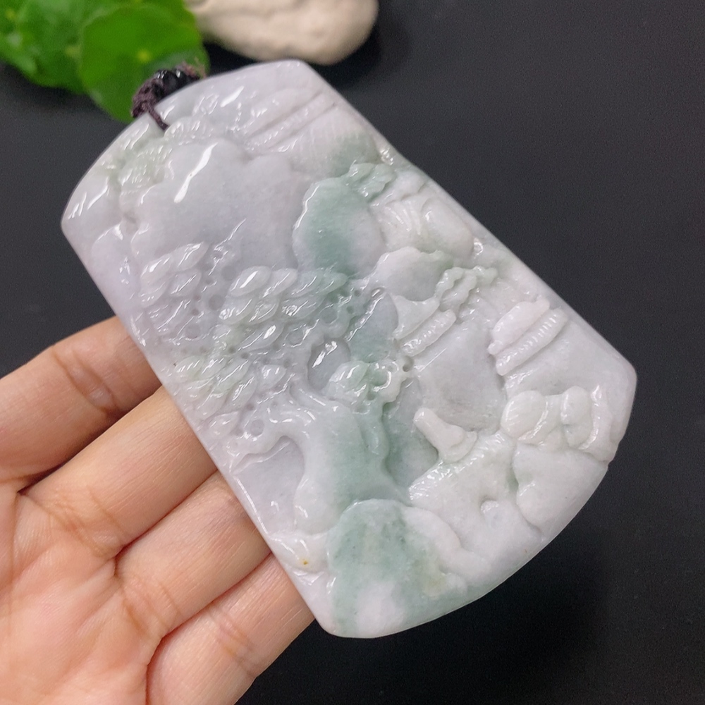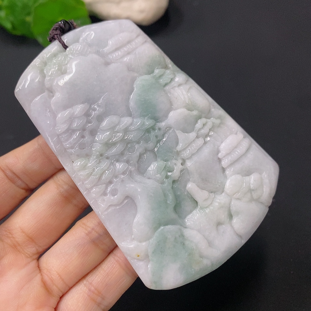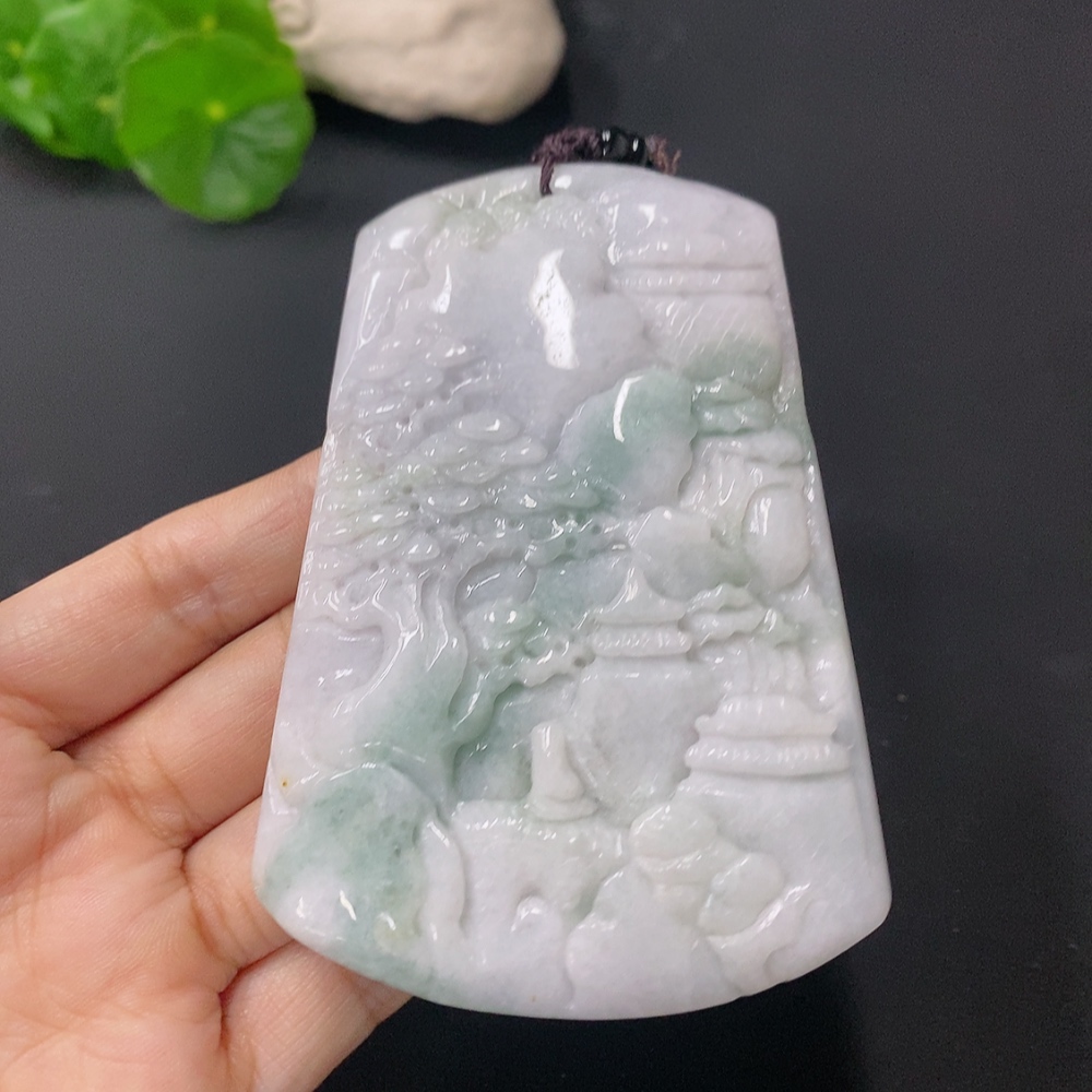 Jadeite Landscape Pendant Total Weight Approx. 79.37g With Non-Grade A Beads