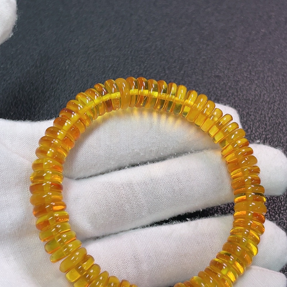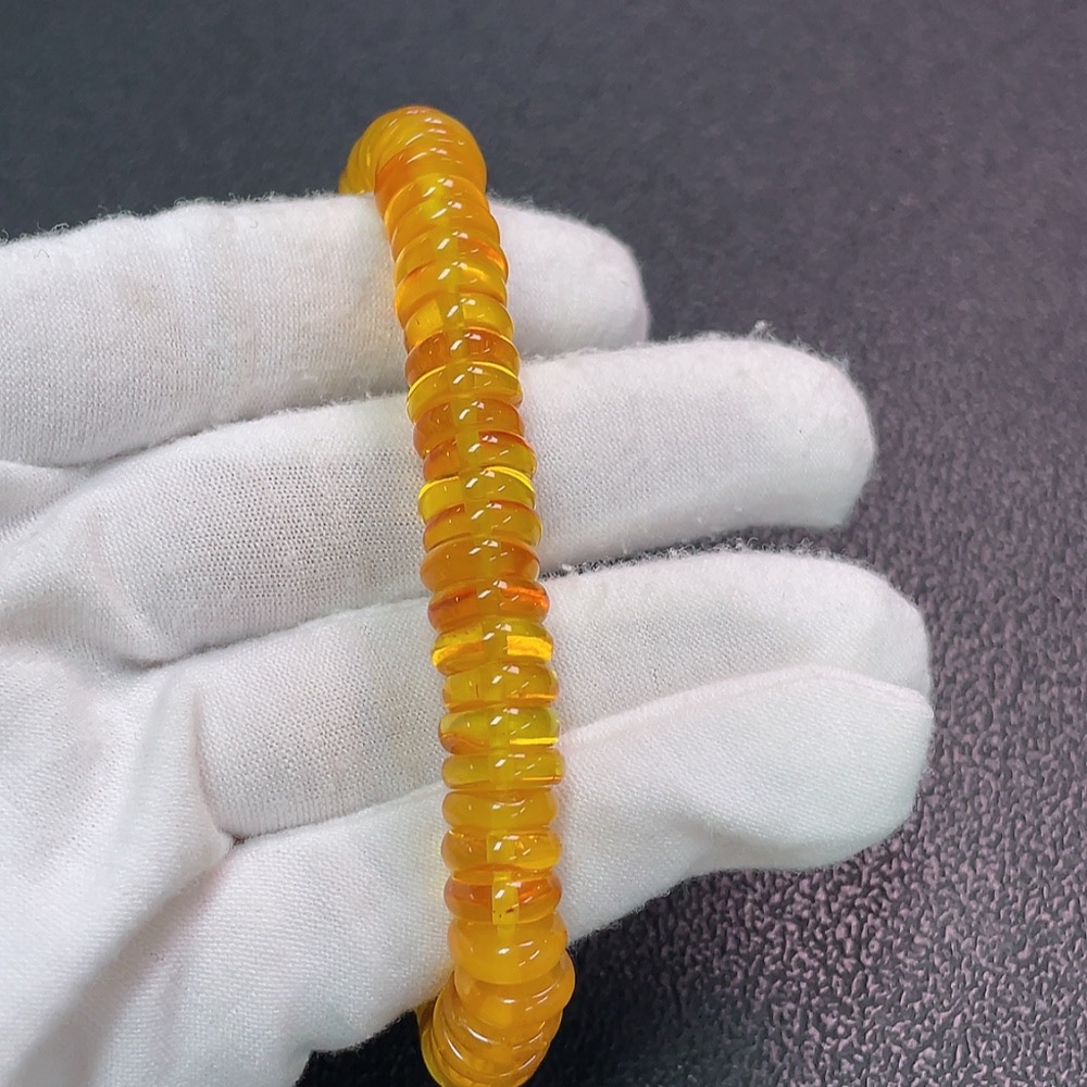 Amber Beeswax Bracelet, Total Weight Approx. 12.67g, Bead Size About 9.4mm