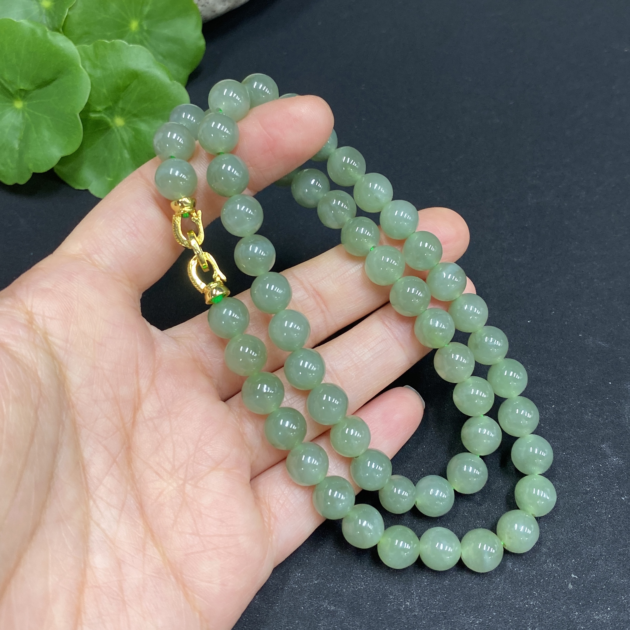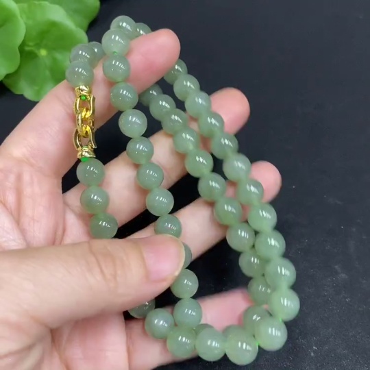 Hetian Jade Bead Necklace, Approx. 7.6mm, Non-Gold-Inlaid, Total Weight Approx. 40.8g