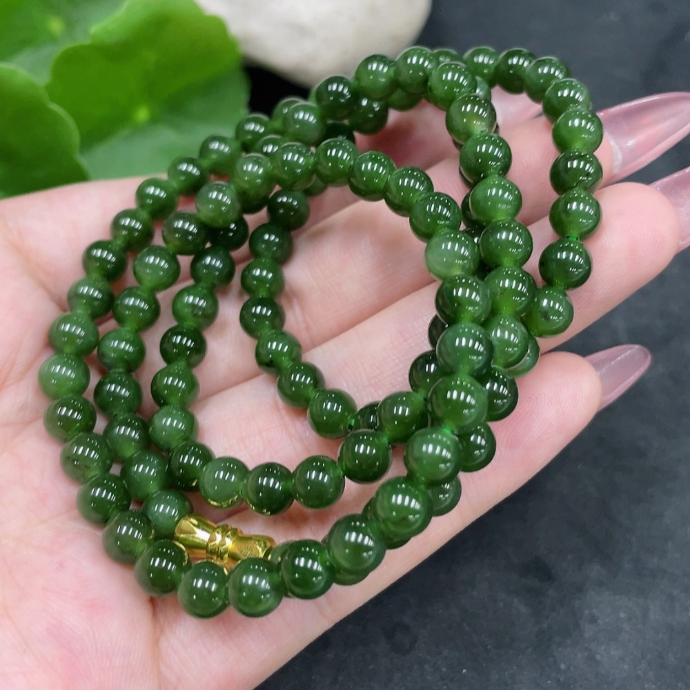 Trezaar - Hetian Jade Bead Necklace, Approx. 5.6mm, Non-Gold, Total Weight Approx. 32.6g