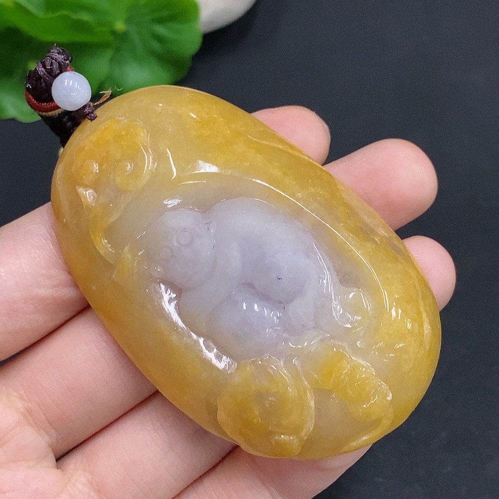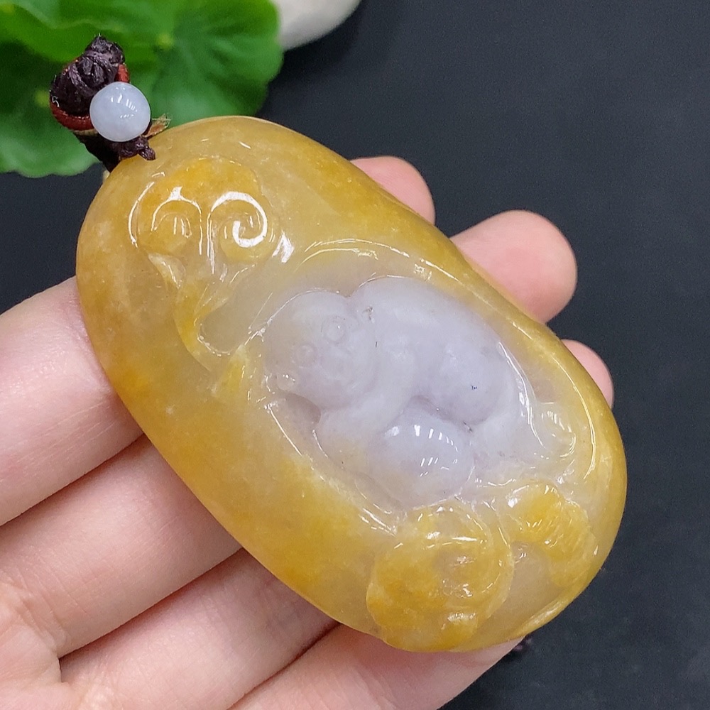 Trezaar - Jadeite Monkey Offering Longevity Pendant