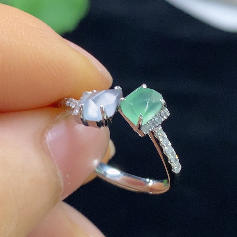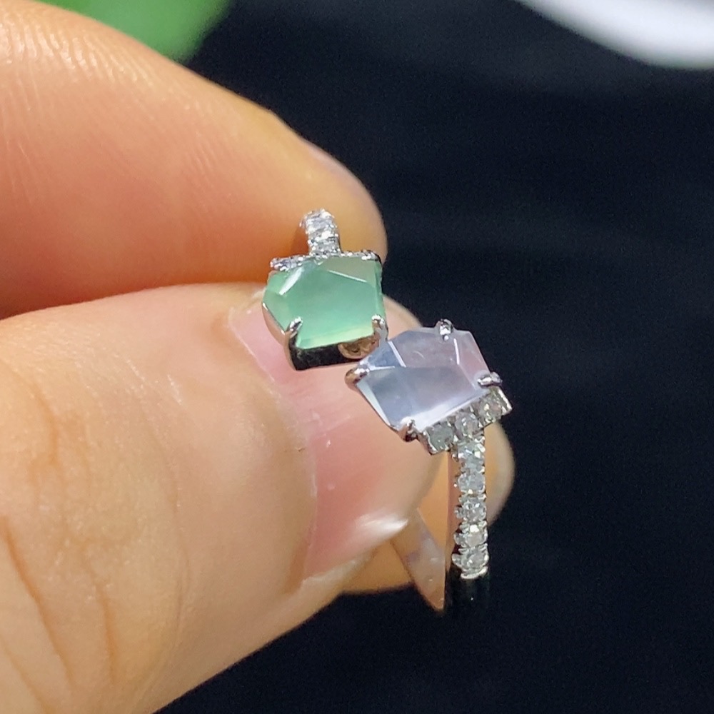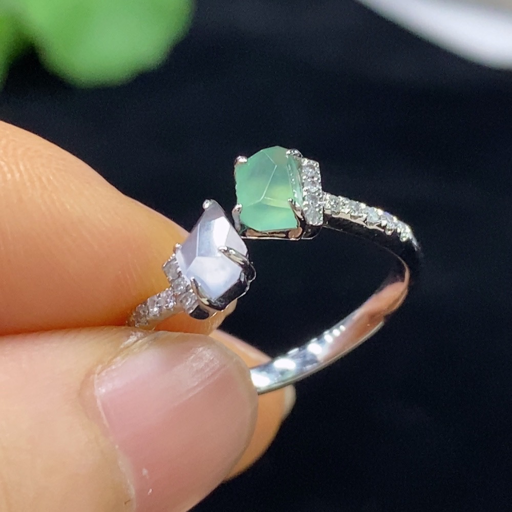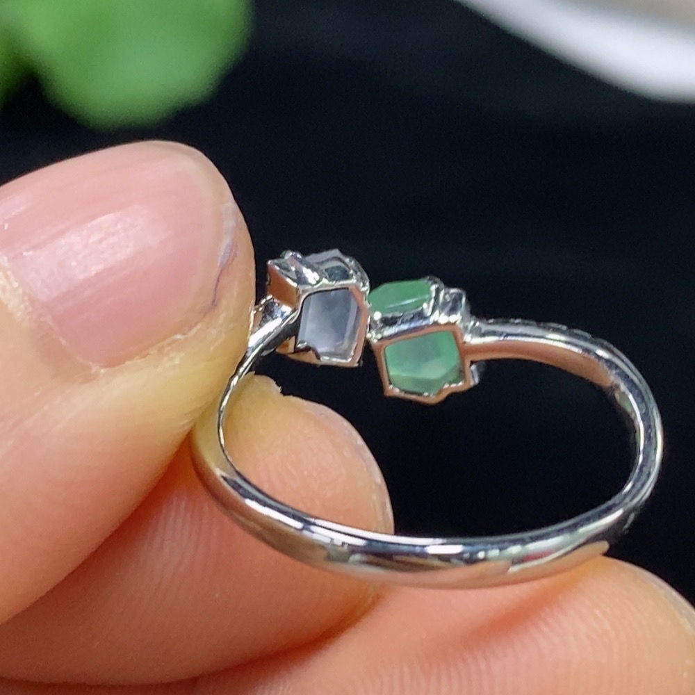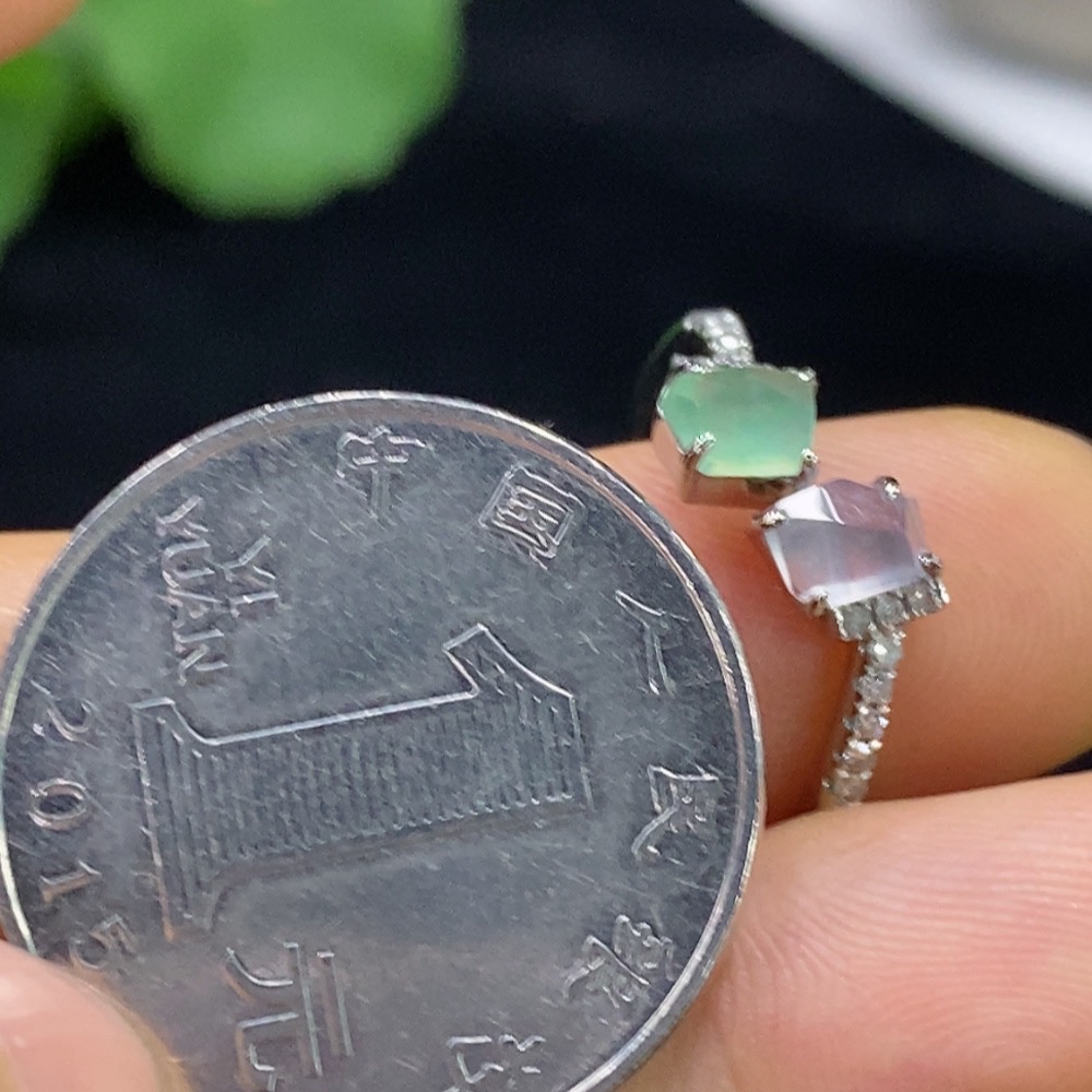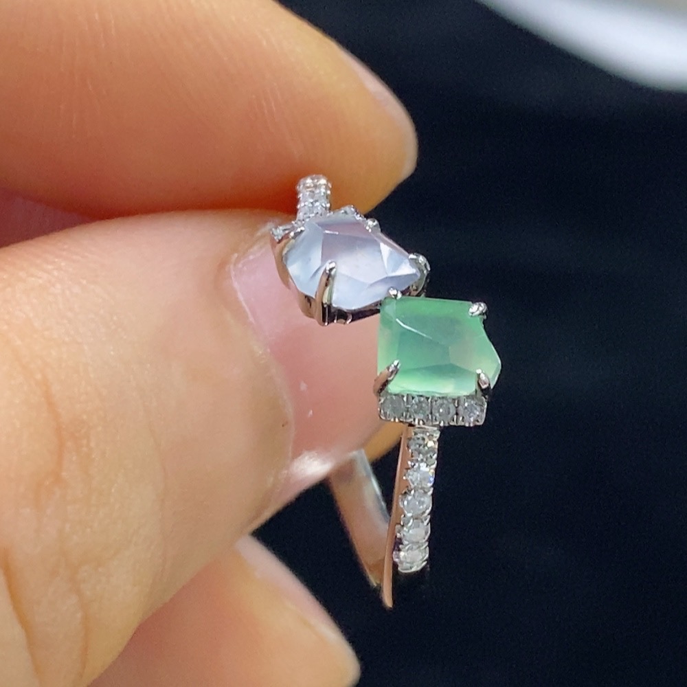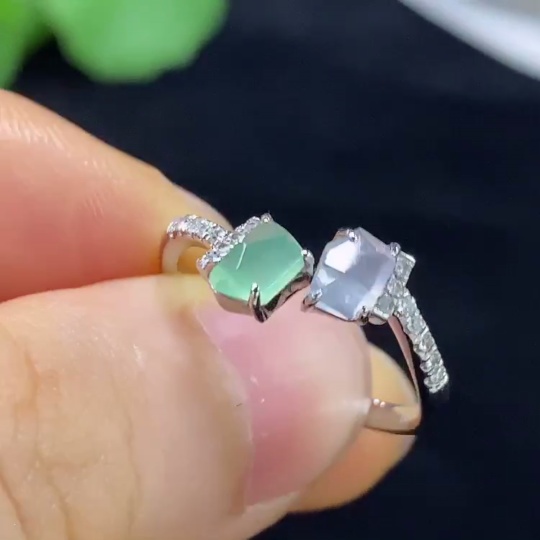 Jadeite Inlaid Ring PT950 with Diamond, Total Weight Approx. 3.17g, Size 15