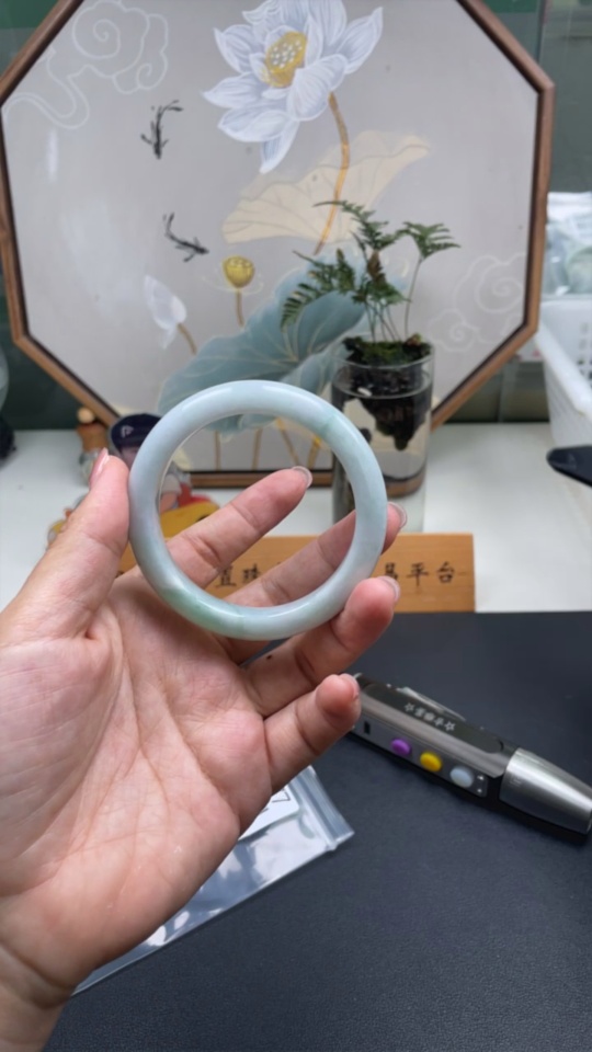 Jadeite Round Bangle (Total weight: approx. 53.4g, Inner diameter: 56)