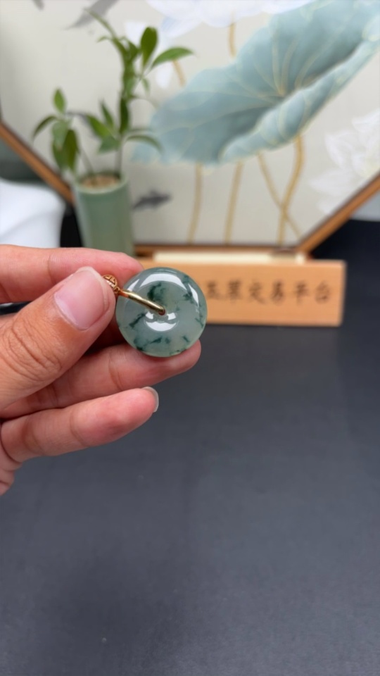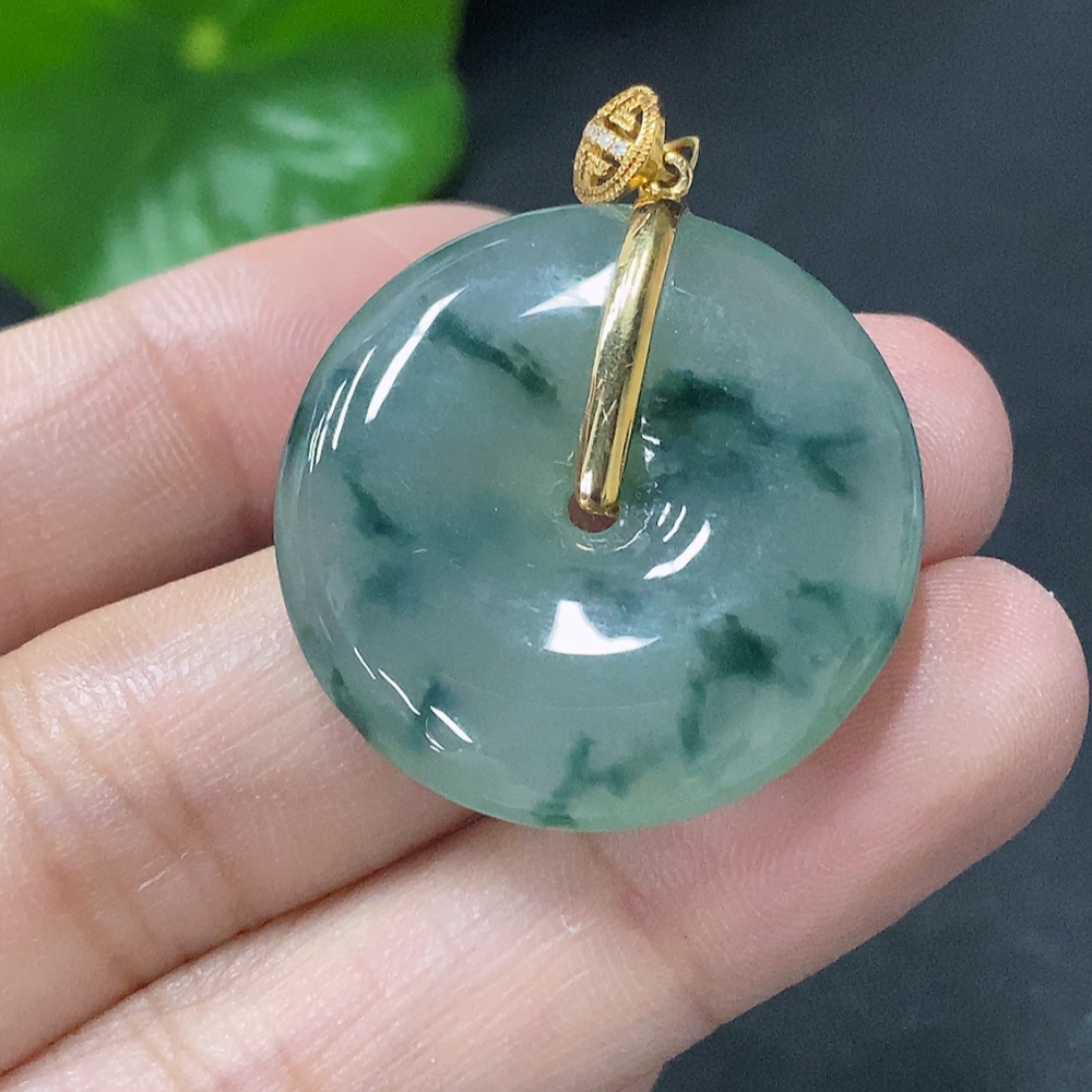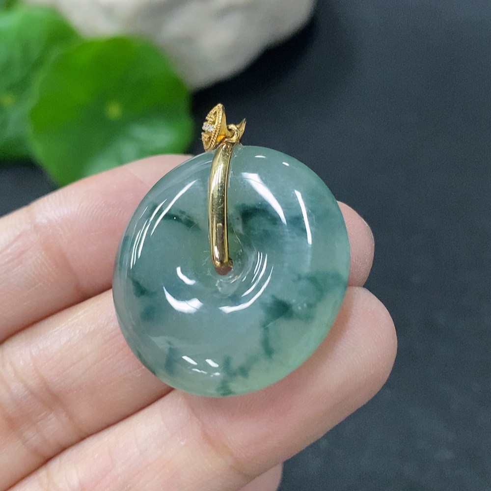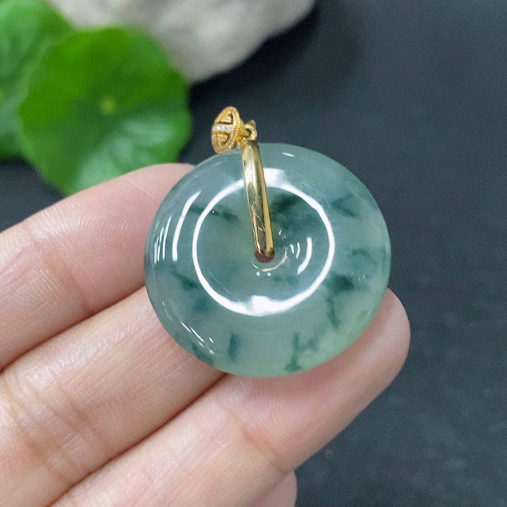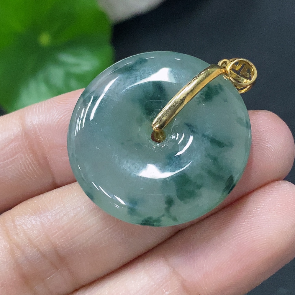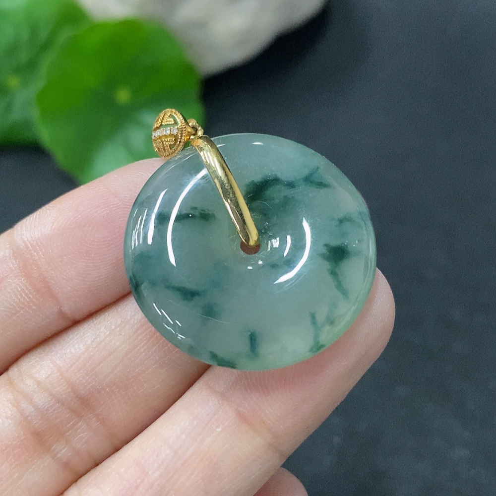 JadeitePendant Peace Knot with 18K Gold and Diamond Accents, Total Weight Approximately 7.43g