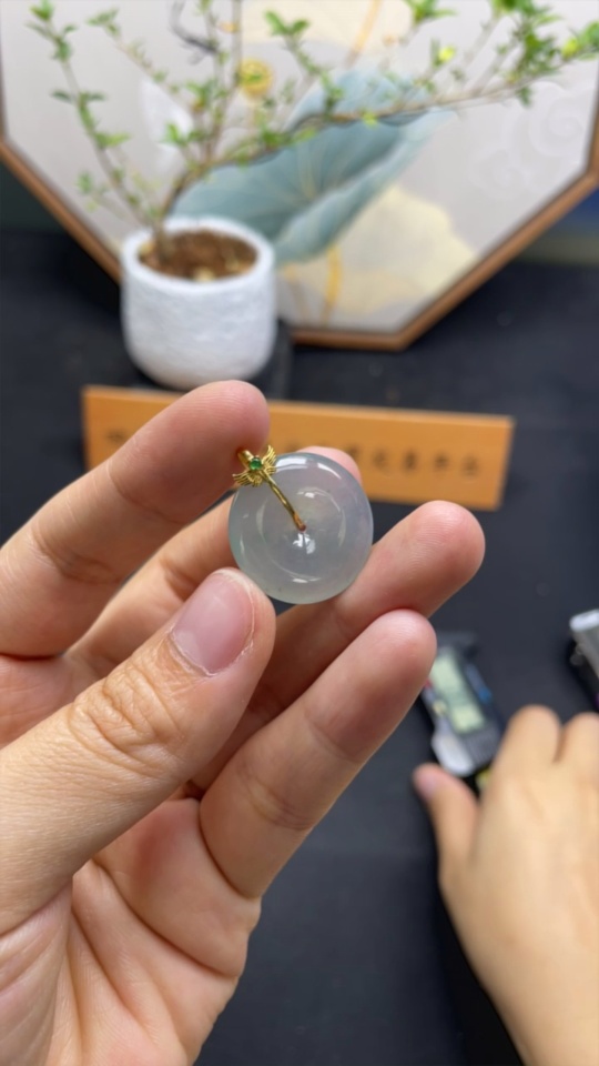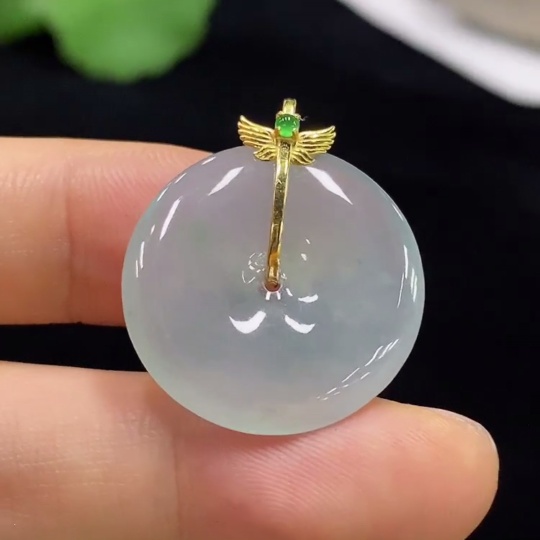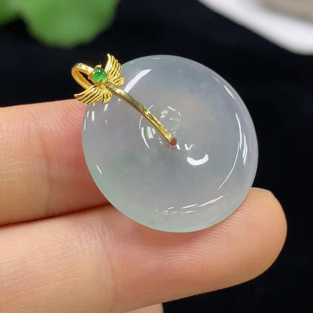 Jadeite Pendant Peace Buckle with 18K Gold Fastener Total Weight Approx. 4.4g