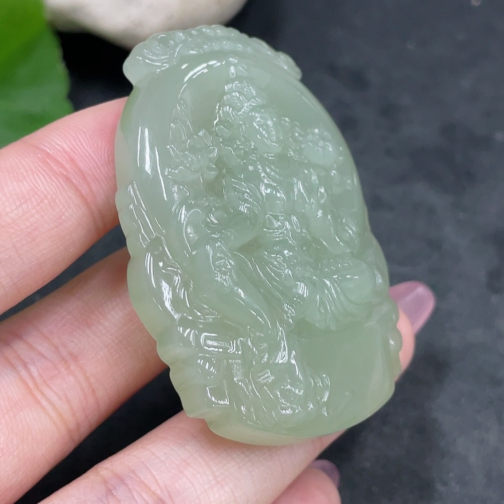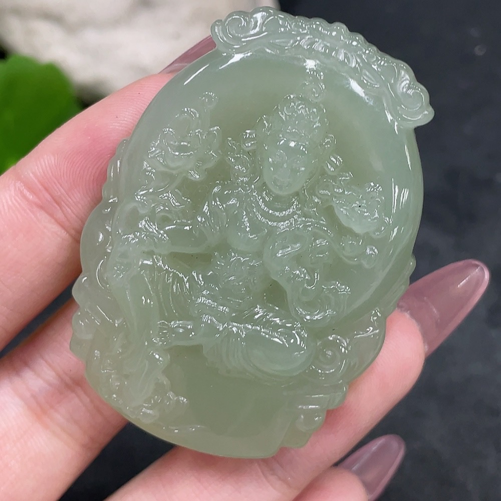 Hetian Jade Pendant Green Tara Total Weight Approx. 42.6g
