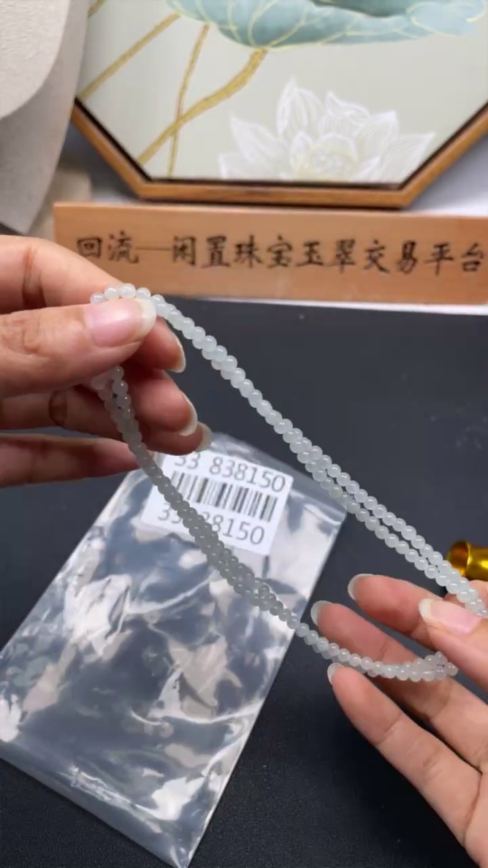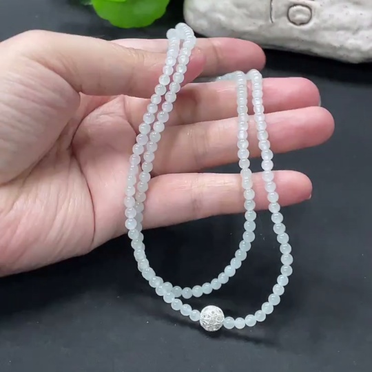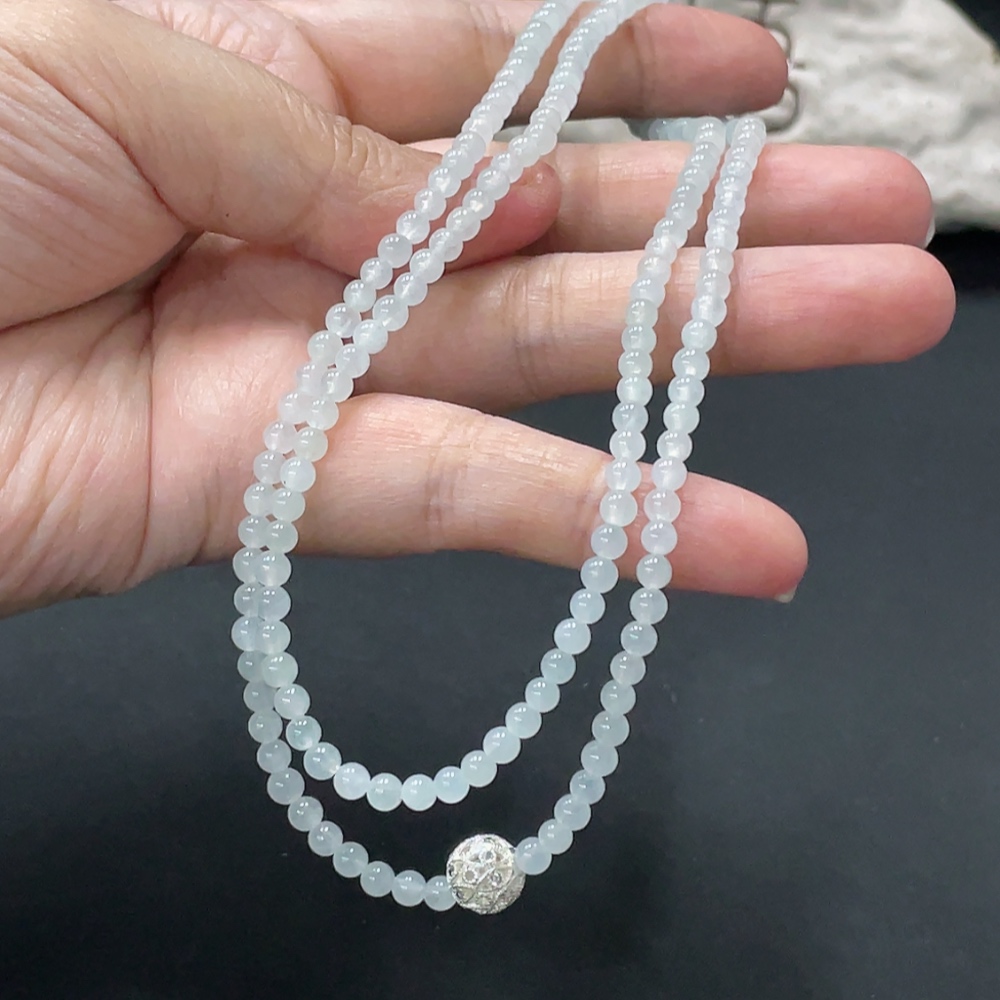 JadeiteBead Necklace, approx. 3.6mm beads, total weight approx. 15.36g, non-gold accessory beads
