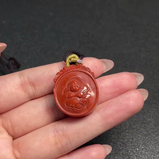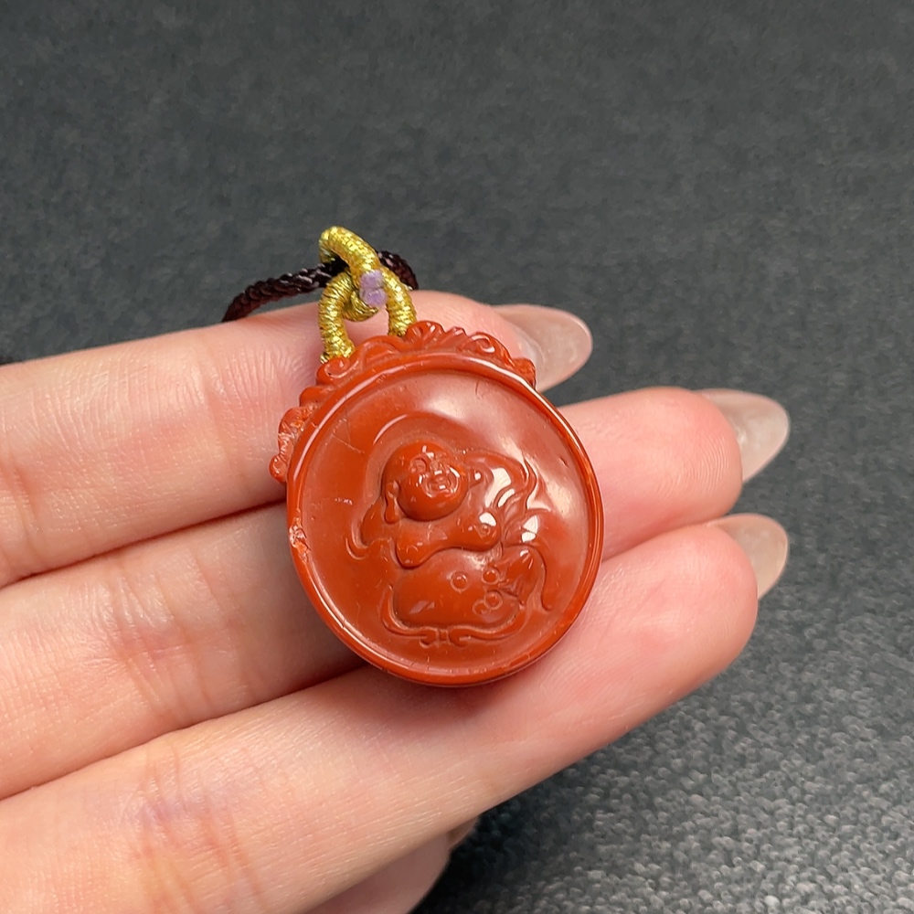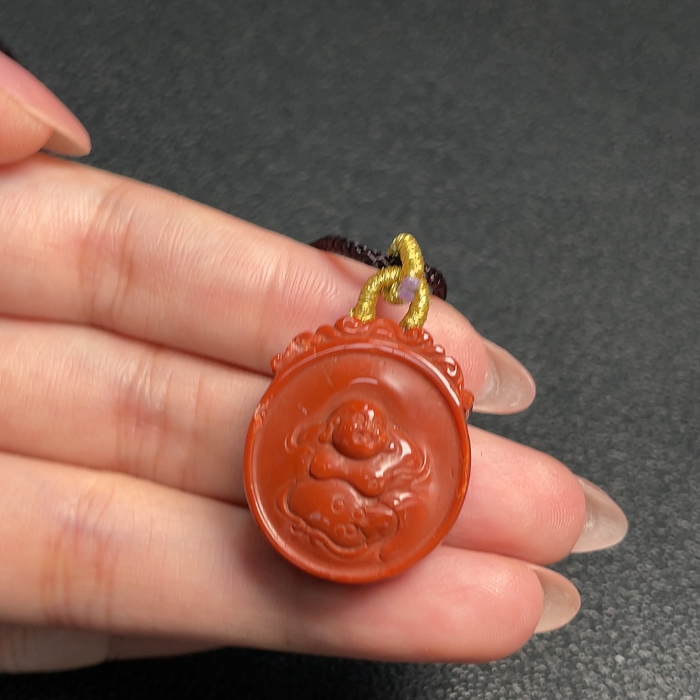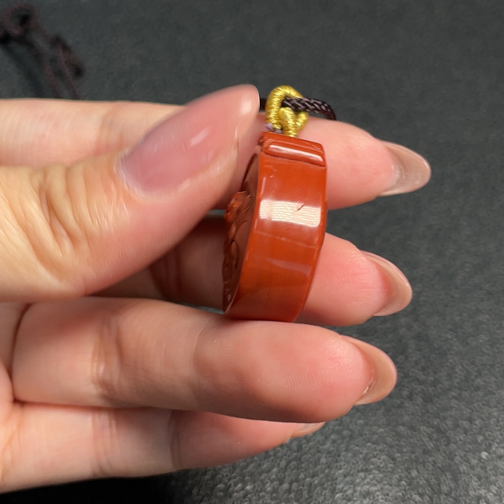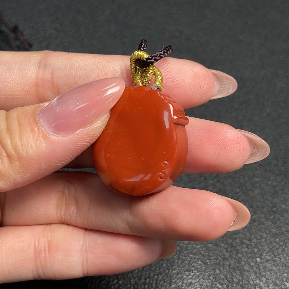 Red Agate Pendant with Visible Organic Matter, Total Weight Approximately 13.32g Including String