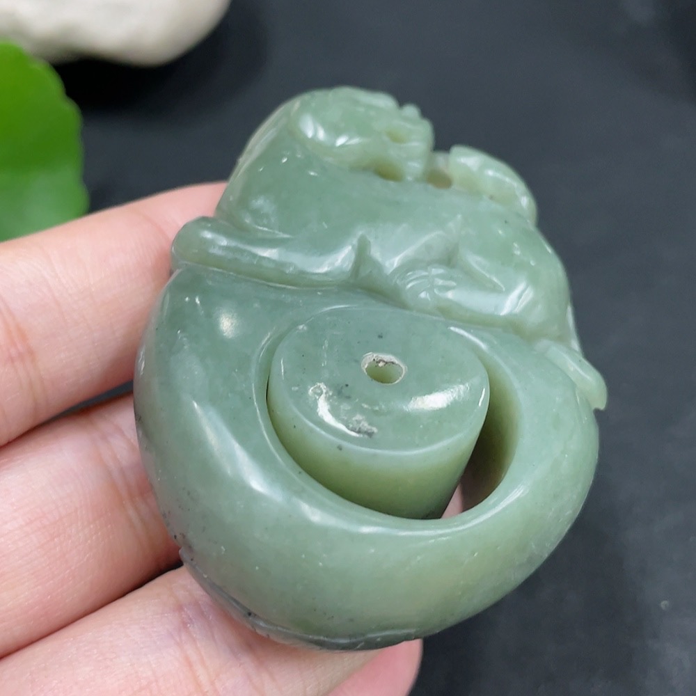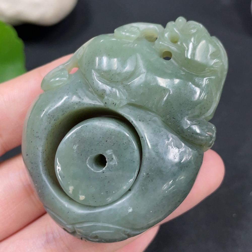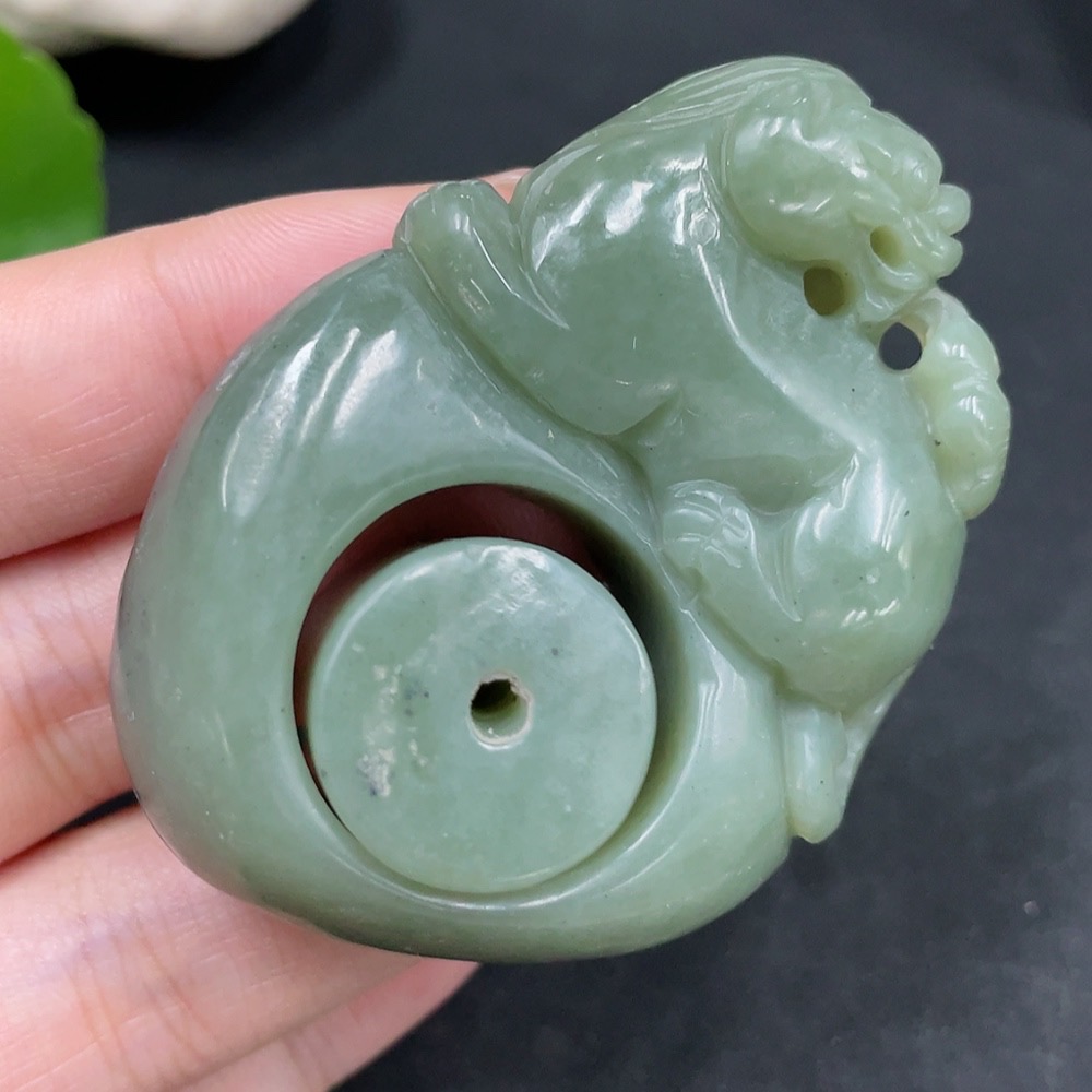 Hetian Jade Handheld Piece - Auspicious Beast Ring