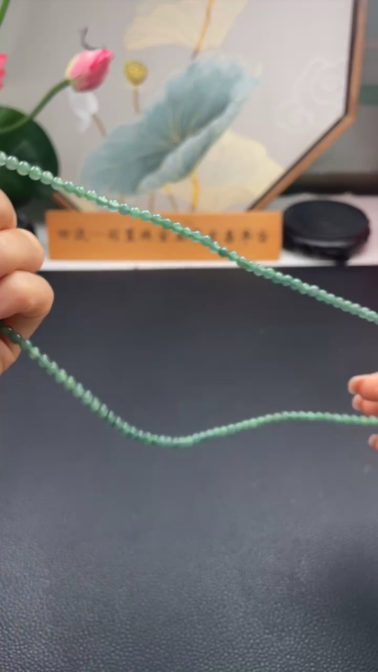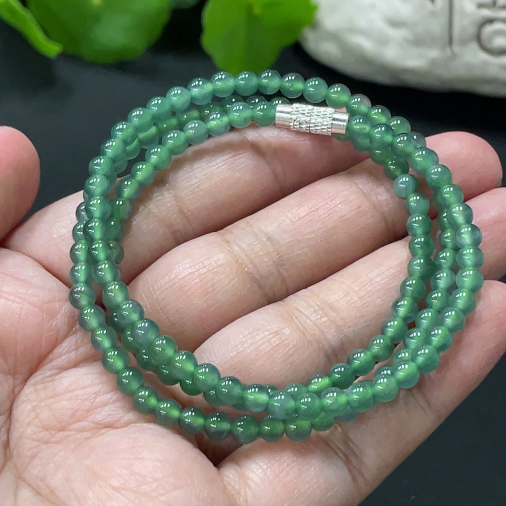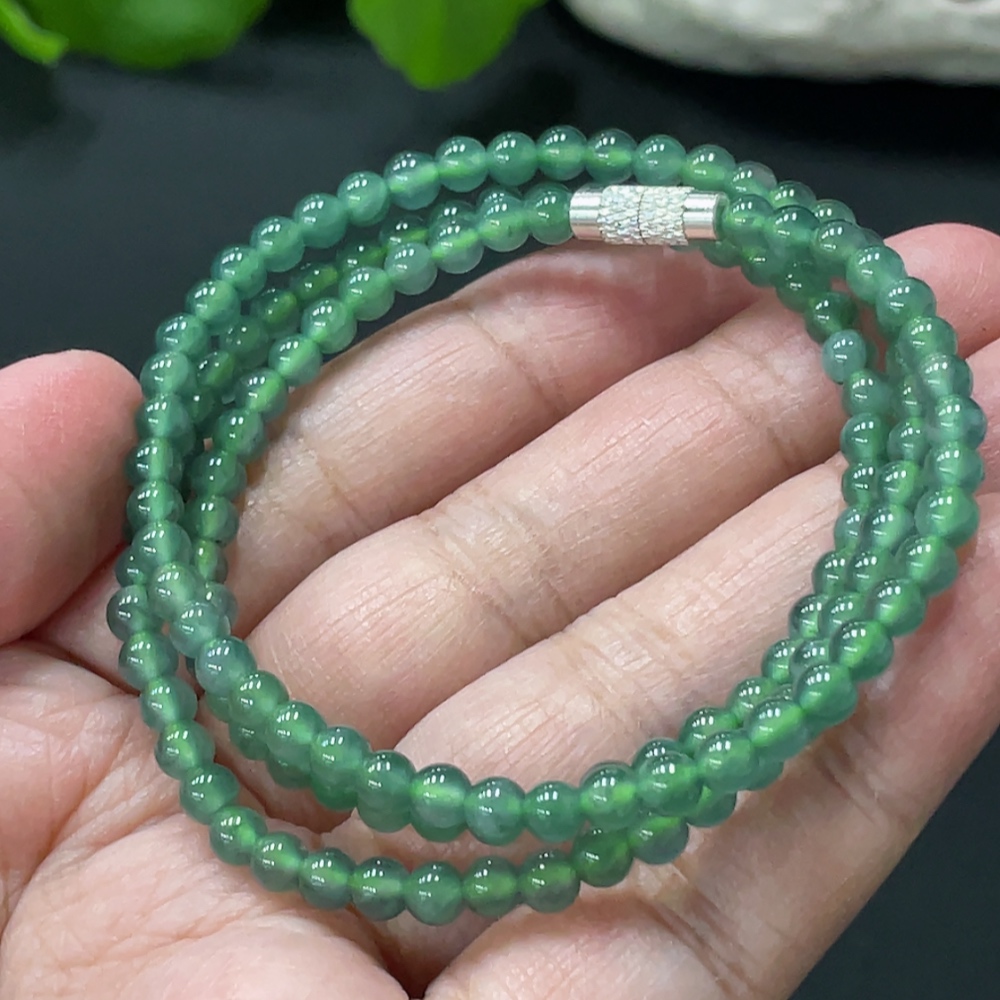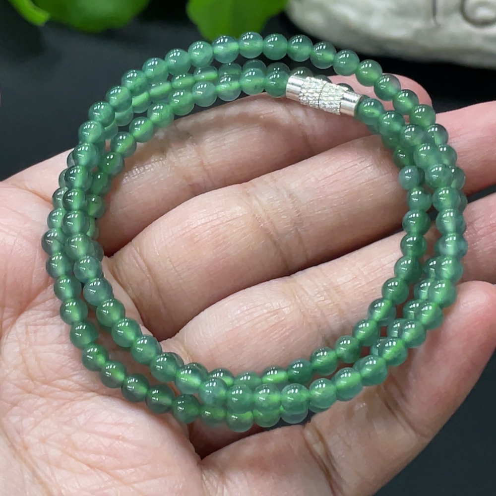 Jadeite Bead Necklace Approx. 4mm Total Weight 15.5g Non-Gold Clasp