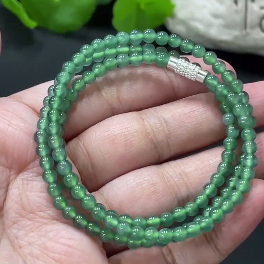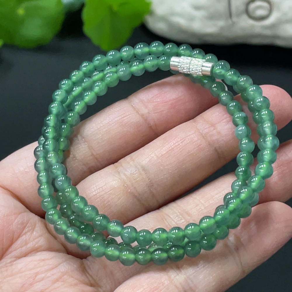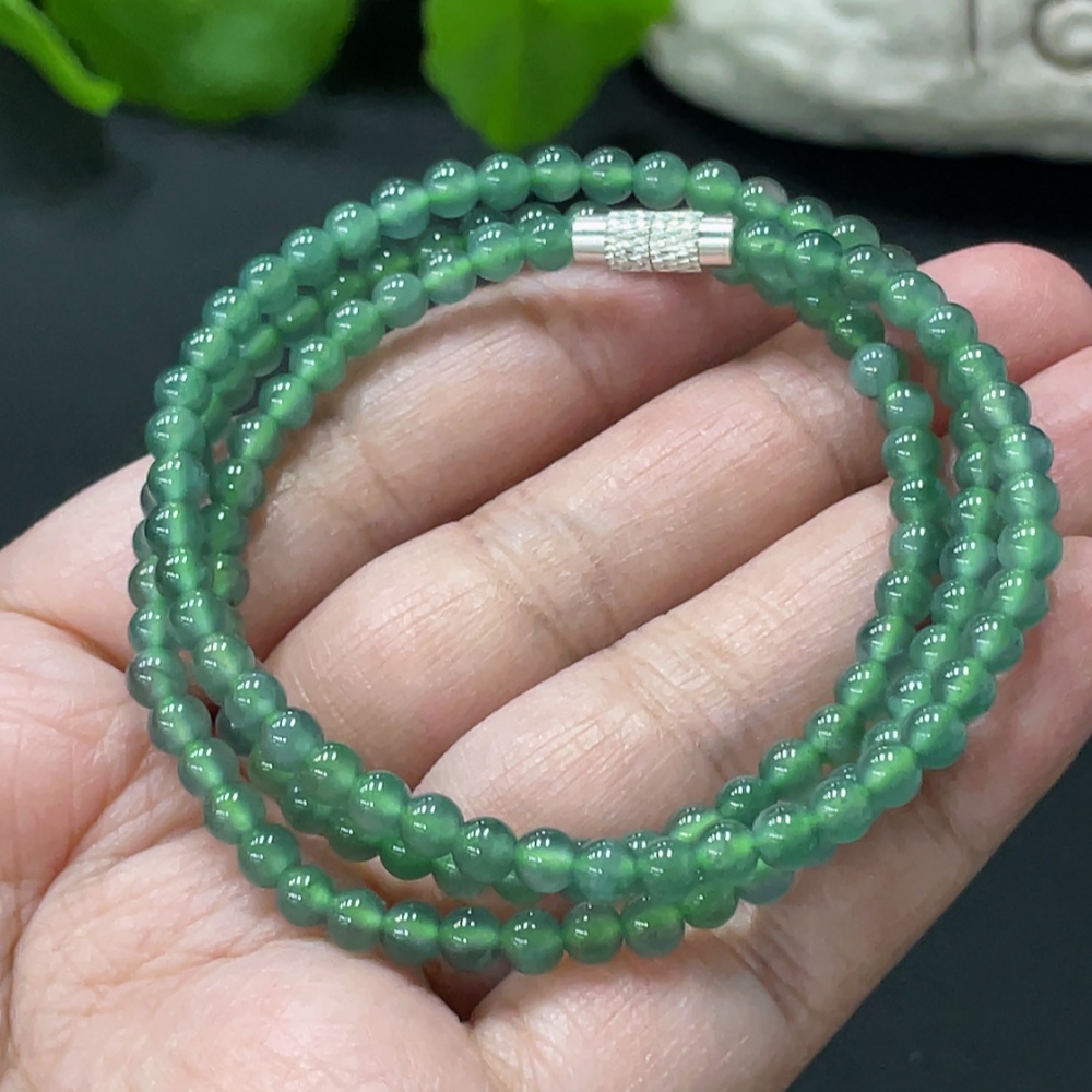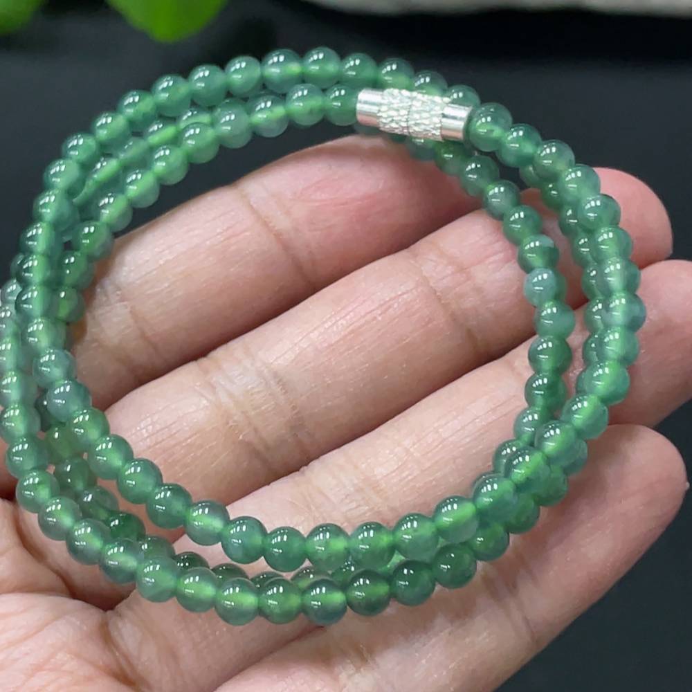 Jadeite Bead Necklace Approx. 4mm Total Weight 15.5g Non-Gold Clasp