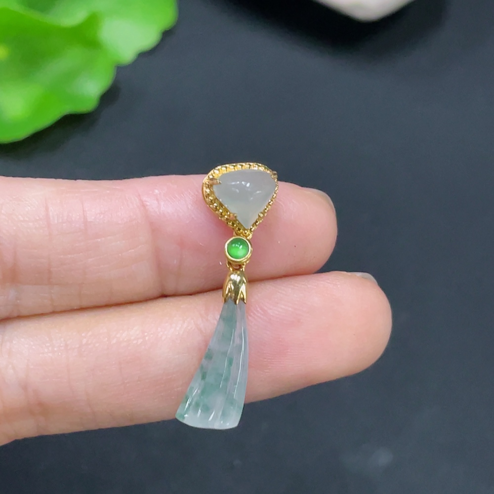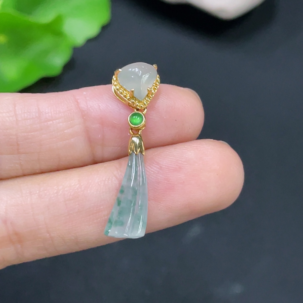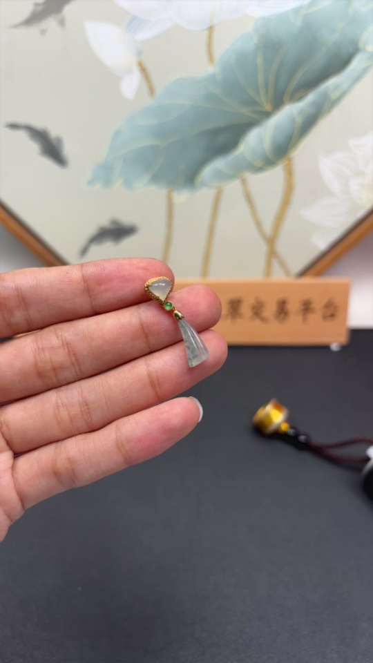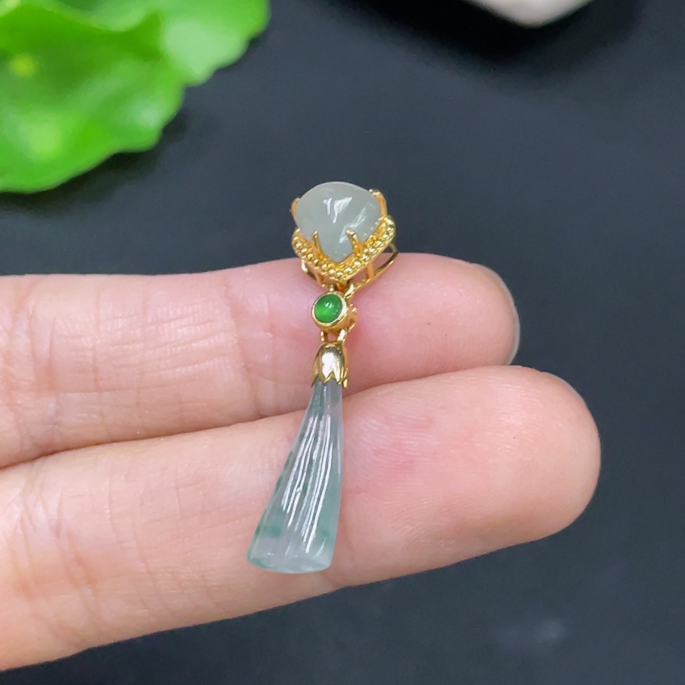 Jadeite Inlaid with 18k Gold, Total Weight Approximately 1.6g