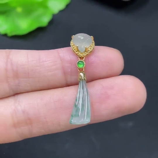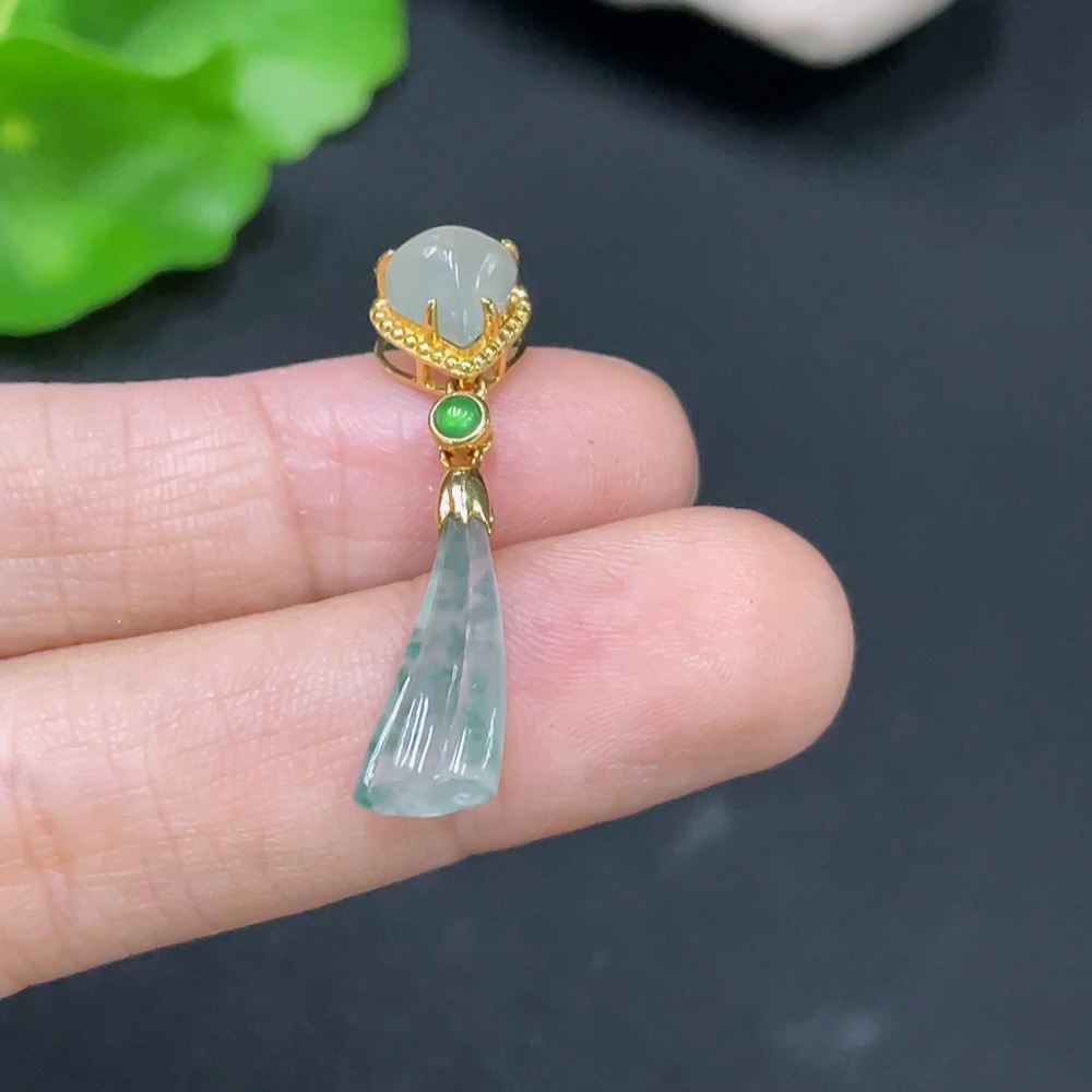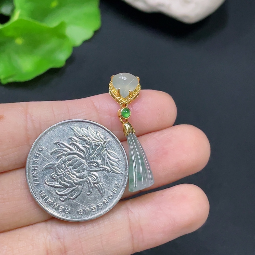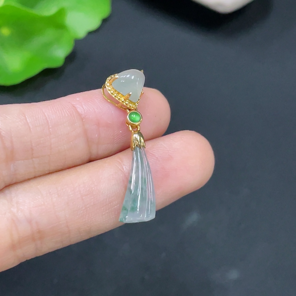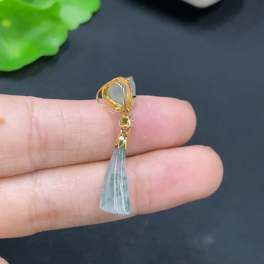 Jadeite Inlaid with 18k Gold, Total Weight Approximately 1.6g