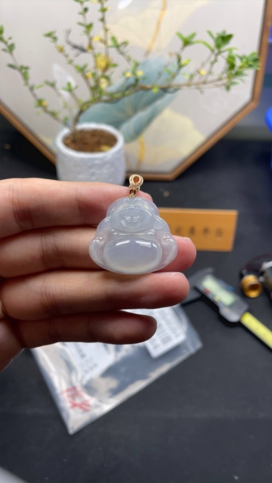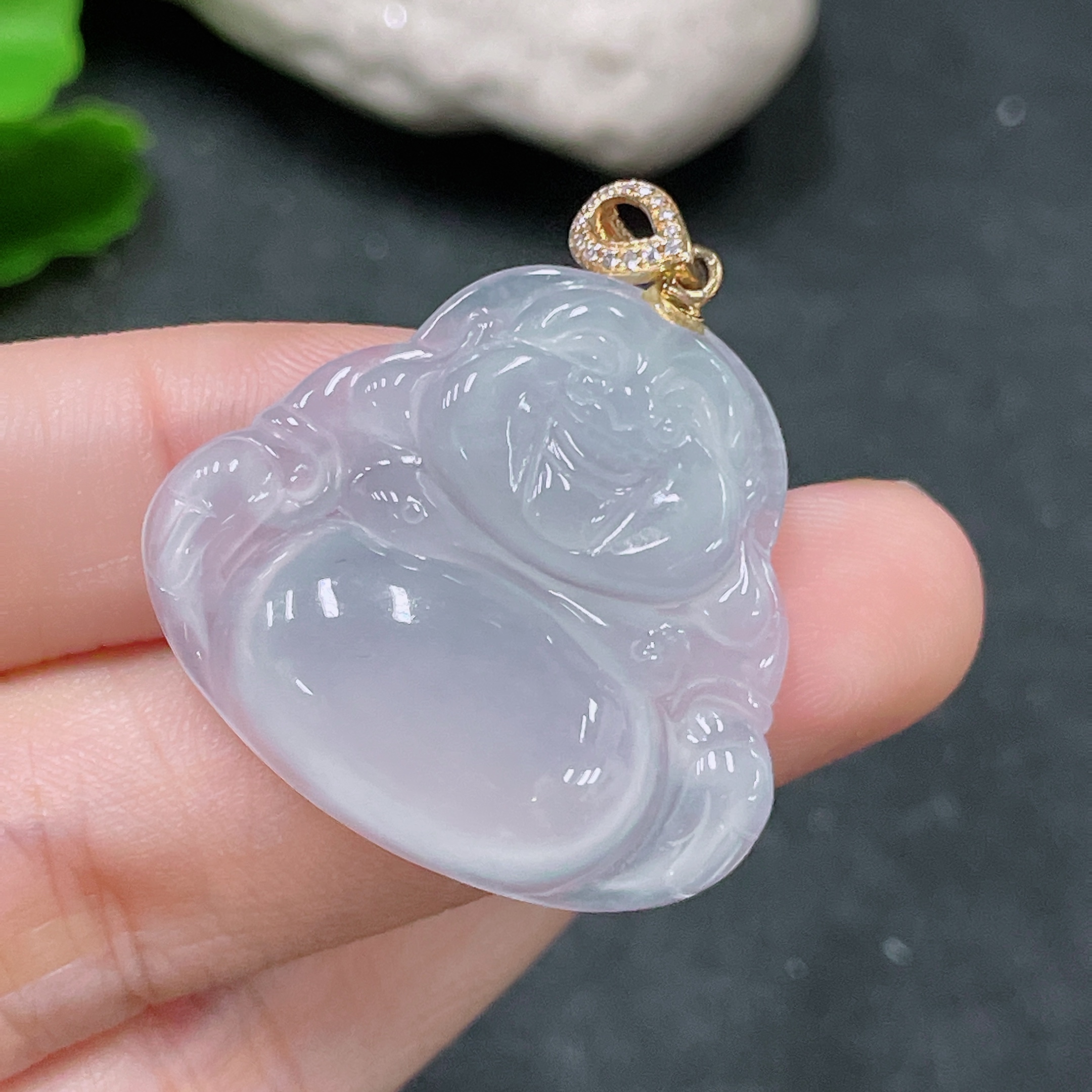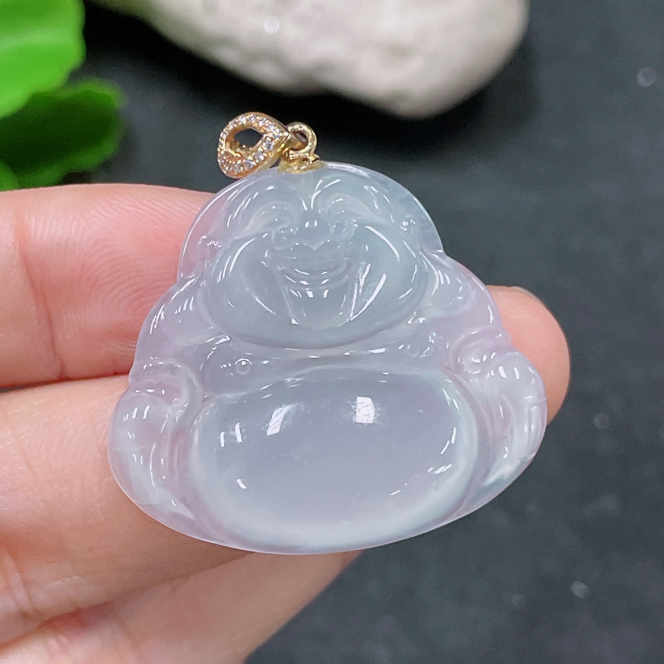 Jadeite Pendant Buddha Bail 18K Gold with Diamond Accent Total Weight Approx. 8g