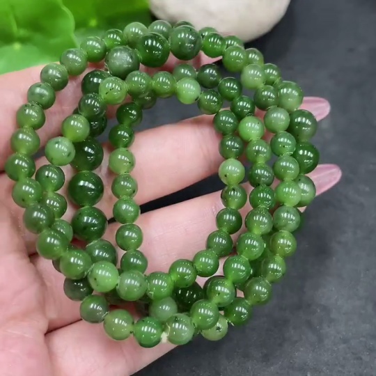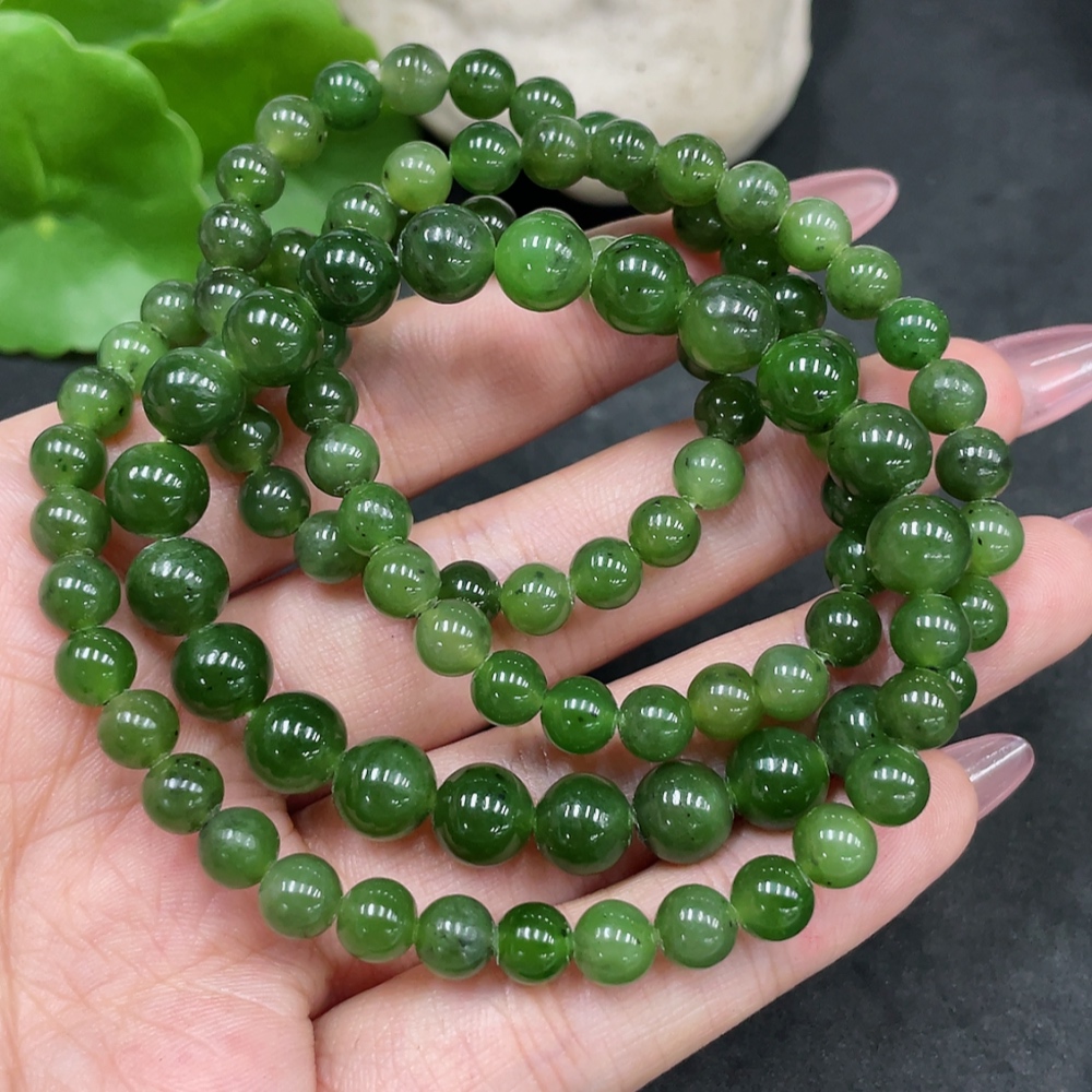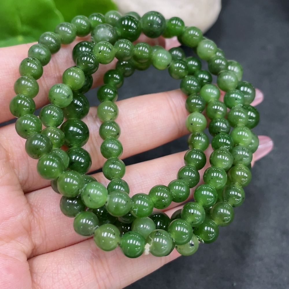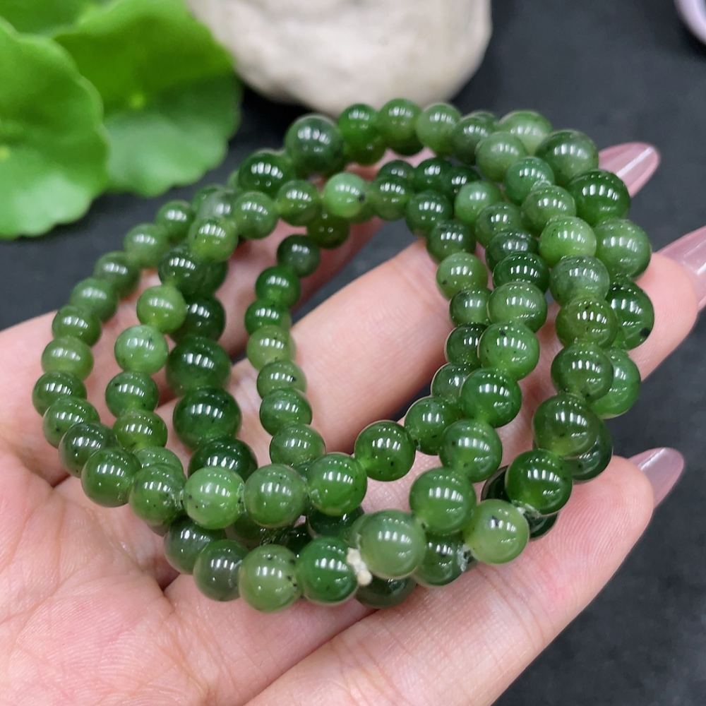 Hetian Jade Bead Necklace, approx. 7.6mm max. bead size, total weight approx. 43.4g