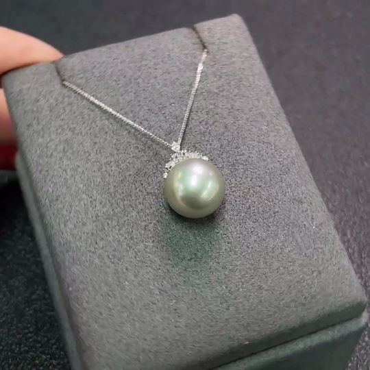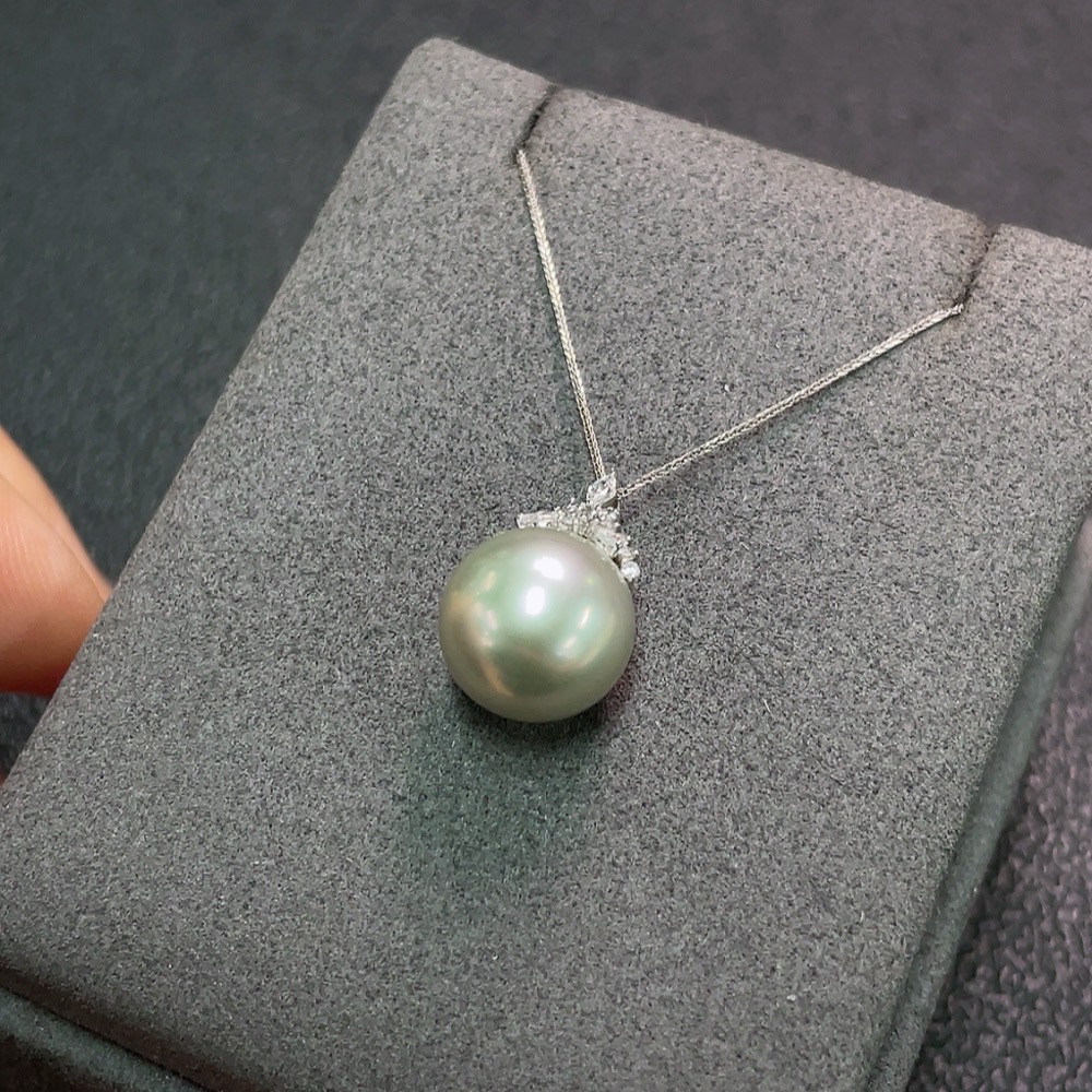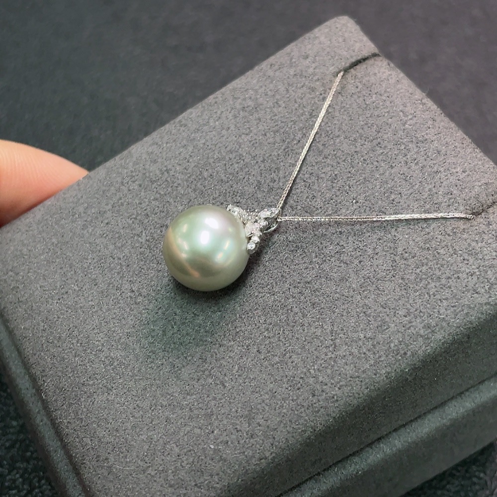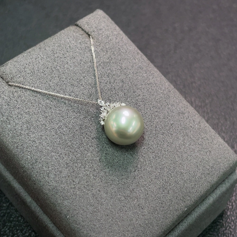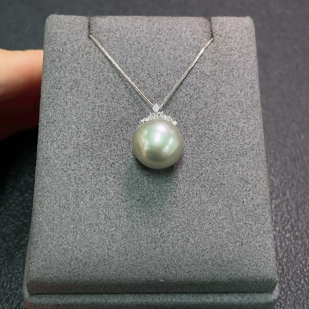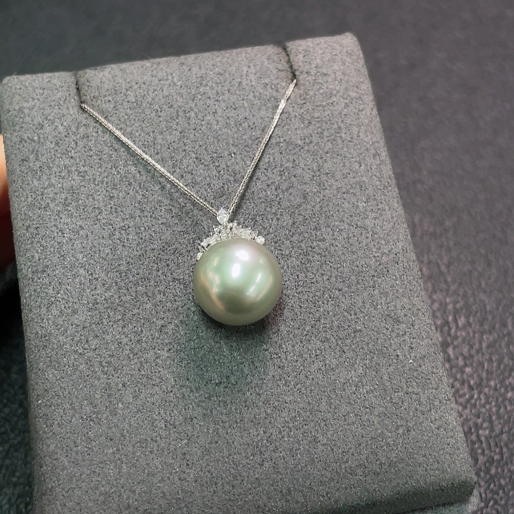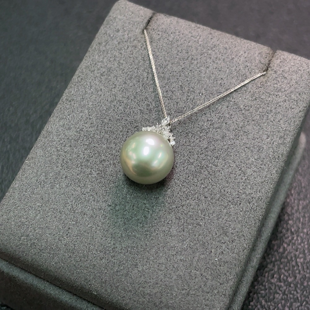18K Gold Saltwater Pearl Necklace with Diamond Accents, Total Weight Approx. 3.32g, Pearl Size About 11.6mm