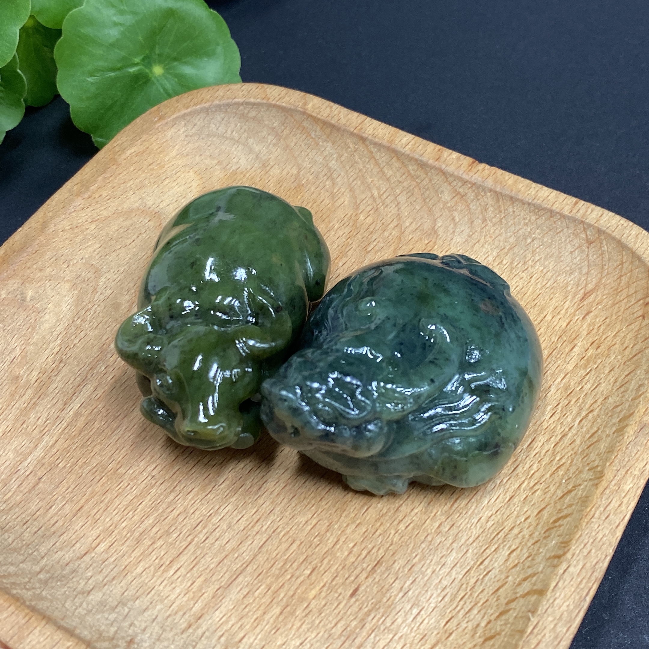 Hetian Jade Handheld Piece - Ox and Dragon Turtle - Total Weight Approx. 167.4g