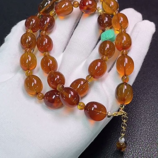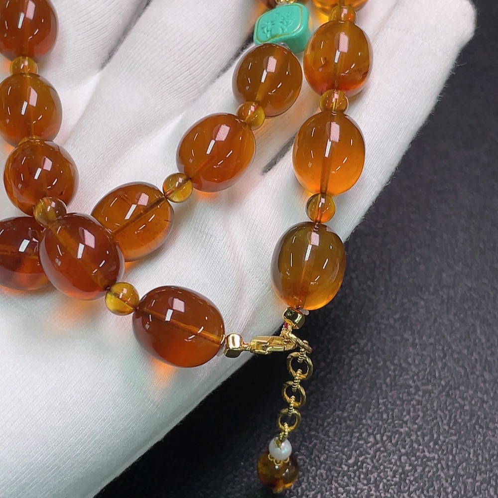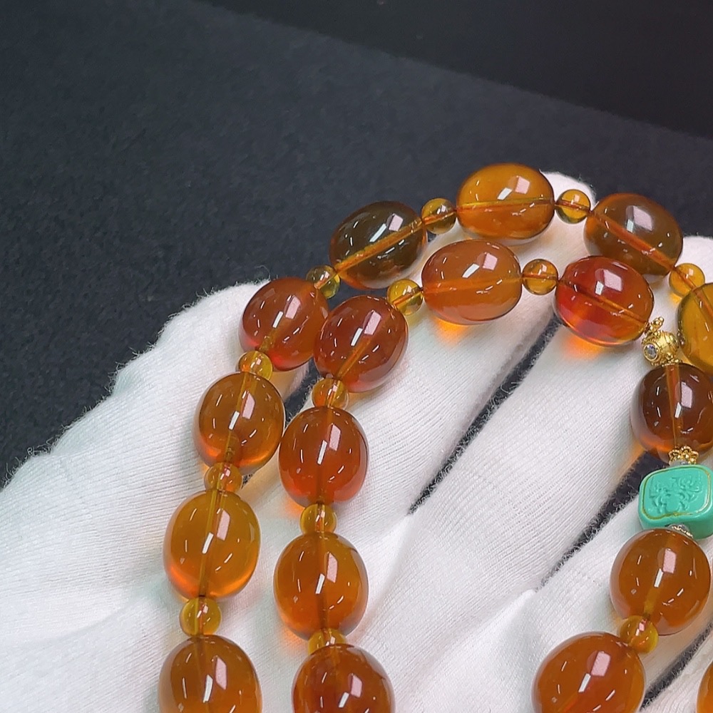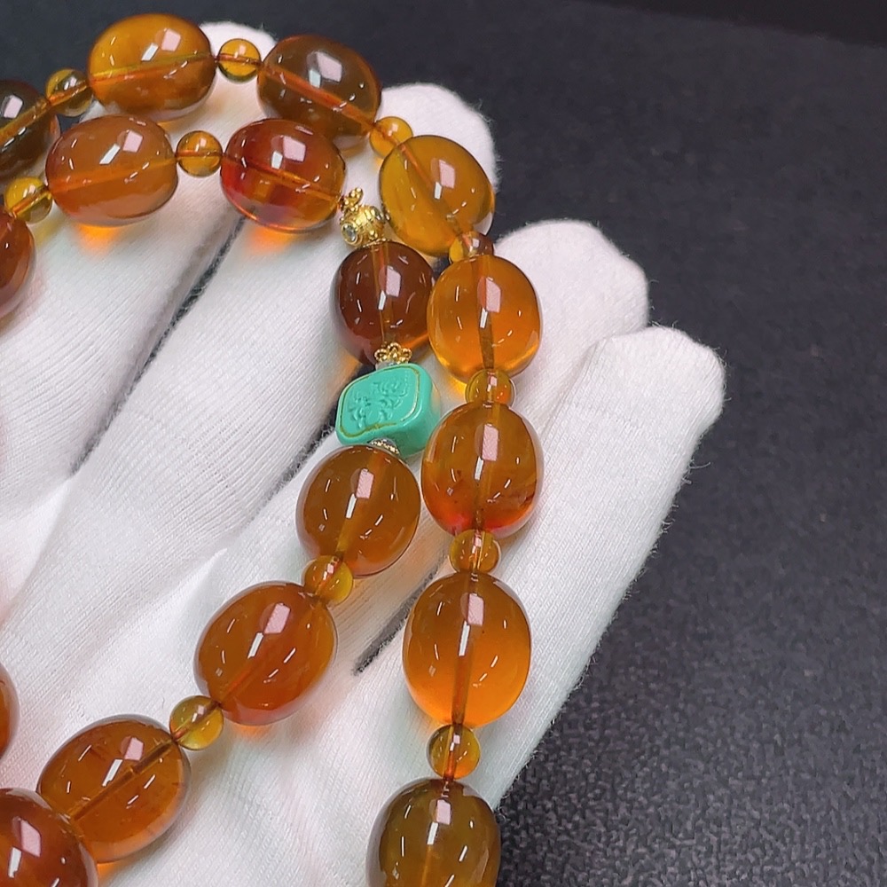 Amber Beeswax Bead Strand Non-Gold Stones May Be Non-Natural Total Weight Approx. 34.44g Size 4.6-11.8mm