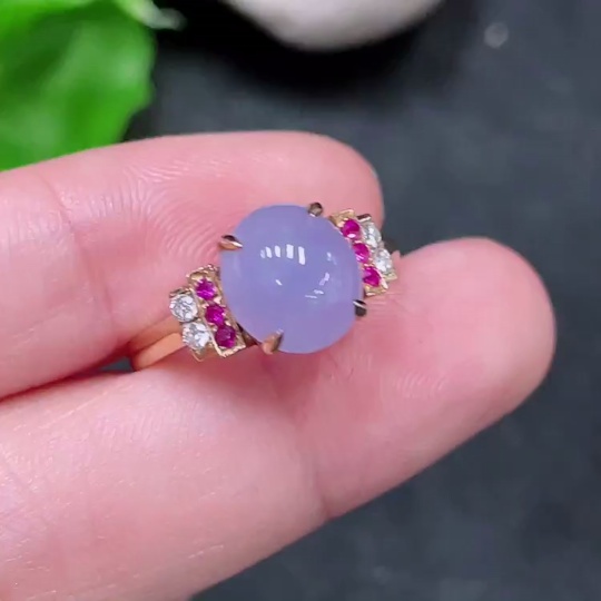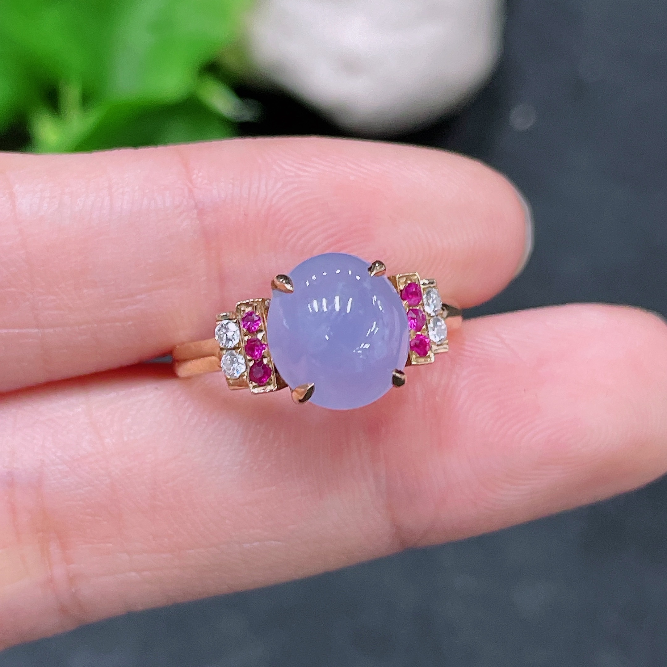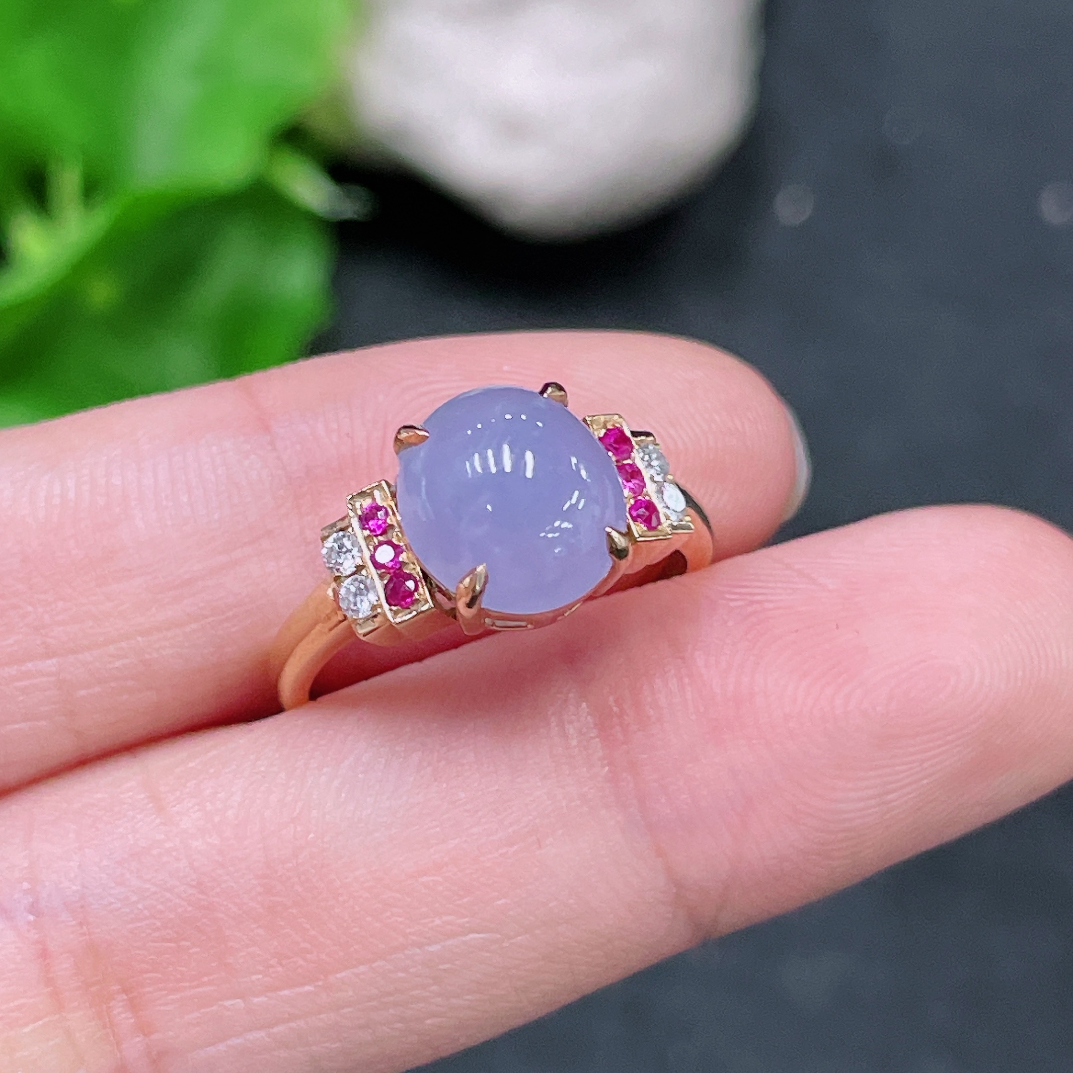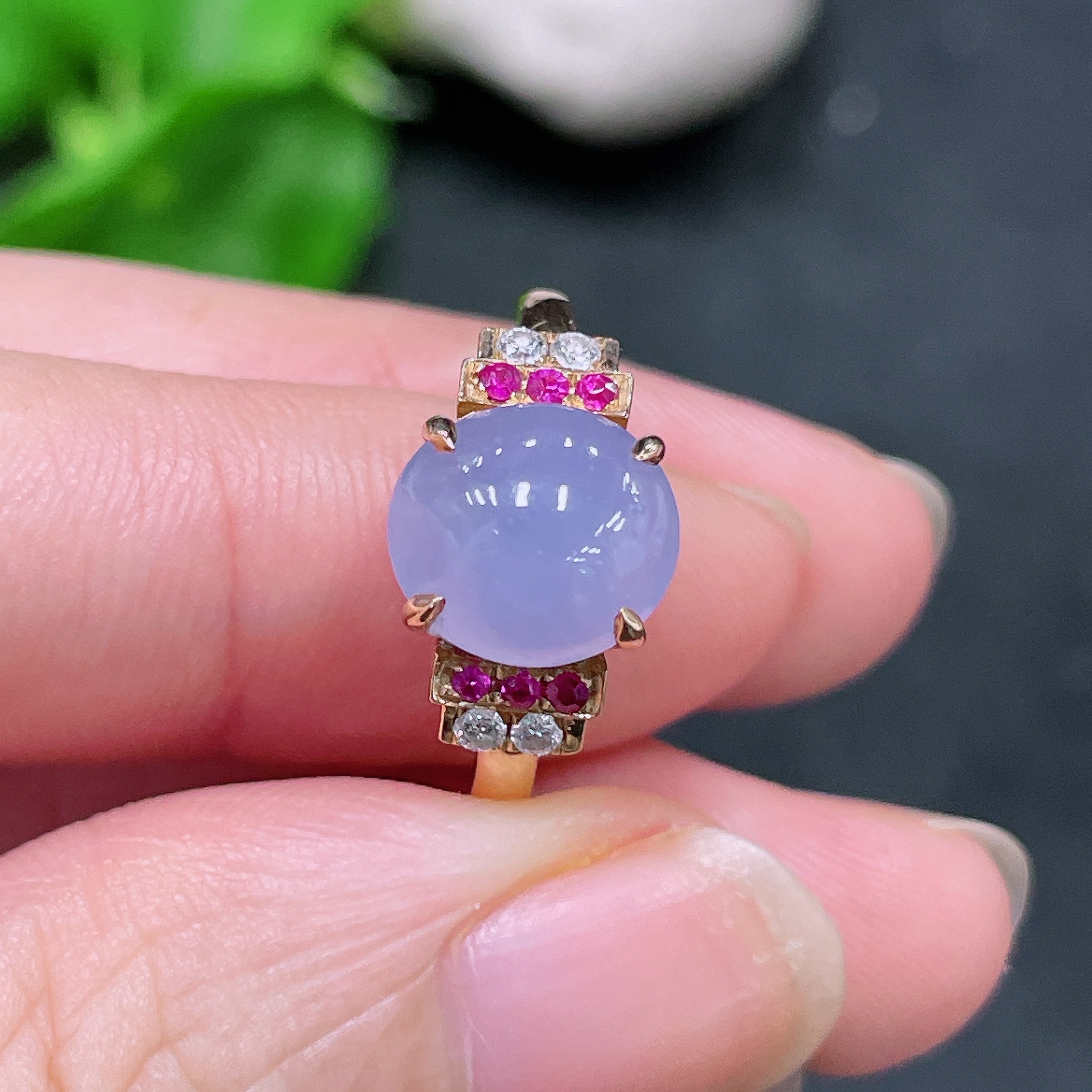 Jadeite Inlaid Ring 18k with Diamond (Colorless)
