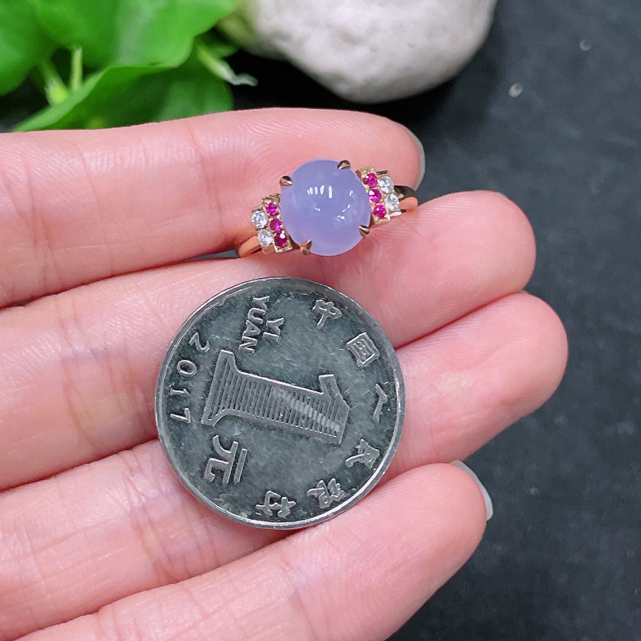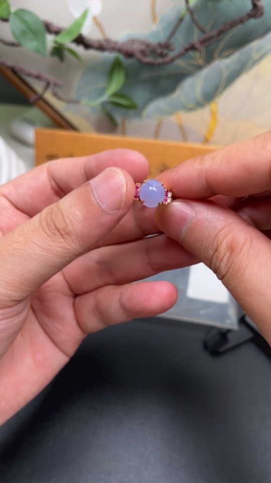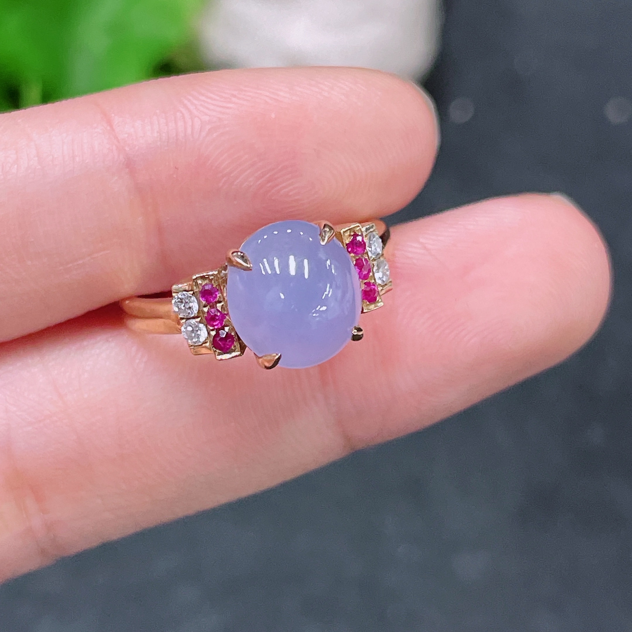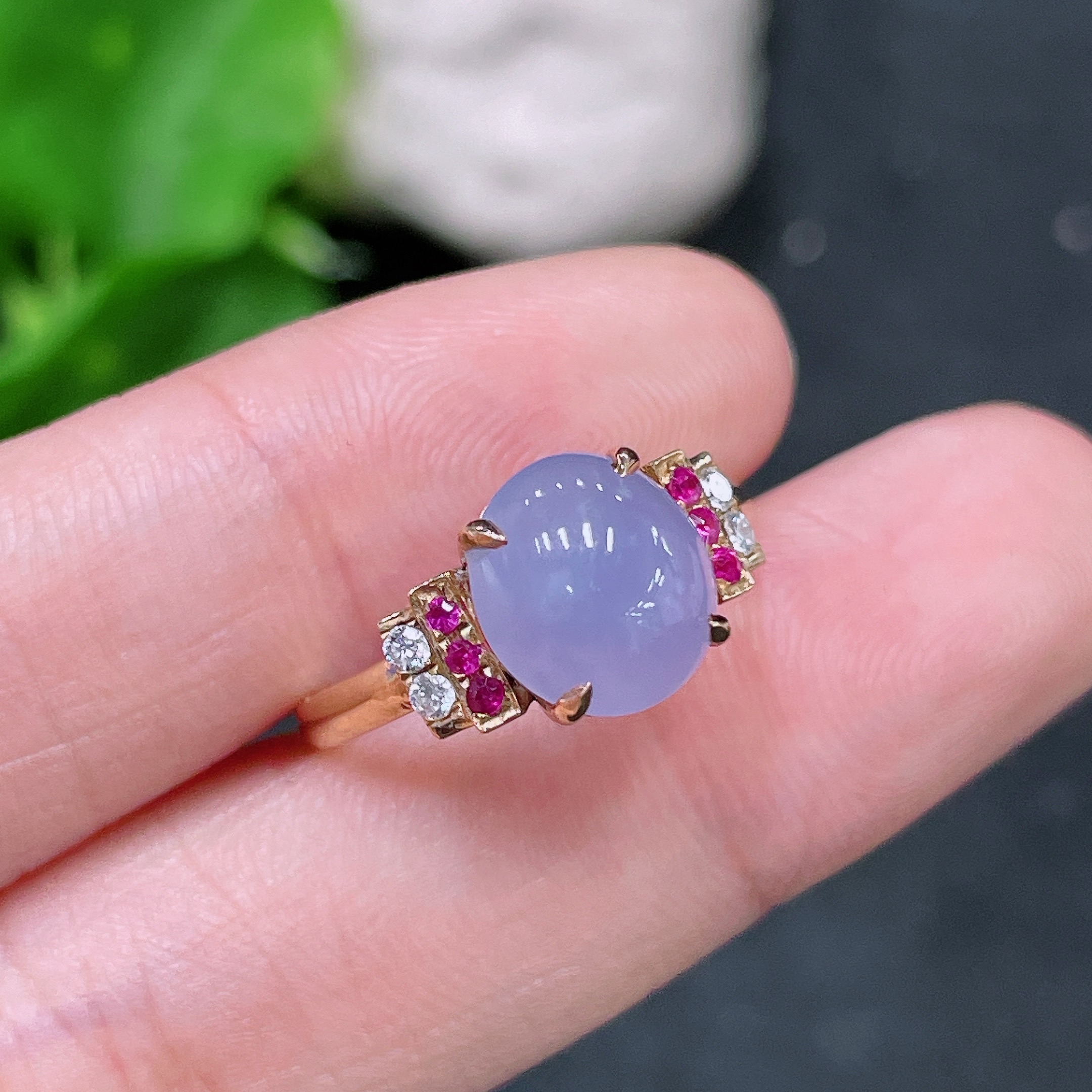 Jadeite Inlaid Ring 18k with Diamond (Colorless)