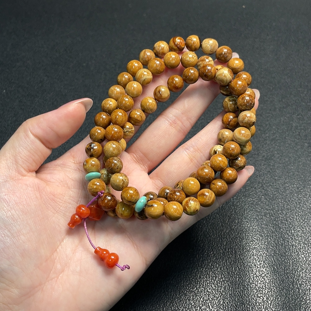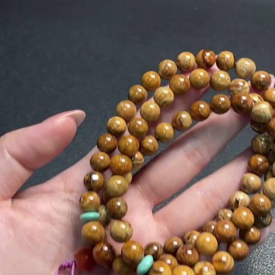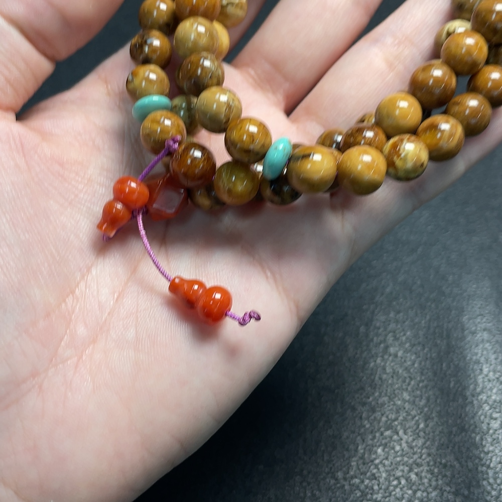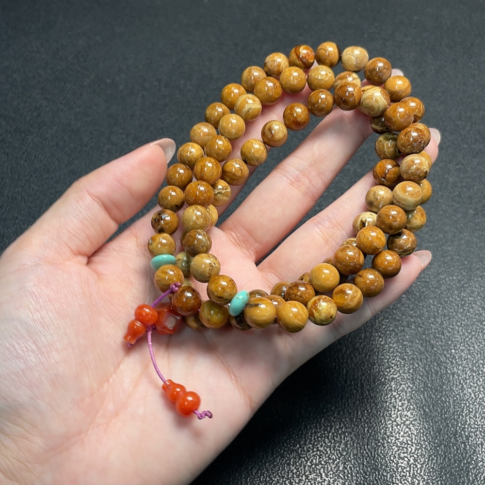 Amber and Beeswax Bead Necklace with Southern Red Agate, Total Weight Approx. 31.73g, Bead Size About 8.6mm