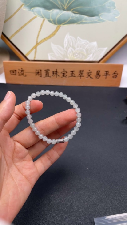 Jadeitebead bracelet, non-gold inlaid, total weight approx. 8.2g, size approx. 5mm