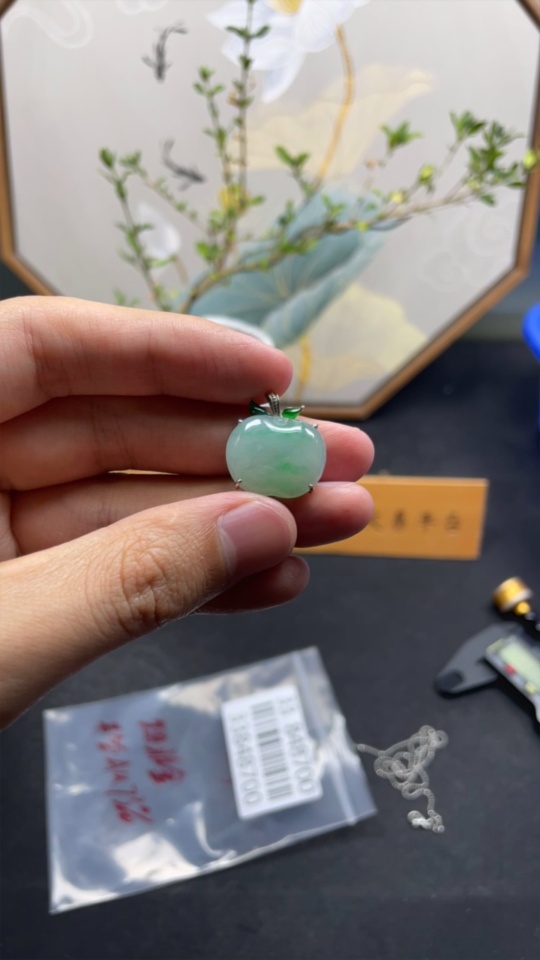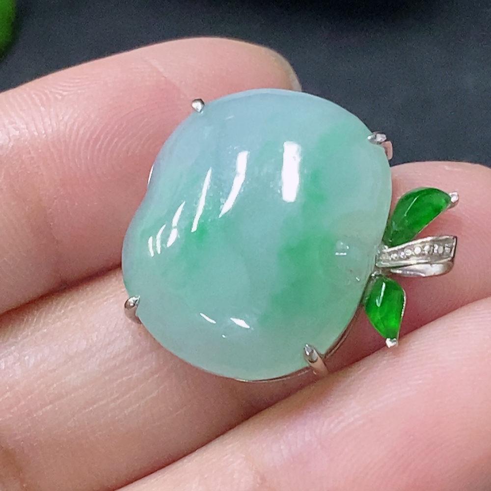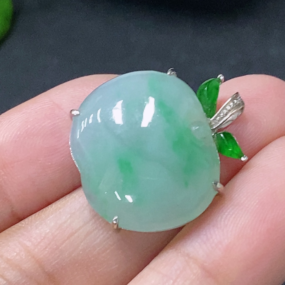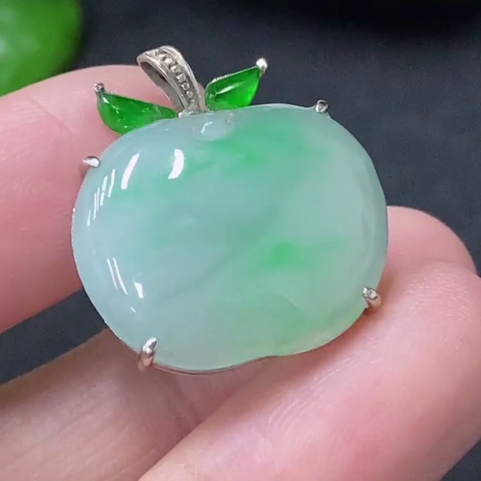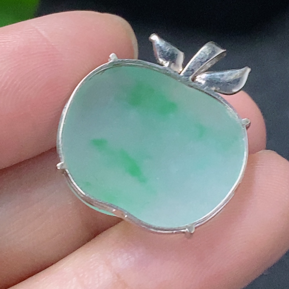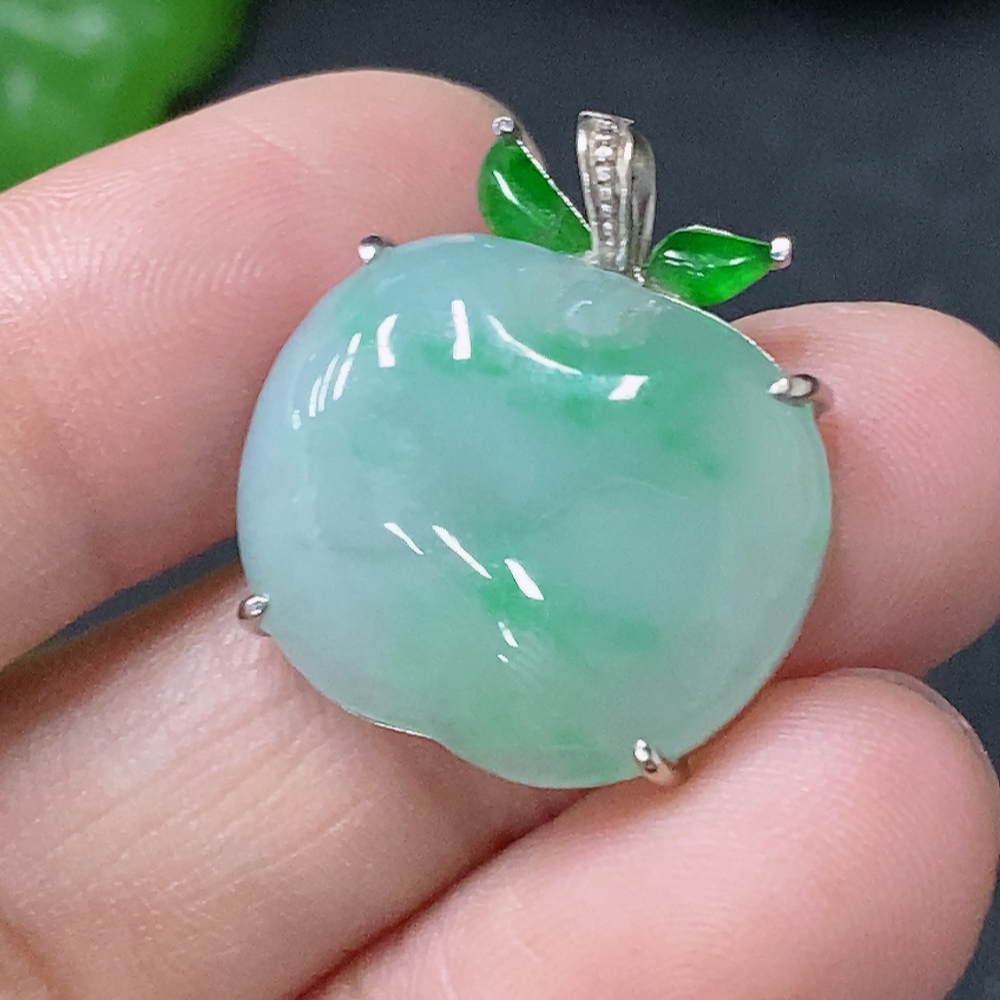 Jadeite Inlaid Apple Pendant Main Body Au73% Chain Non-Gold Total Weight Approx. Excluding Chain 3.5g
