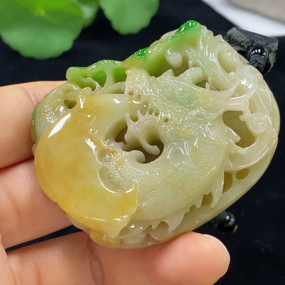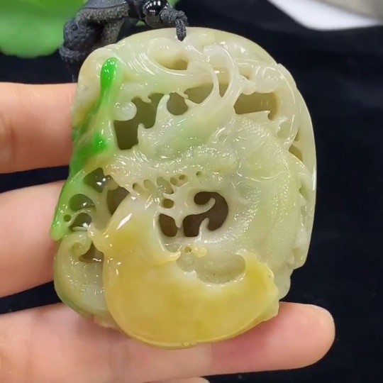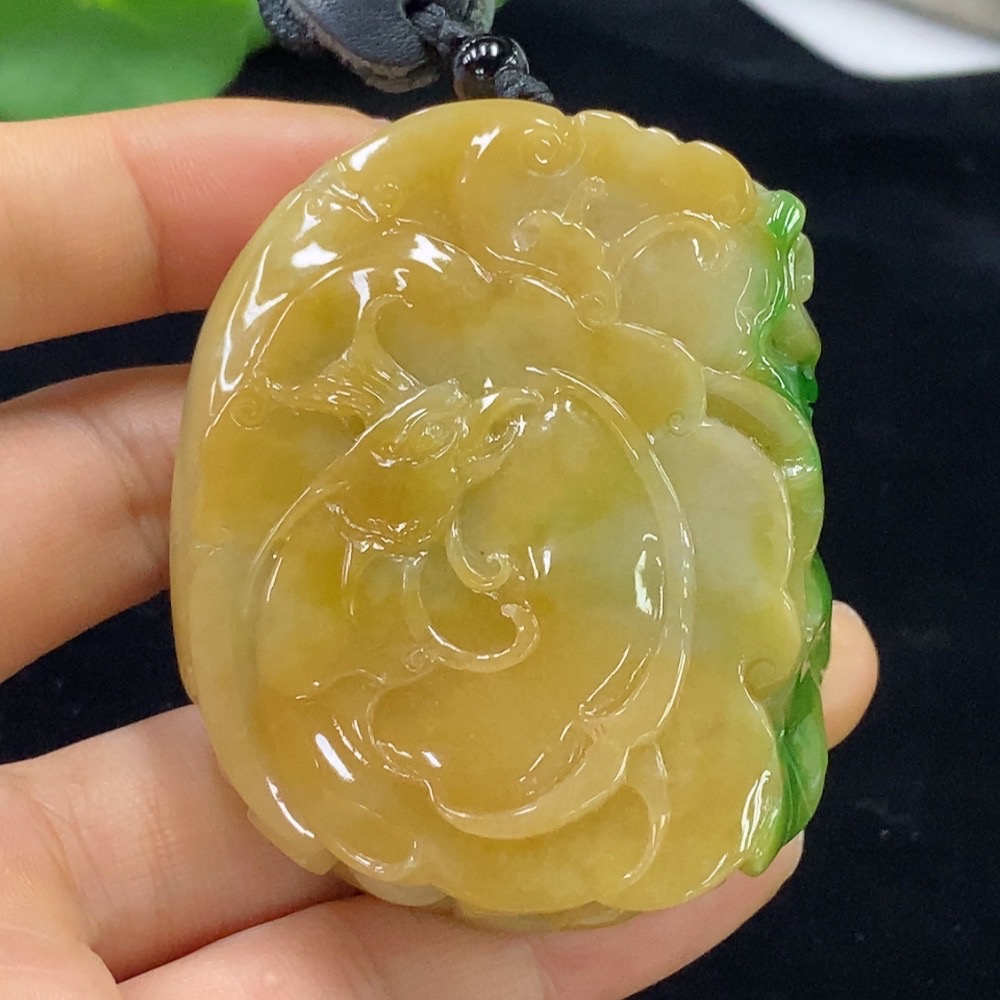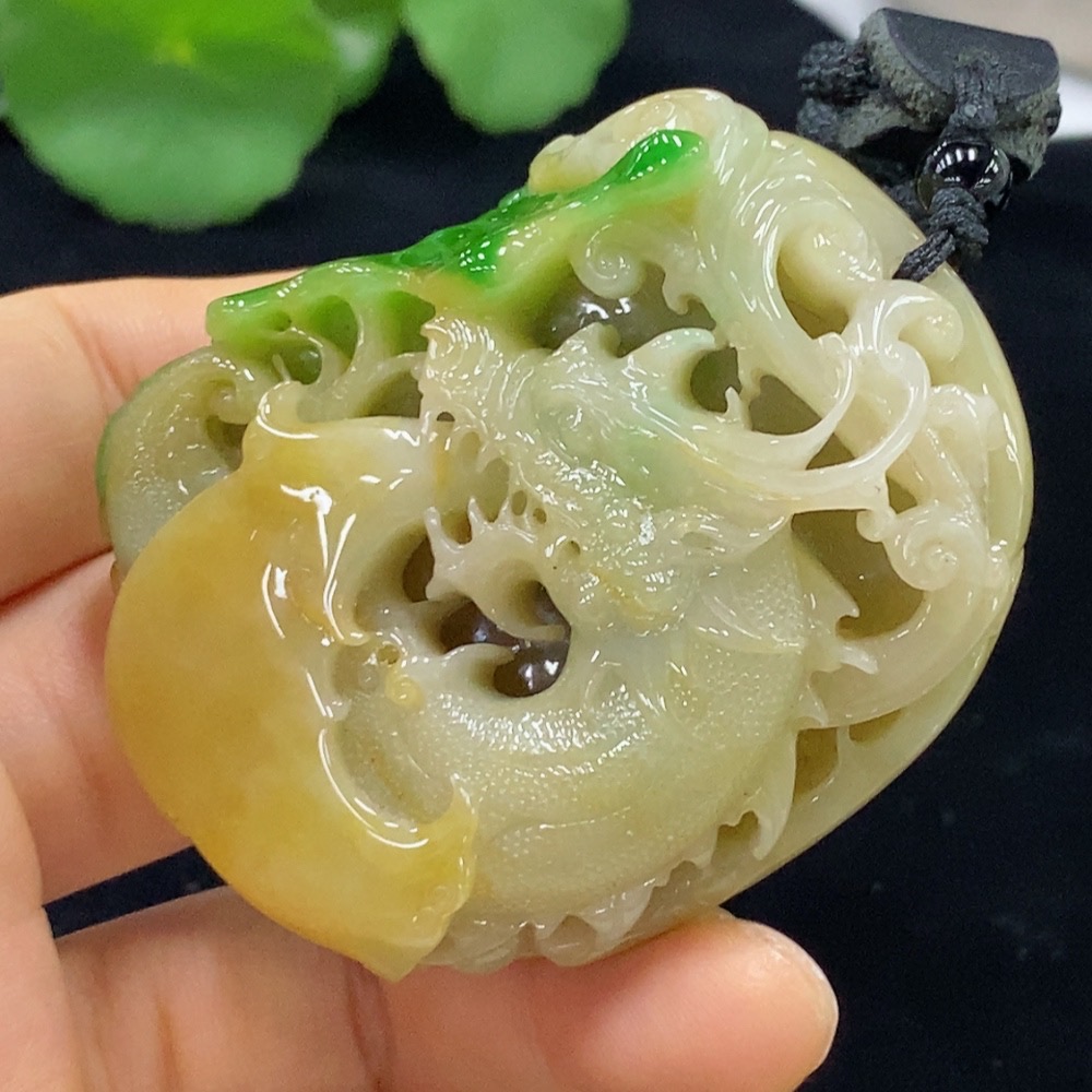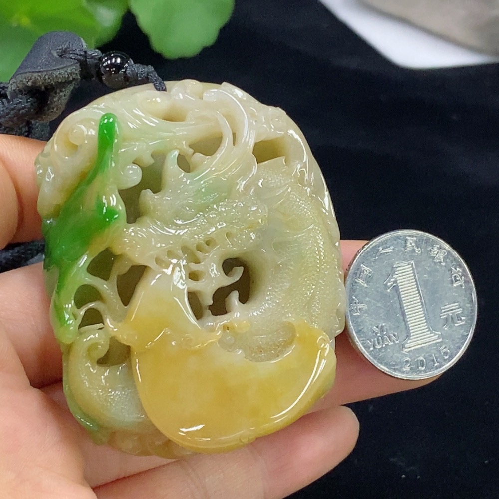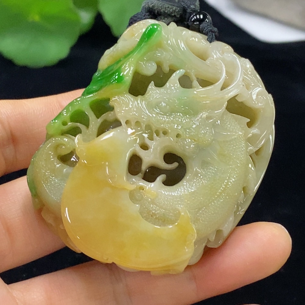 Jadeite Pendant Dragon Total Weight Approx. 118.63g (Including Rope Weight) Color Origin Undetermined