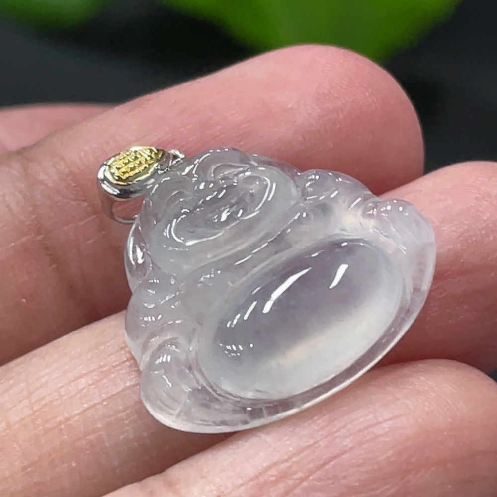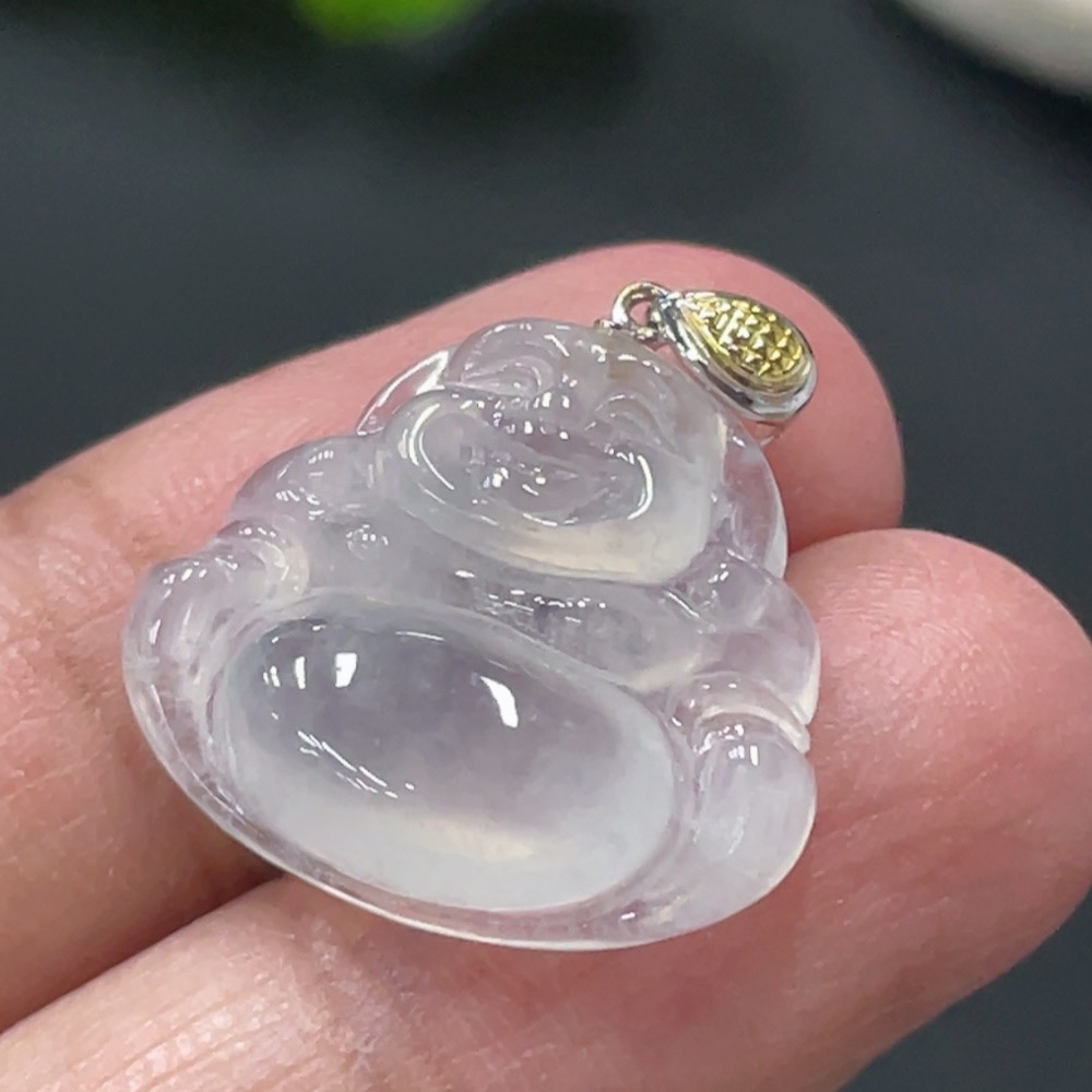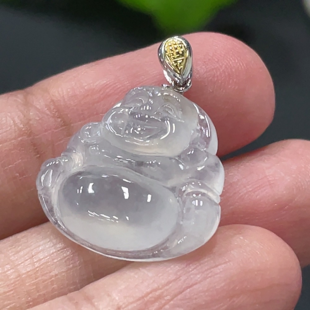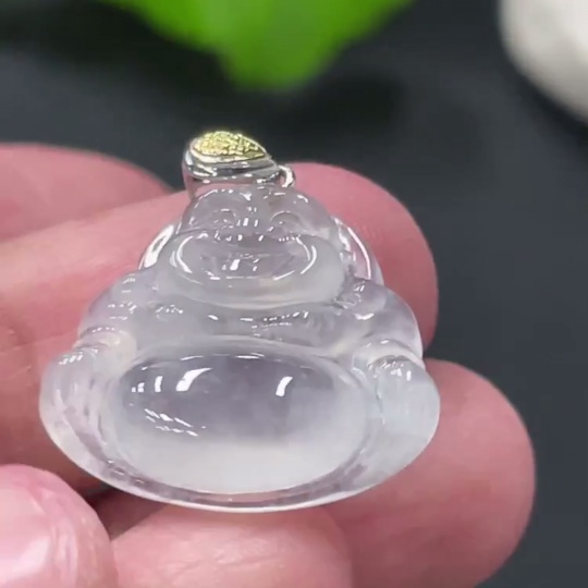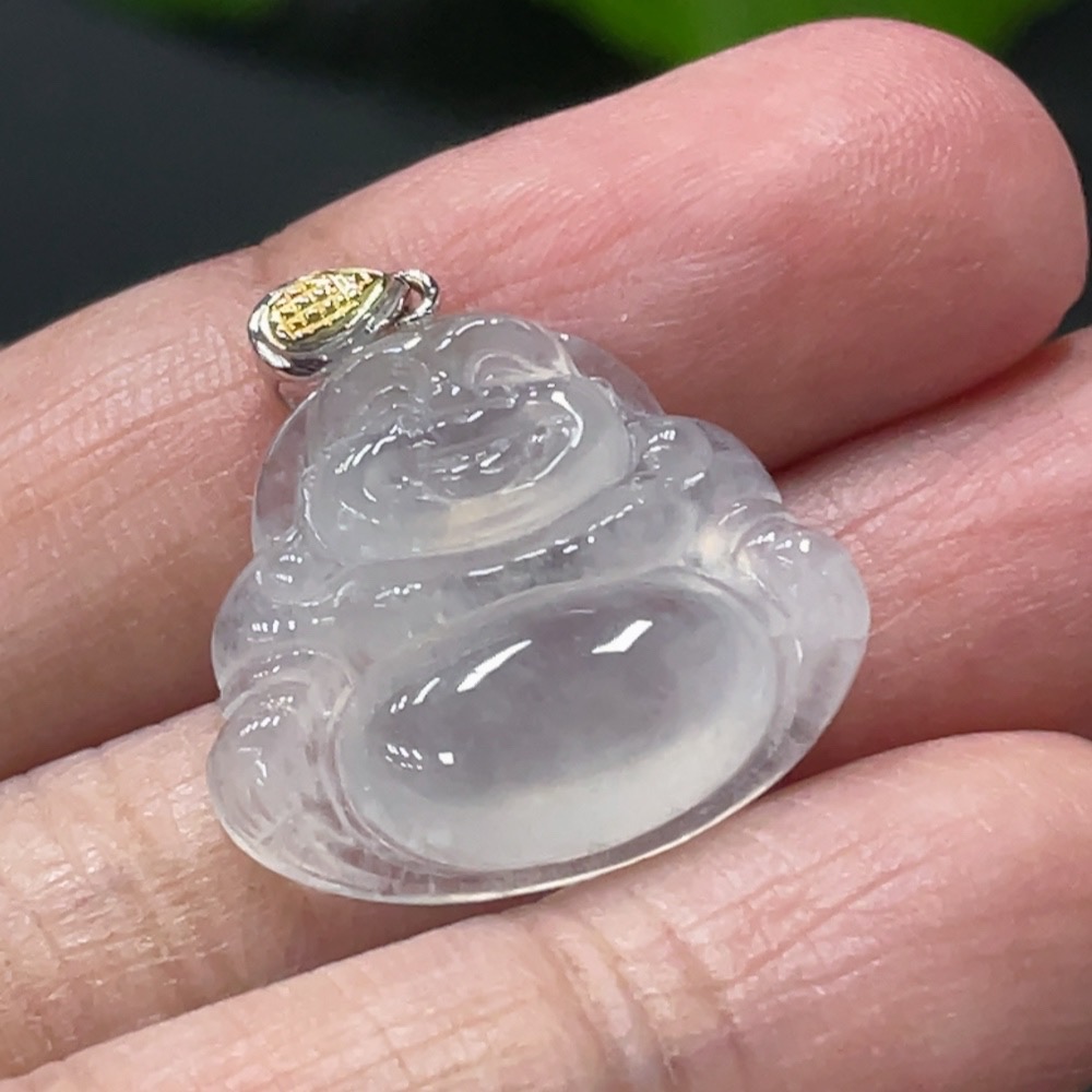 Jadeite Buddha Pendant with 18k Gold Clasp, Total Weight Approx. 3g