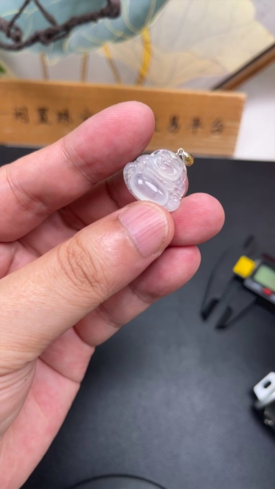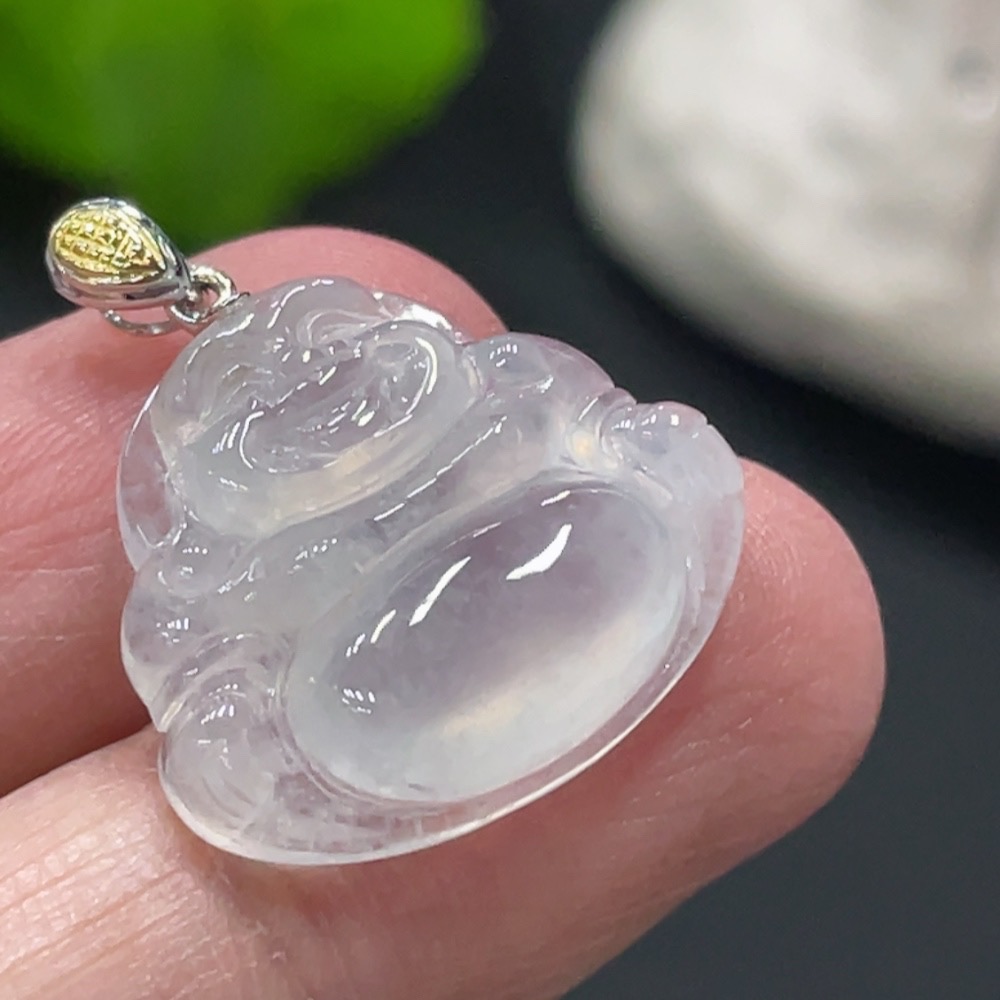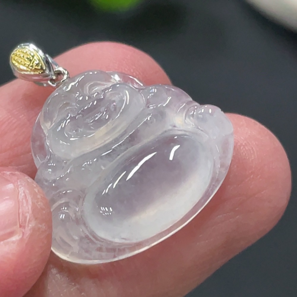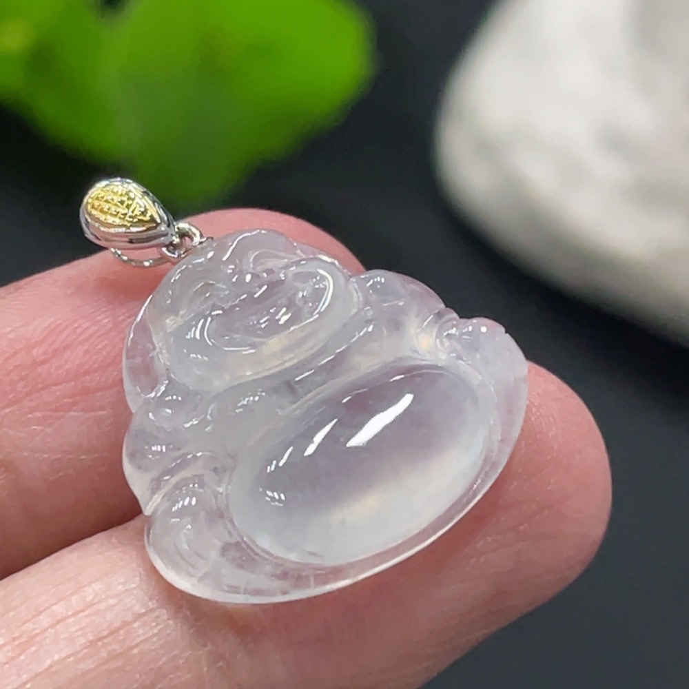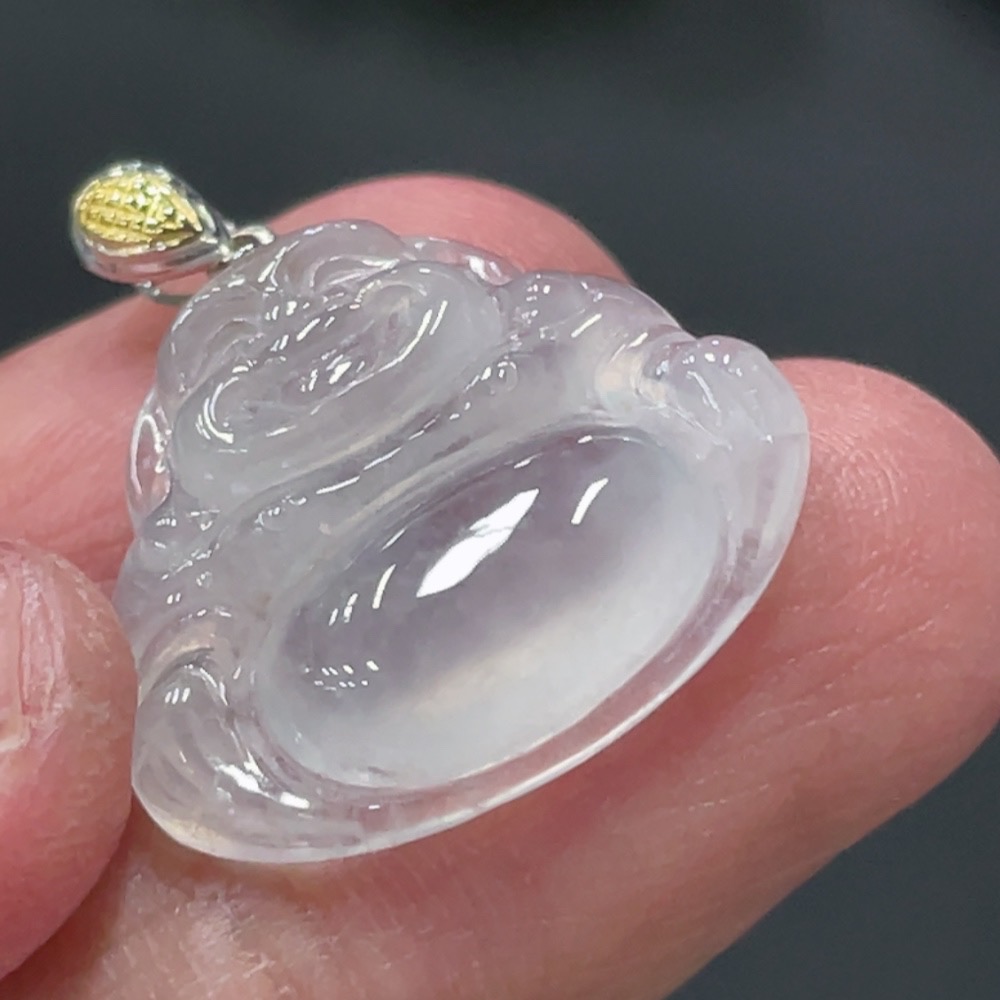 Jadeite Buddha Pendant with 18k Gold Clasp, Total Weight Approx. 3g