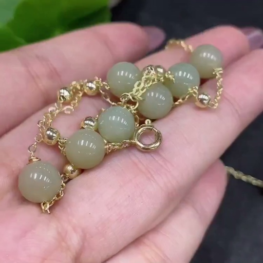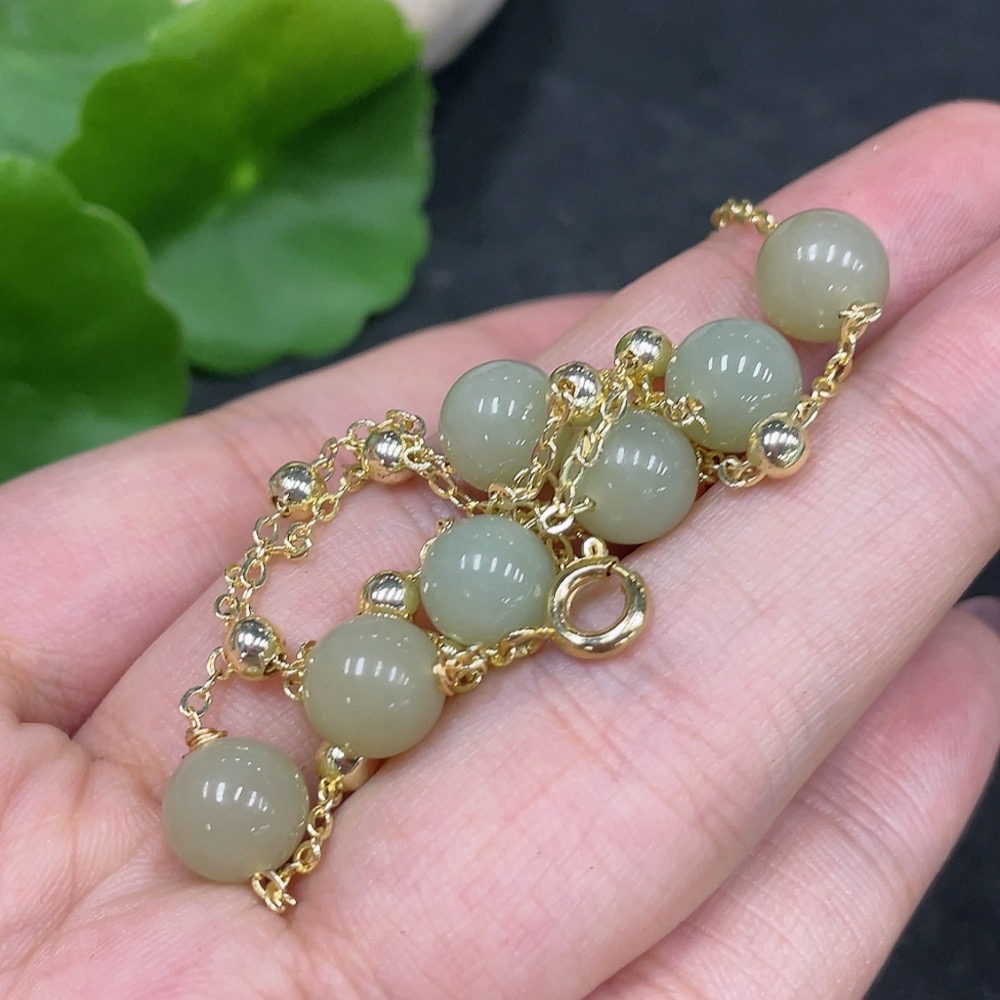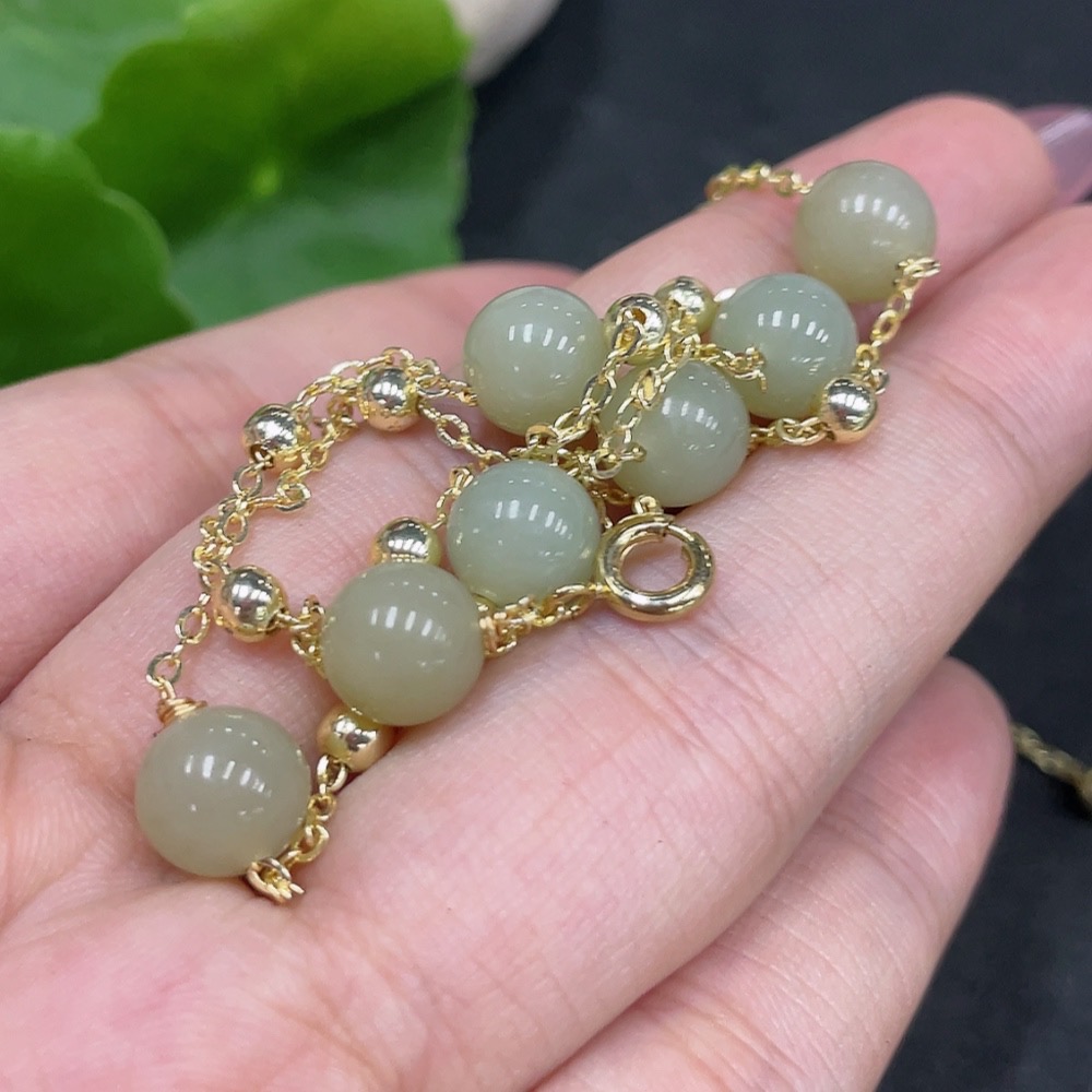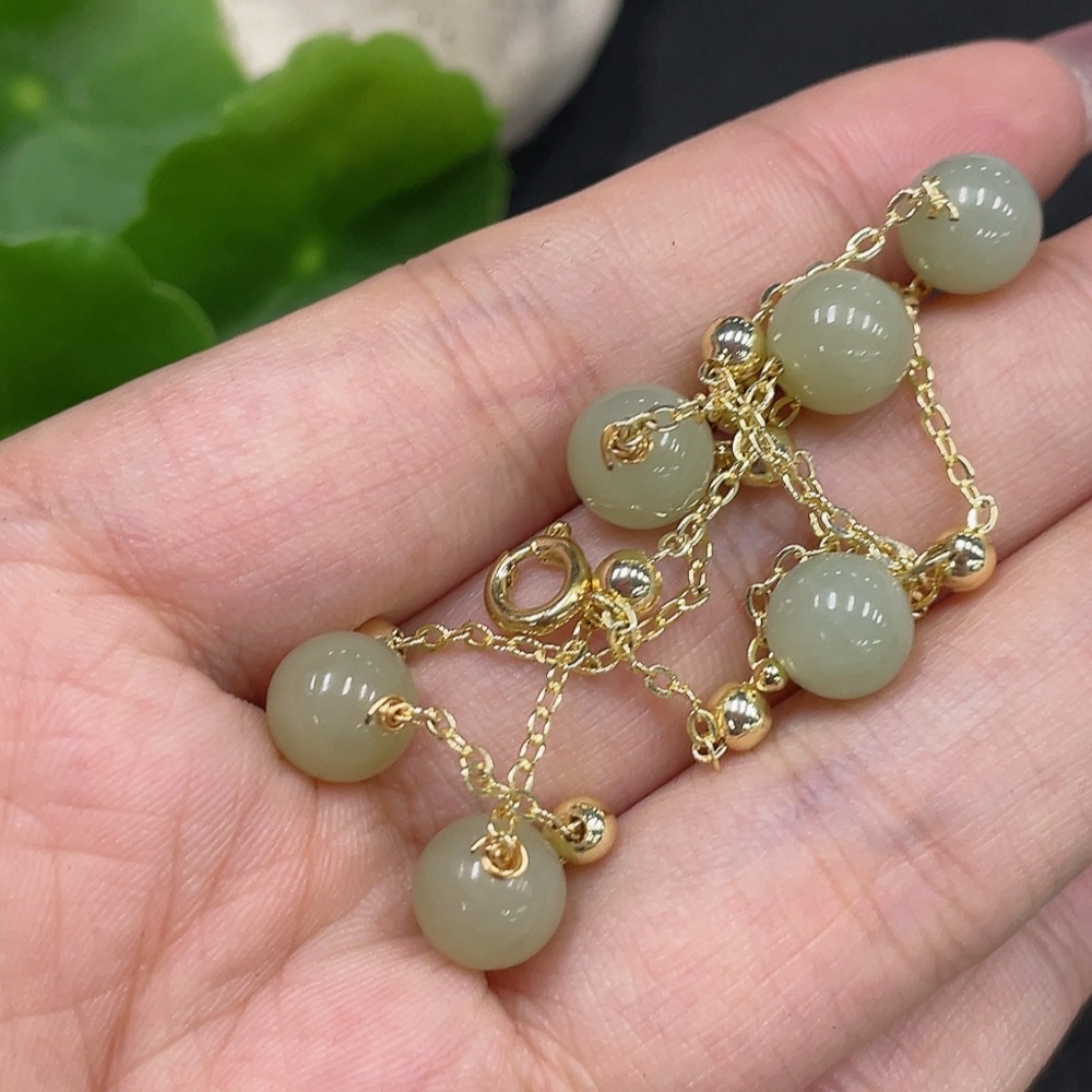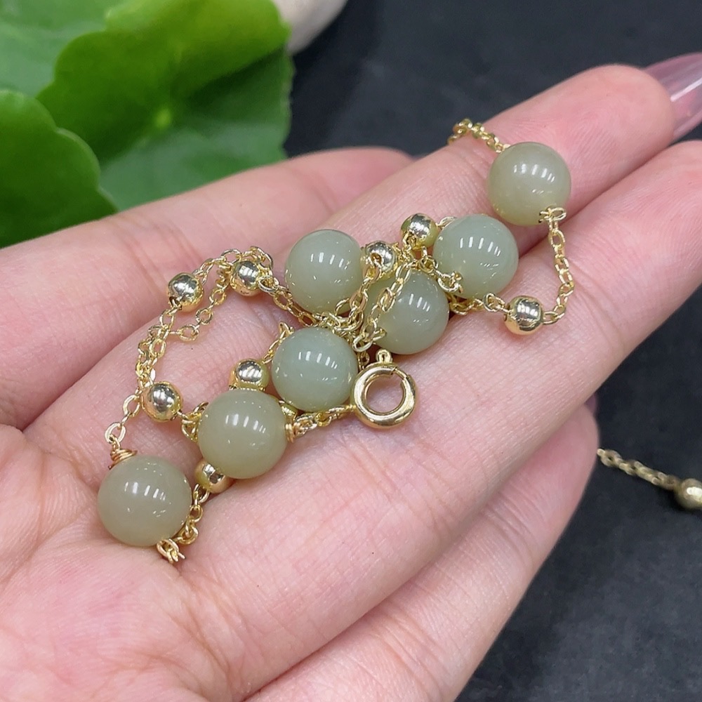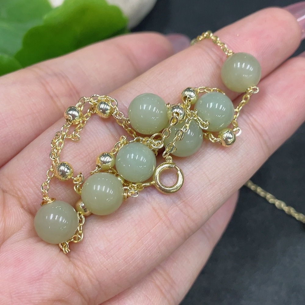 Hetian Jade Bead Necklace Non-Gold Size Approx. 7.5mm Total Weight Approx. 8g
