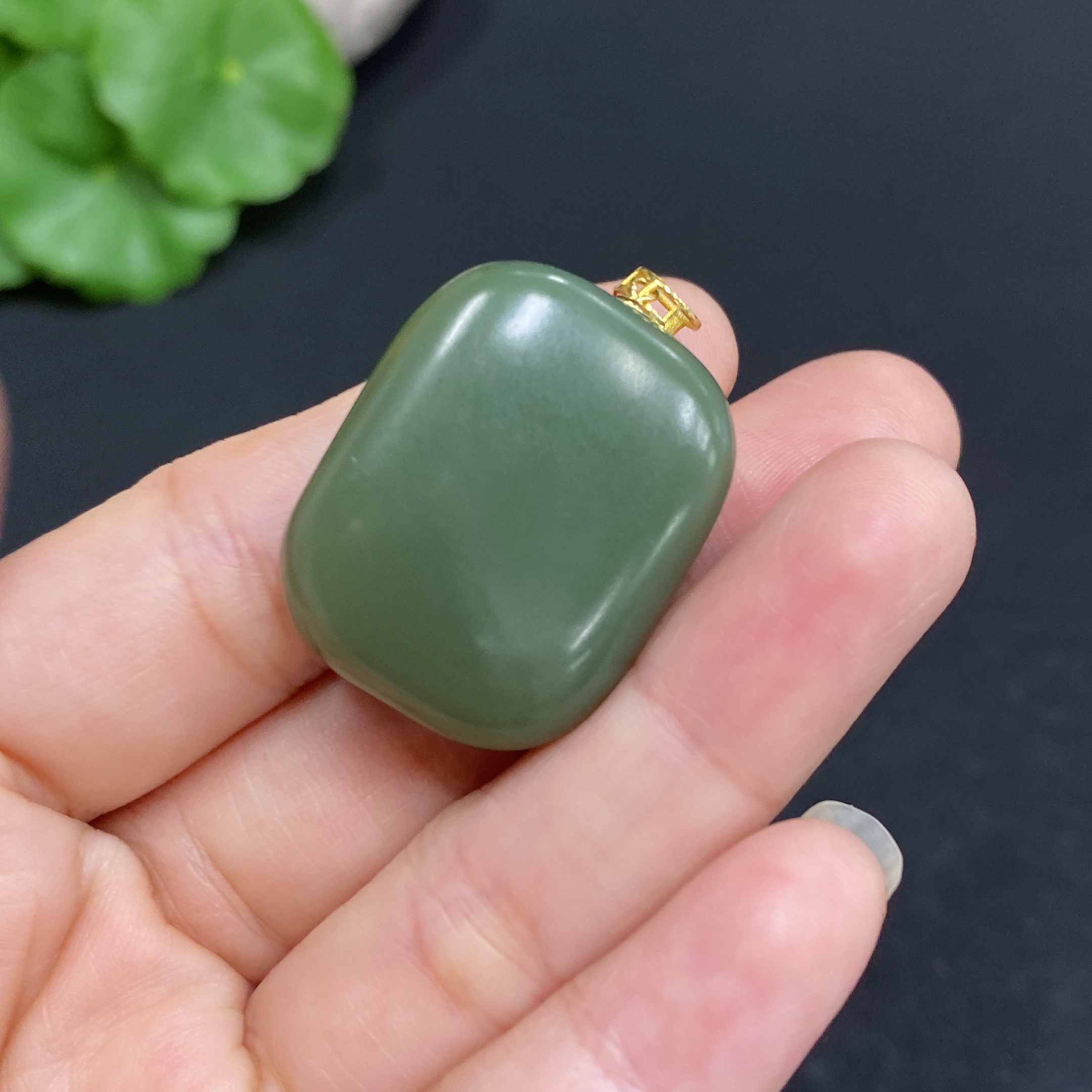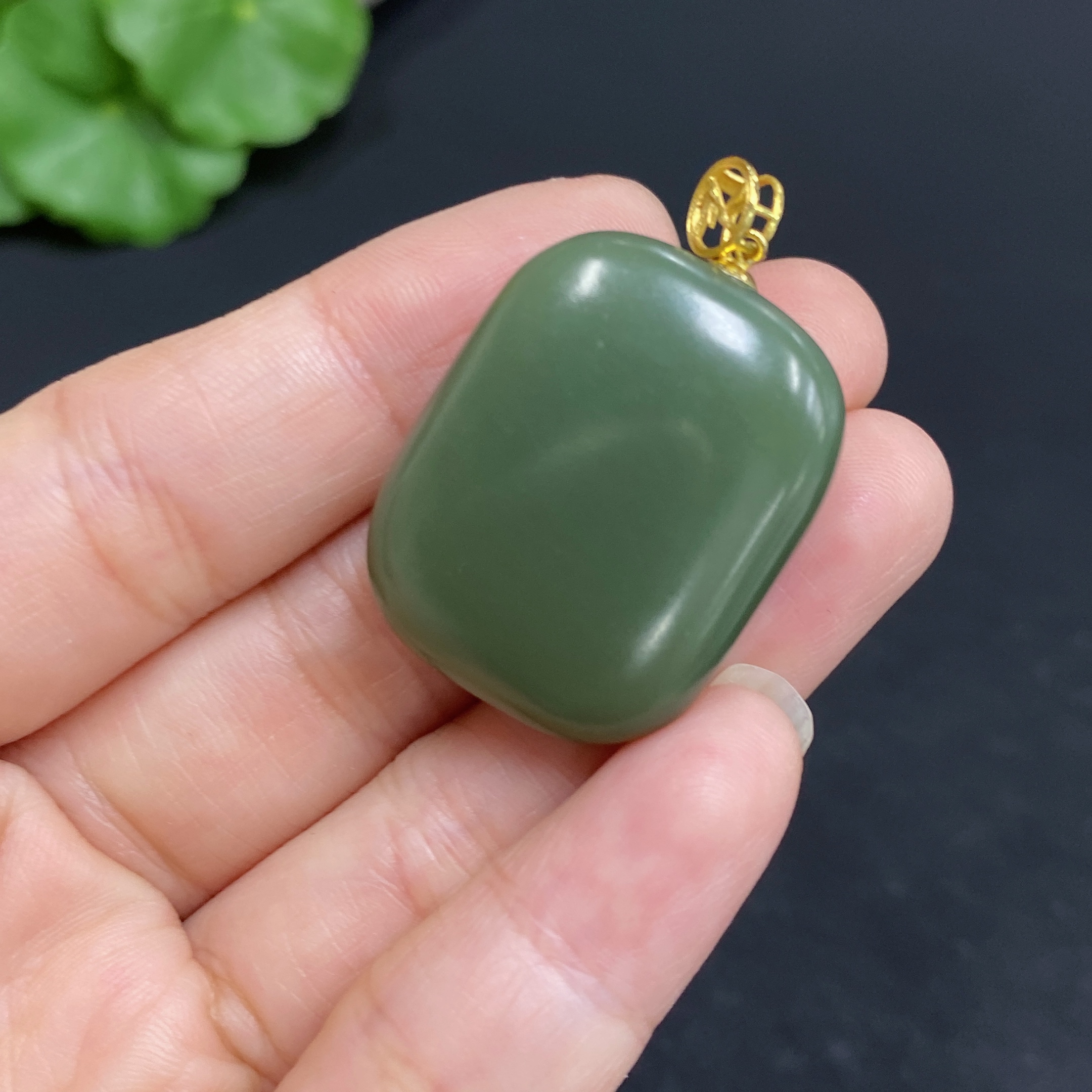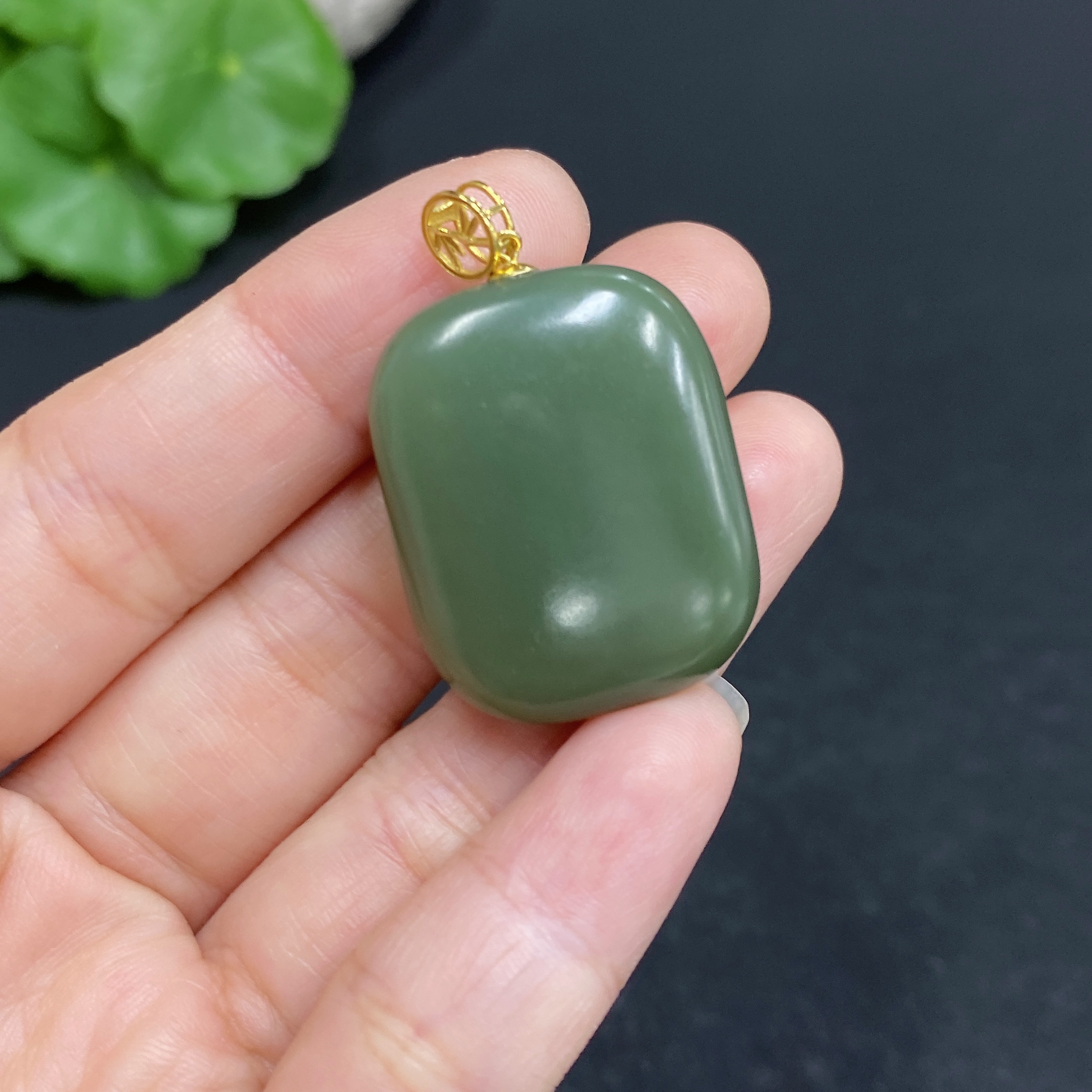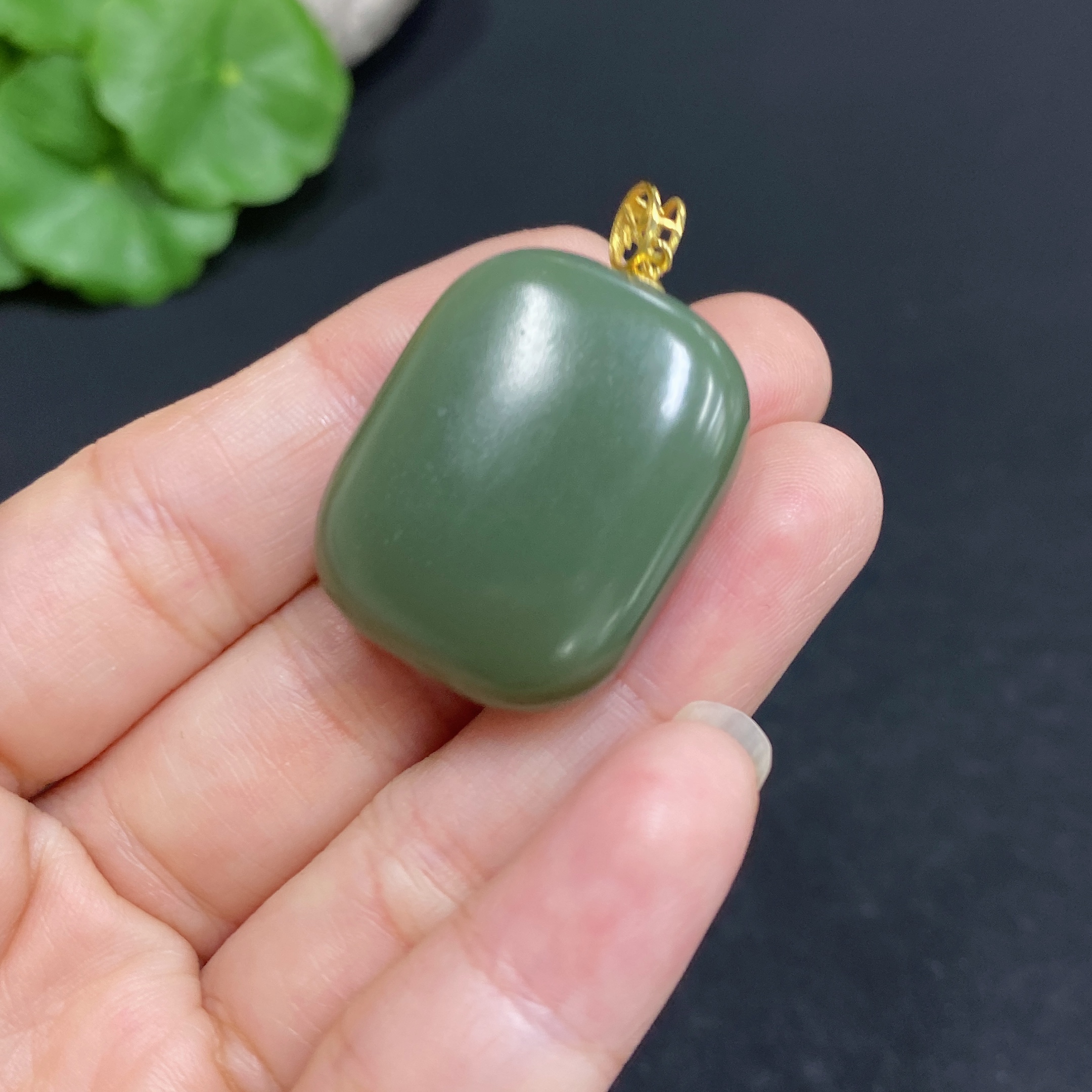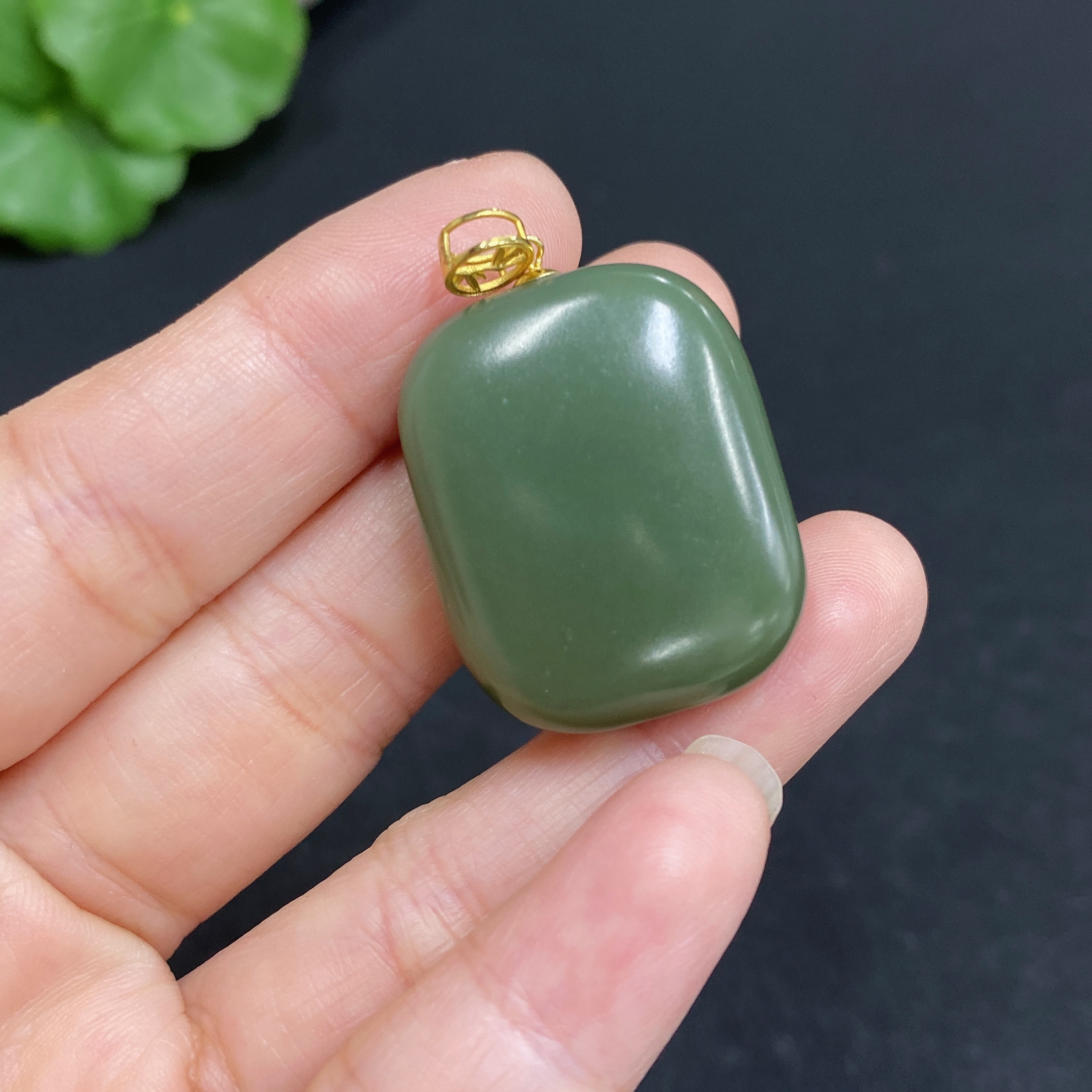 Hetian Jade Pendant Plain Pendant 18k Gold Total Weight Approx. 13.6g