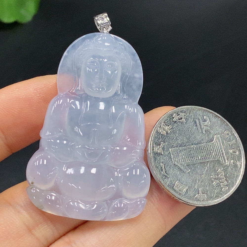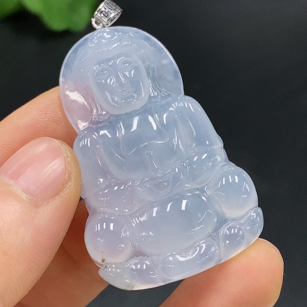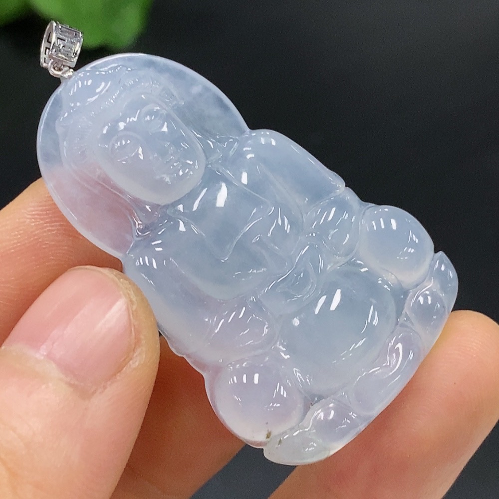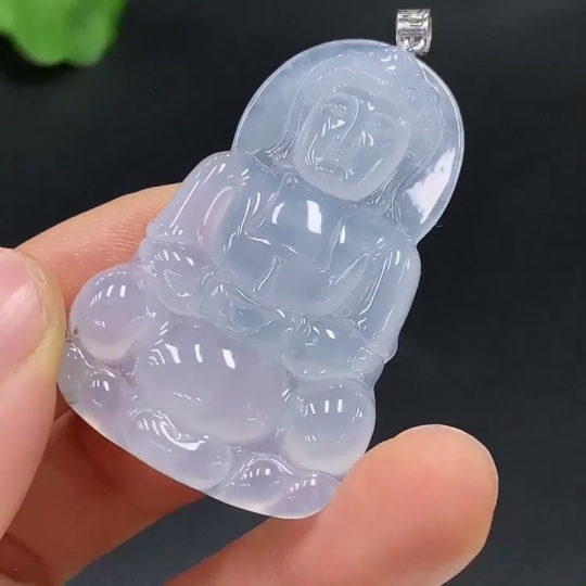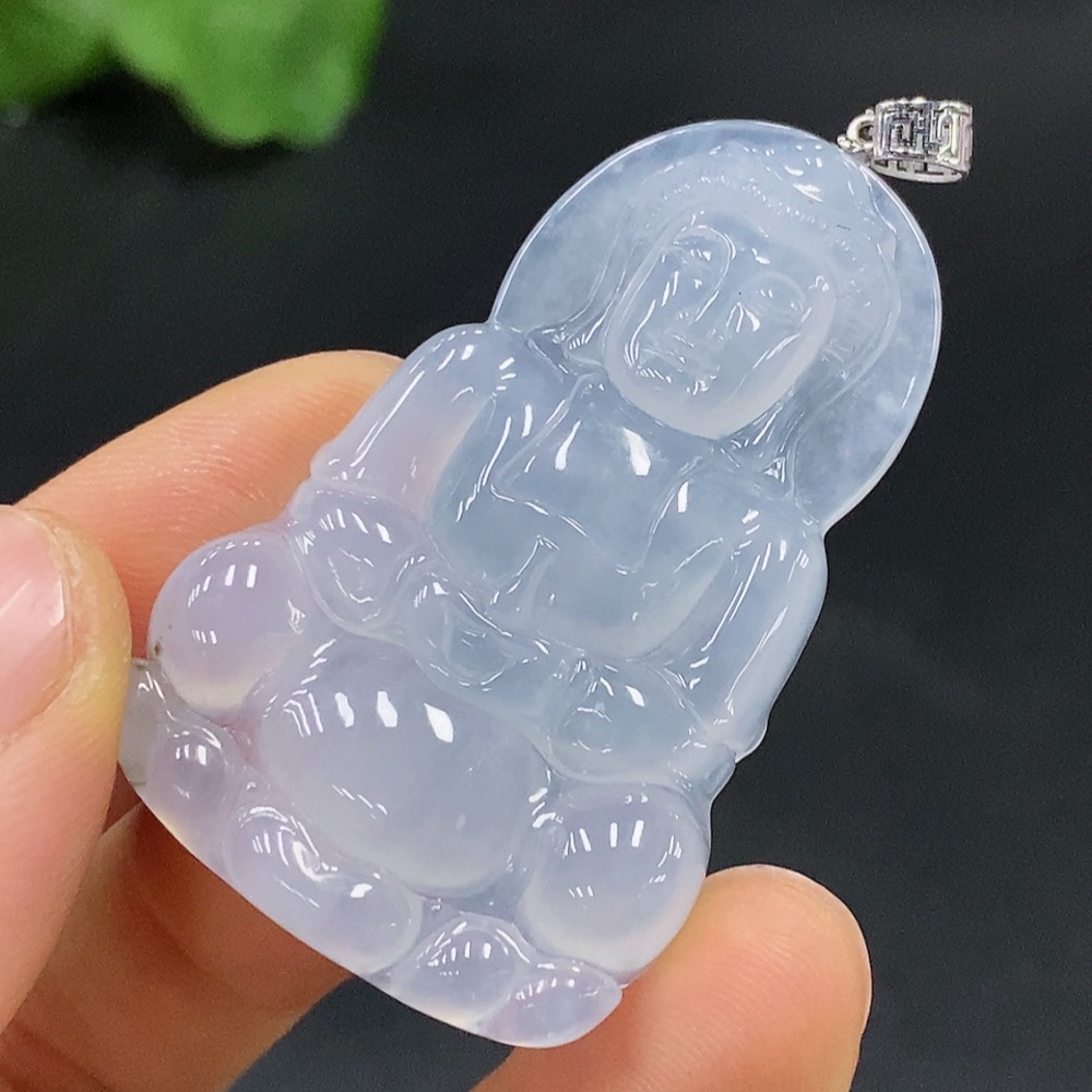Jadeite Guanyin Pendant (18K Gold Clasp) Total Weight 11.259g