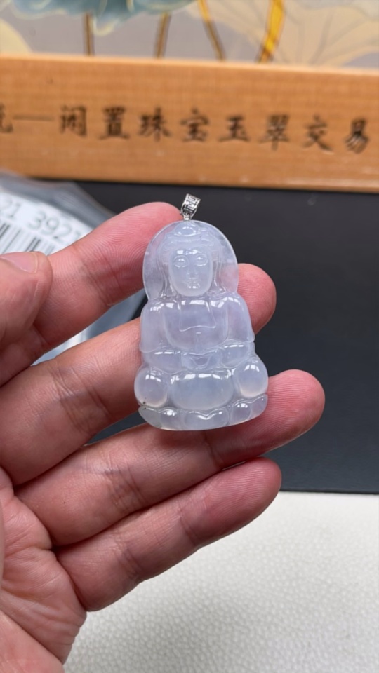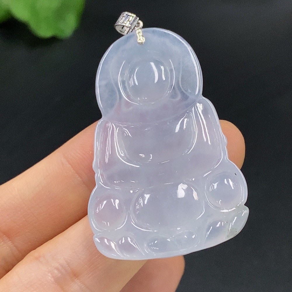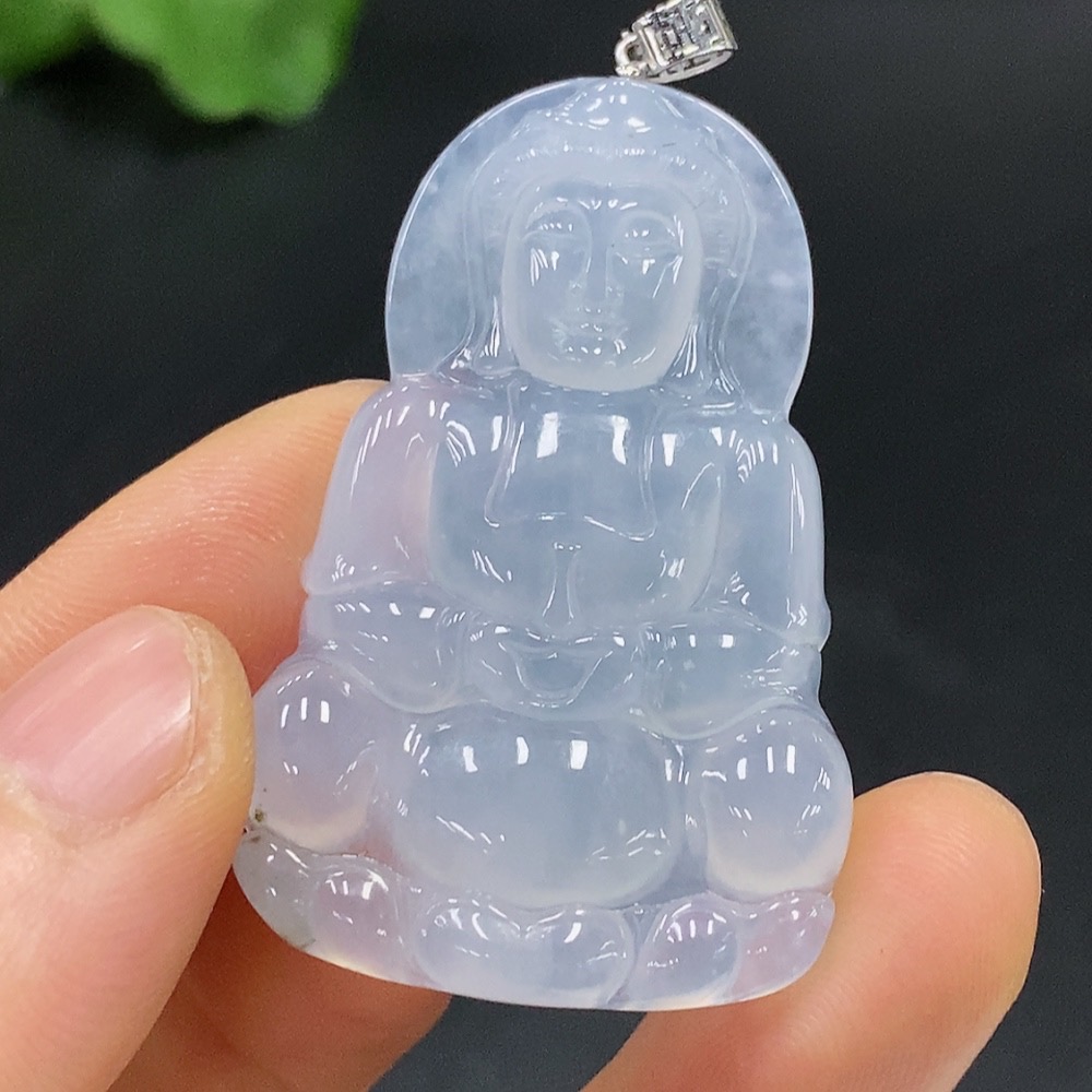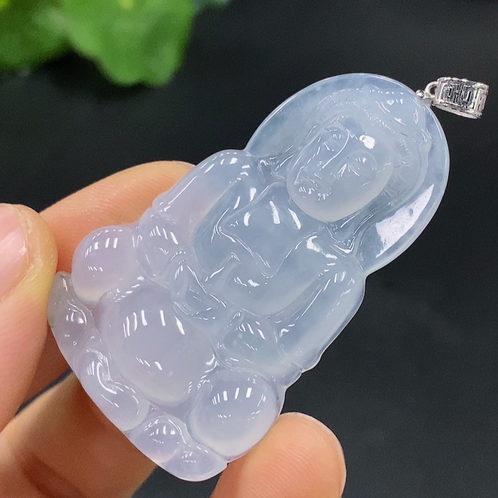 Jadeite Guanyin Pendant (18K Gold Clasp) Total Weight 11.259g