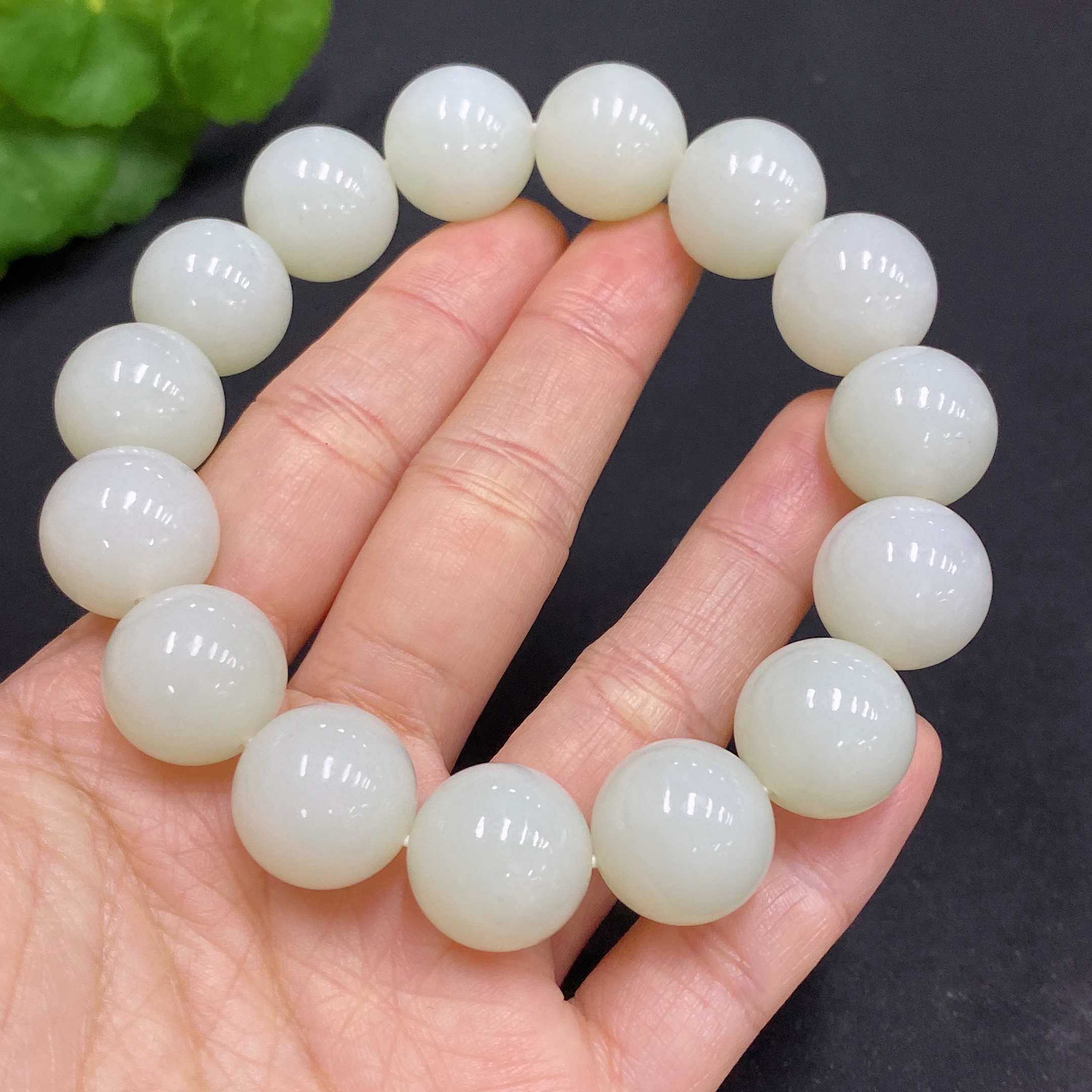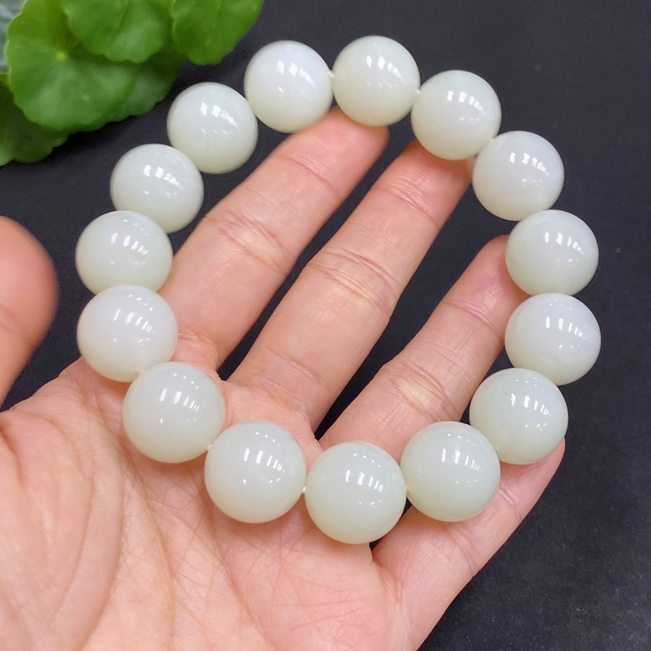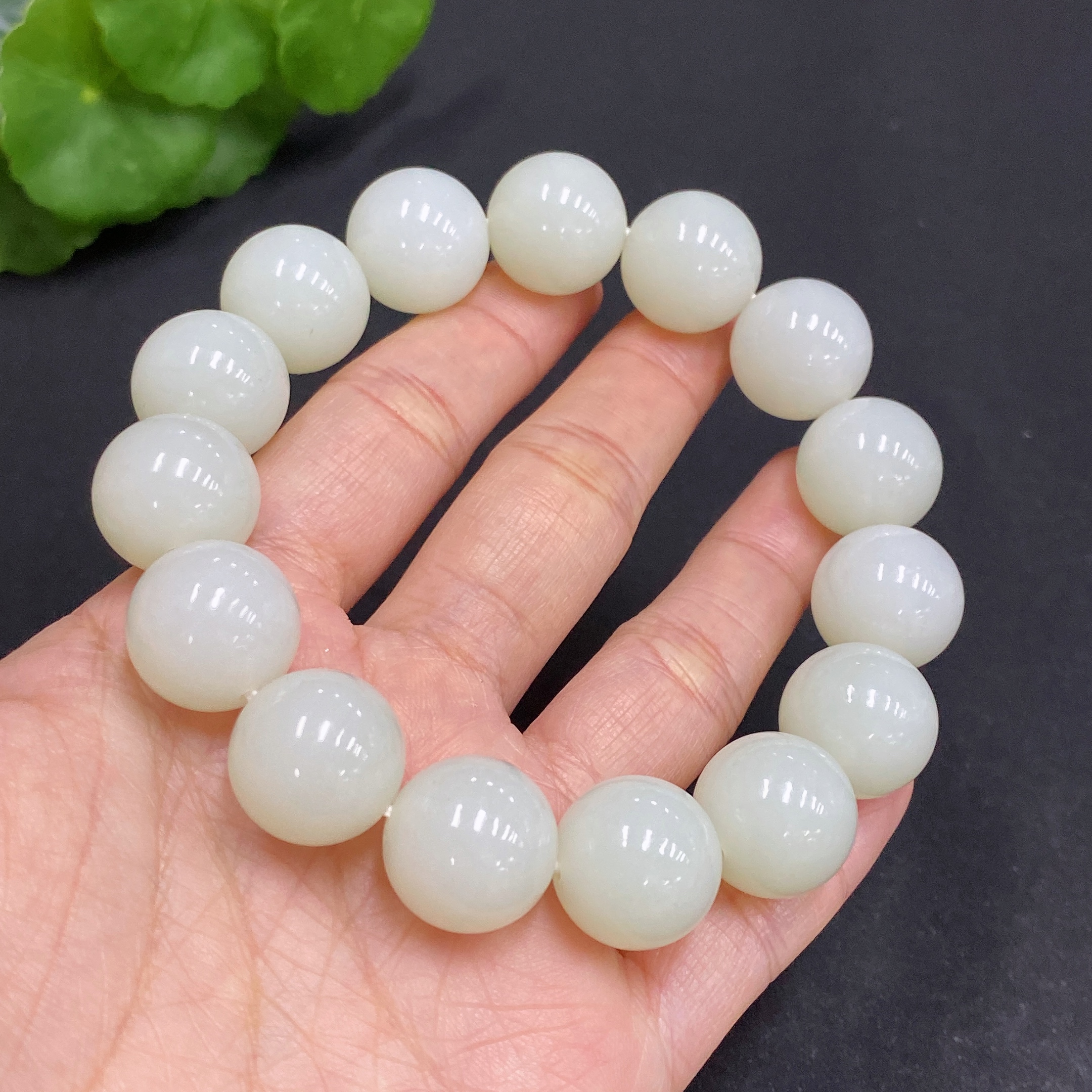 Hetian Jade Bracelet Approx. 14.8mm Beads Total Weight Approx. 77.9g