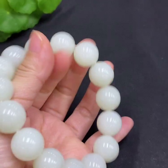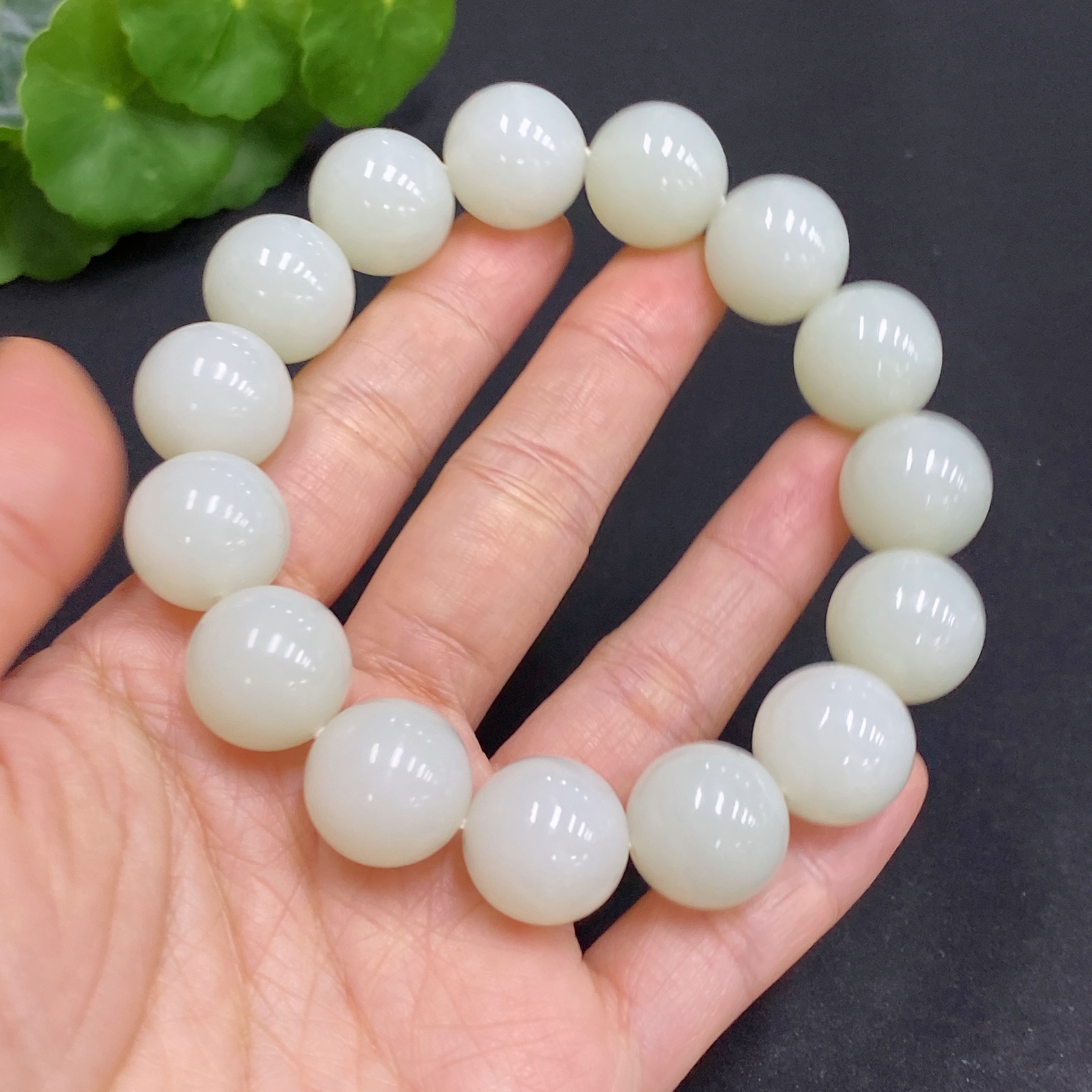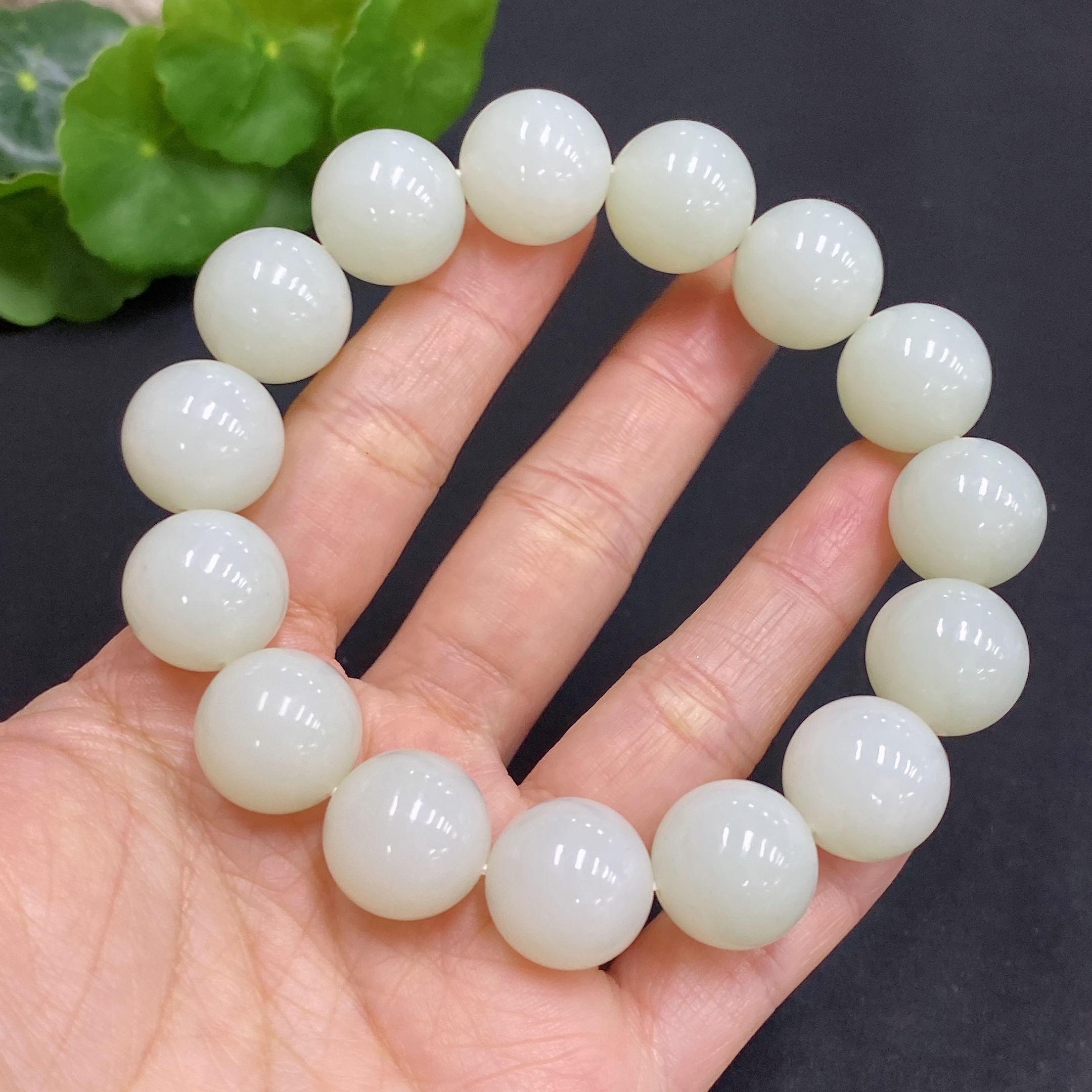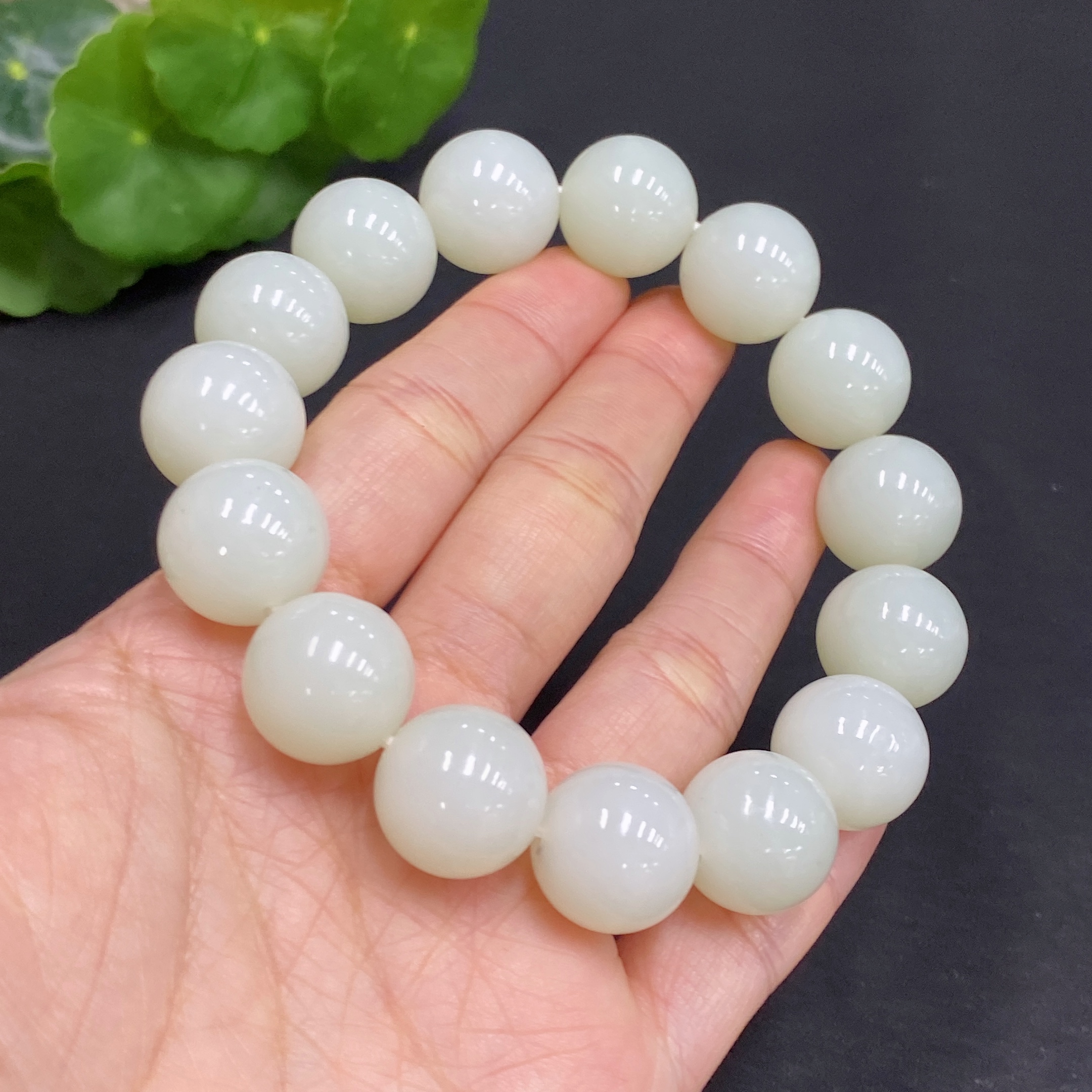 Hetian Jade Bracelet Approx. 14.8mm Beads Total Weight Approx. 77.9g