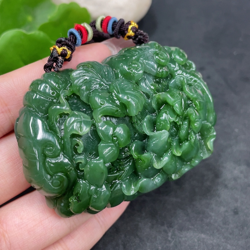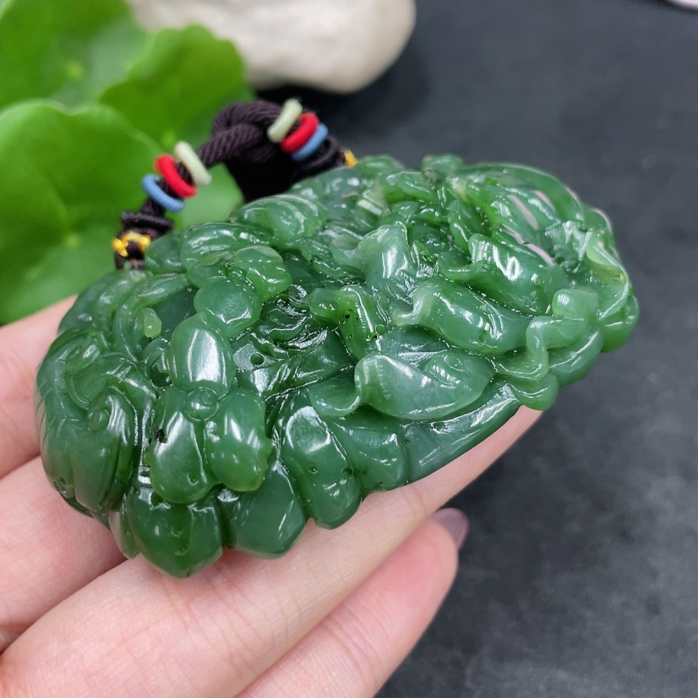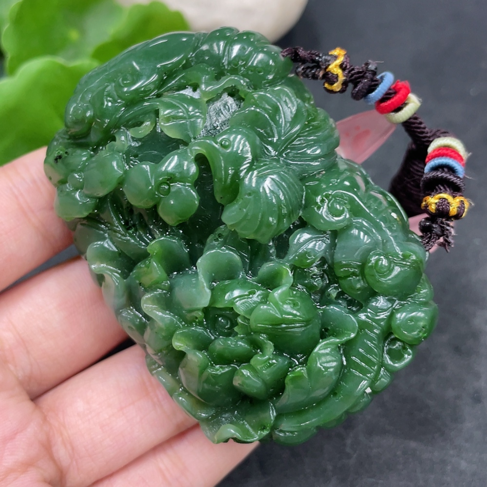 Hetian Jade Pendant "Flowers Blossom and Wealth Gathers