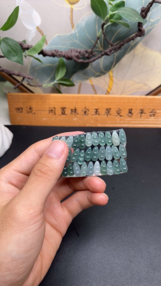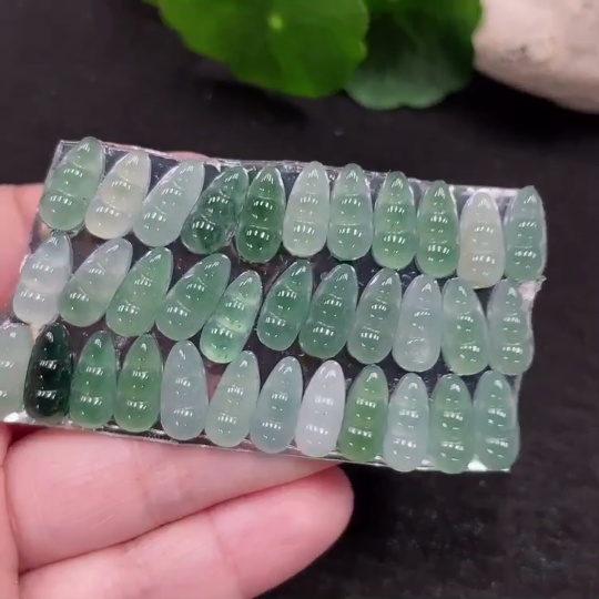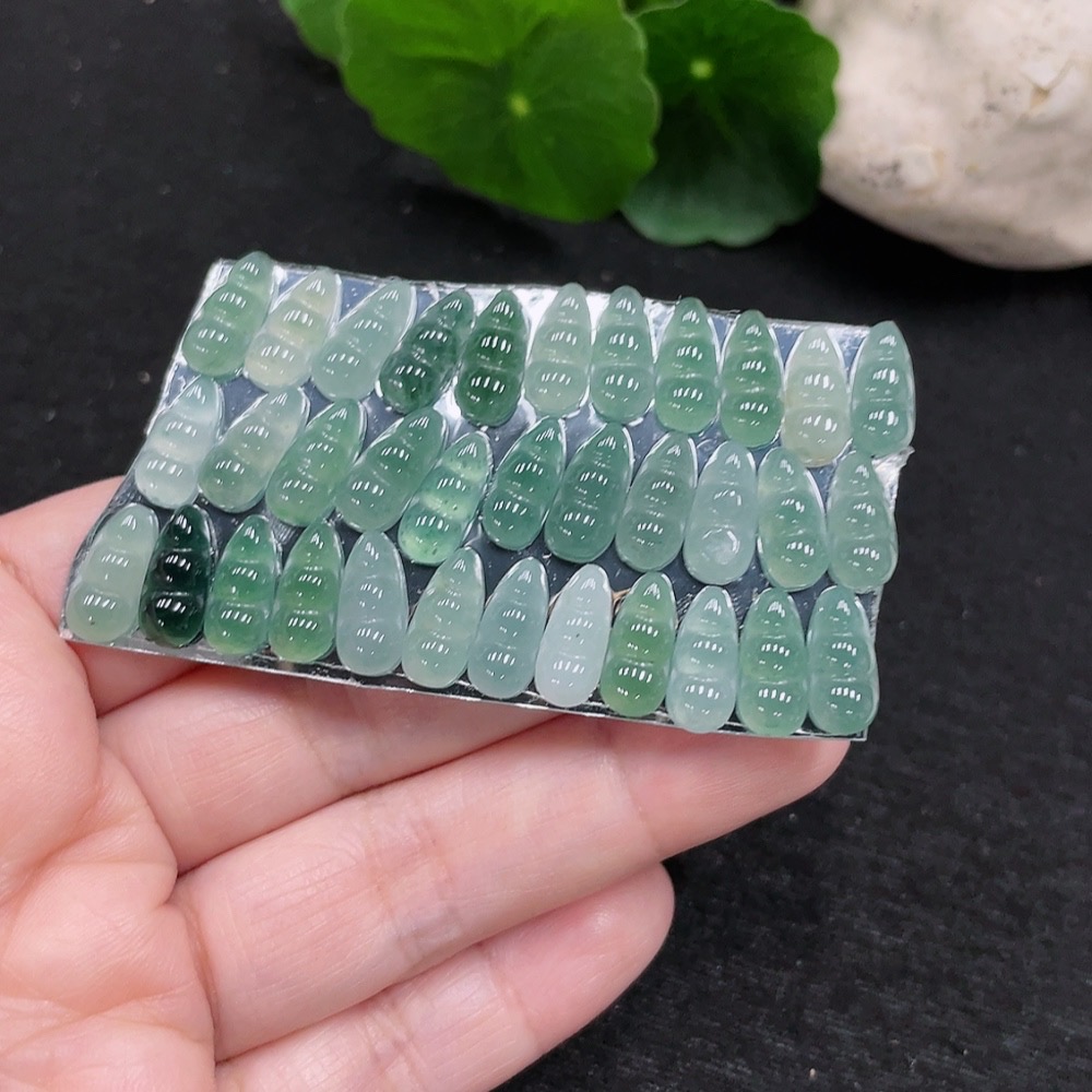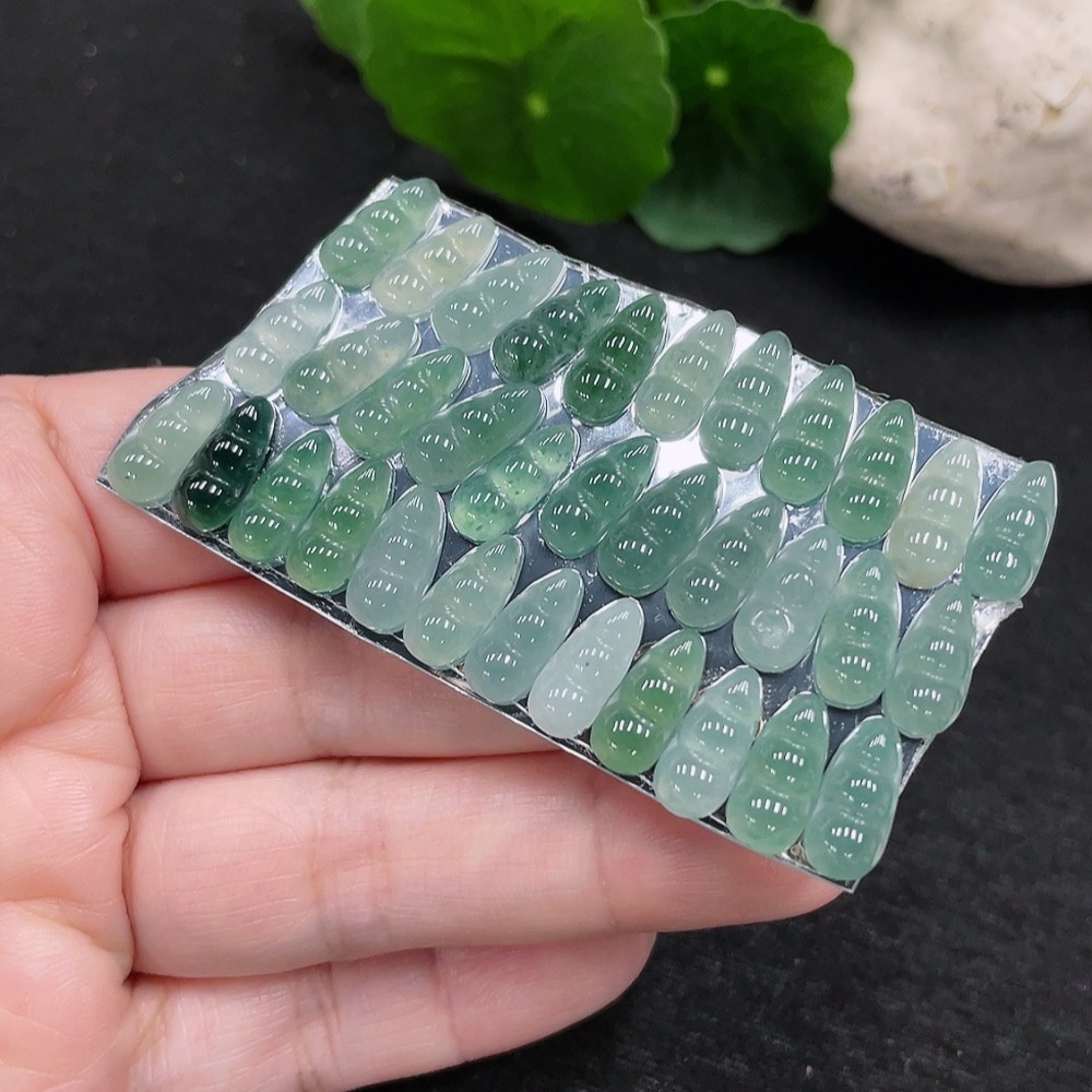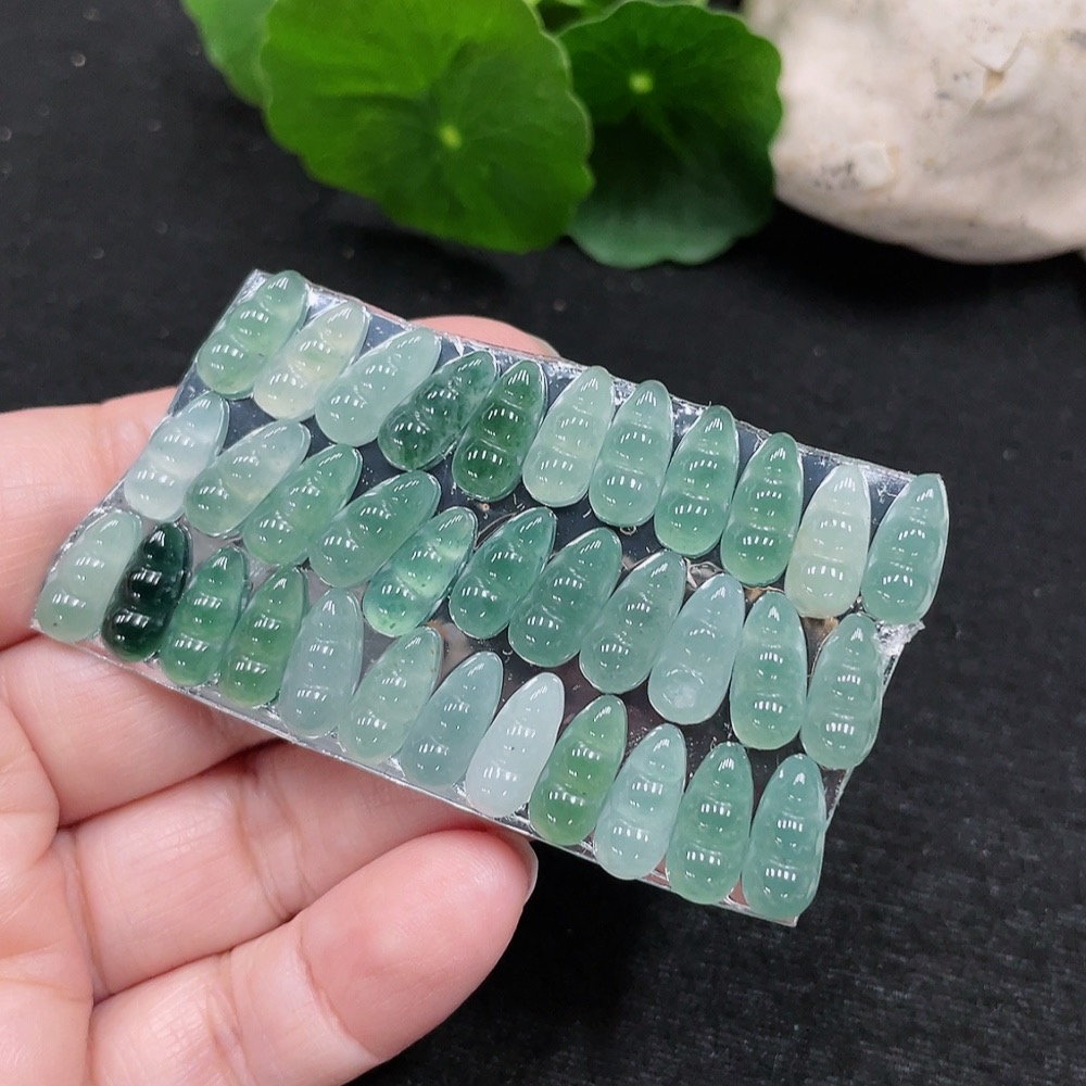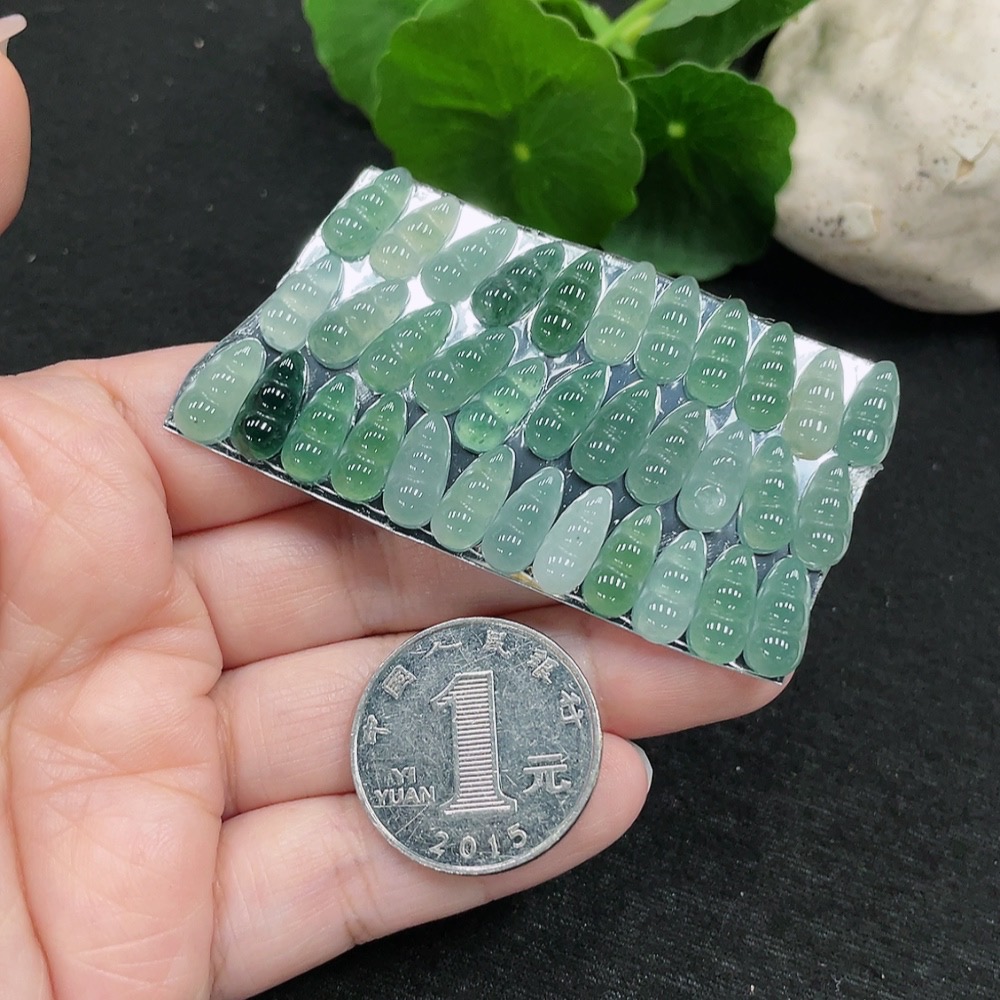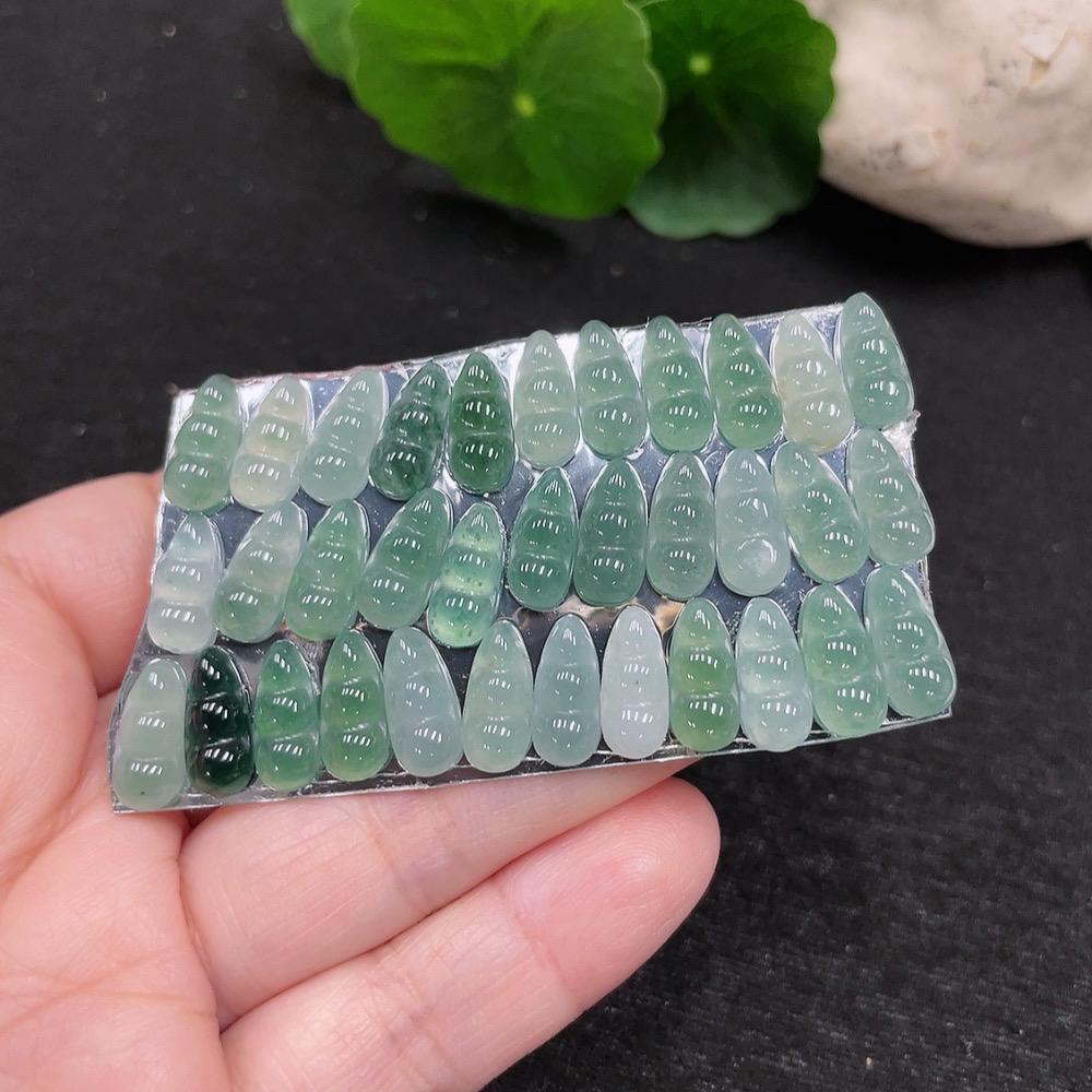 Jadeite Auspicious Bean Inlay Set Sell as a Lot