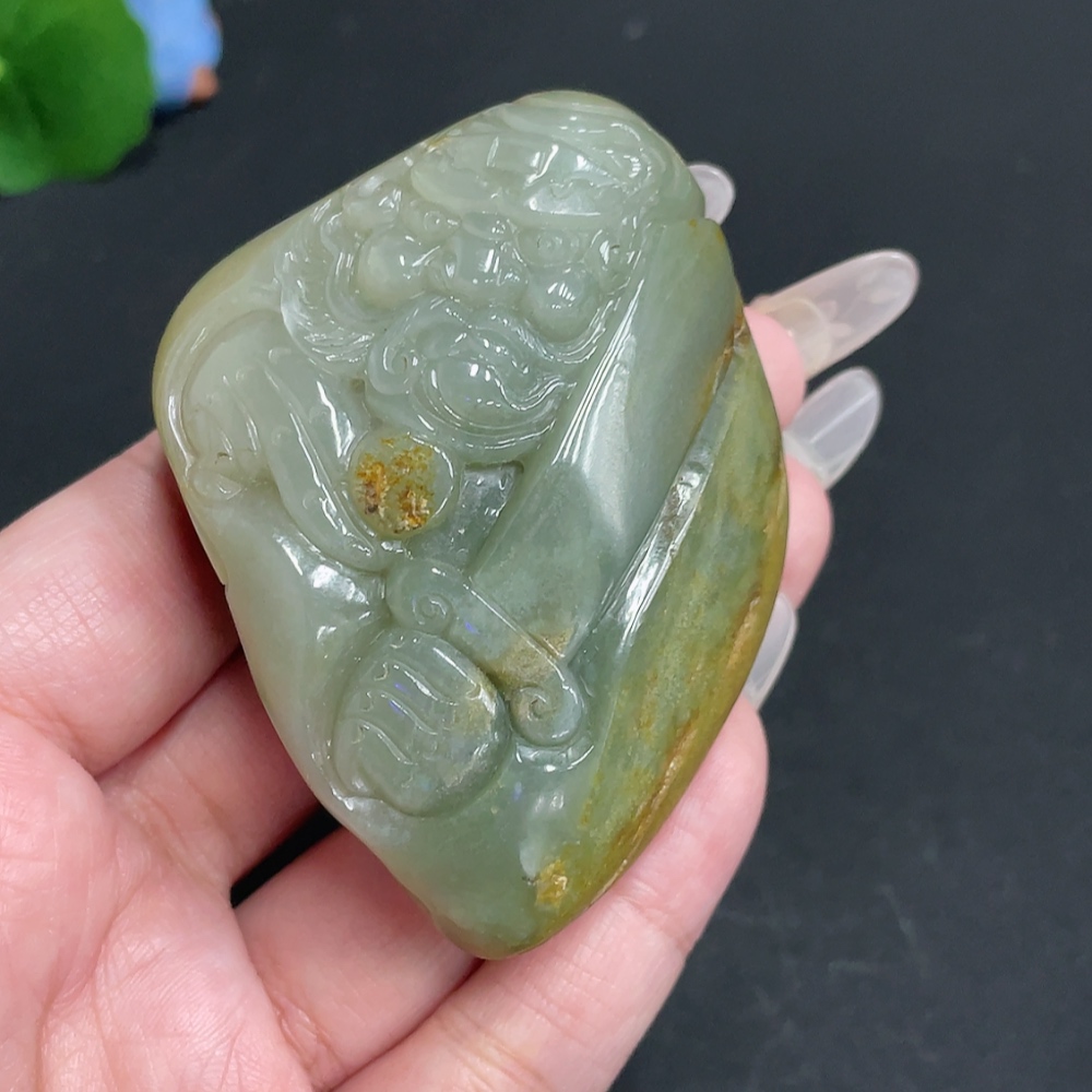 Trezaar - Hetian Jade Handheld Piece - Zhong Kui - Undetermined Skin Color Origin - Total Weight Approx. 135.7g
