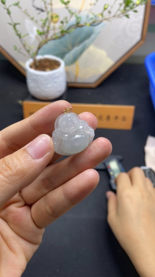 Jadeite Buddha Pendant Total Weight Approx.6.96g 18k Gold Clasp