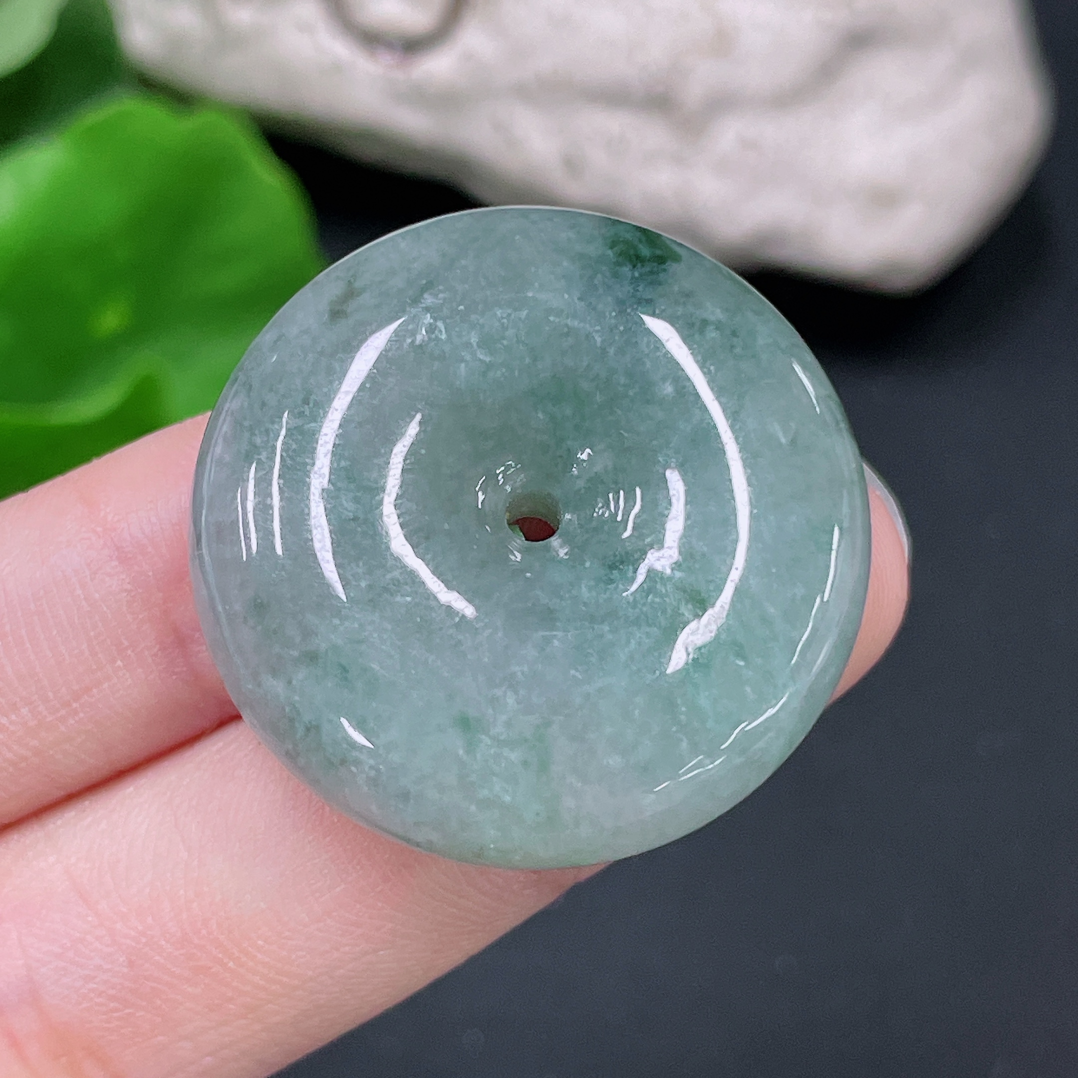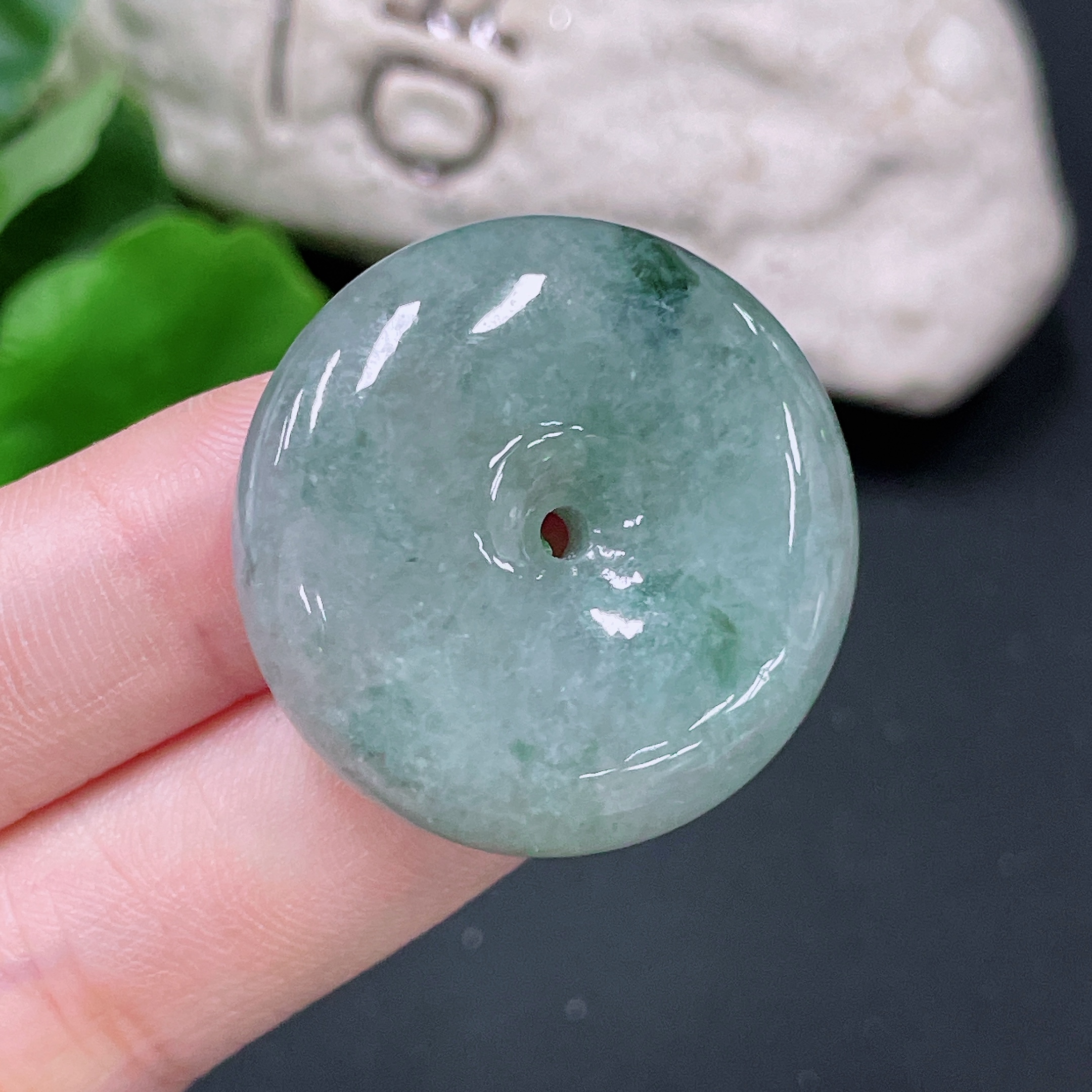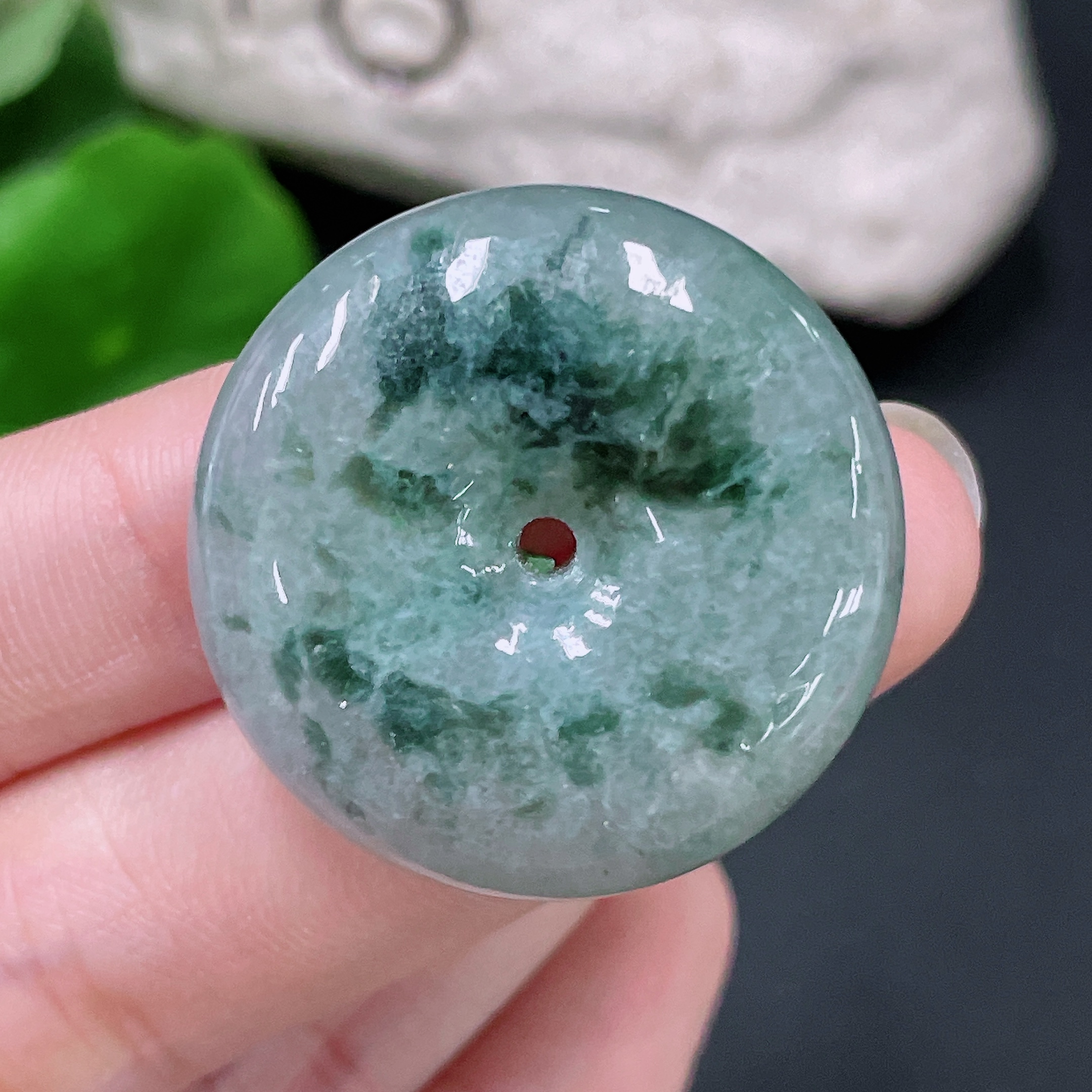 Jadeite safety buckle pendant with a total weight of approximately 18.4g containing other mineral components