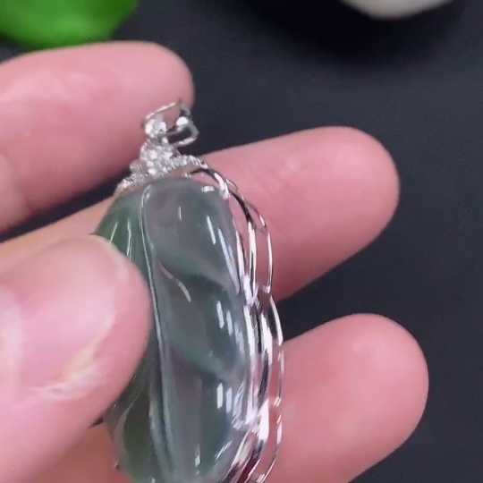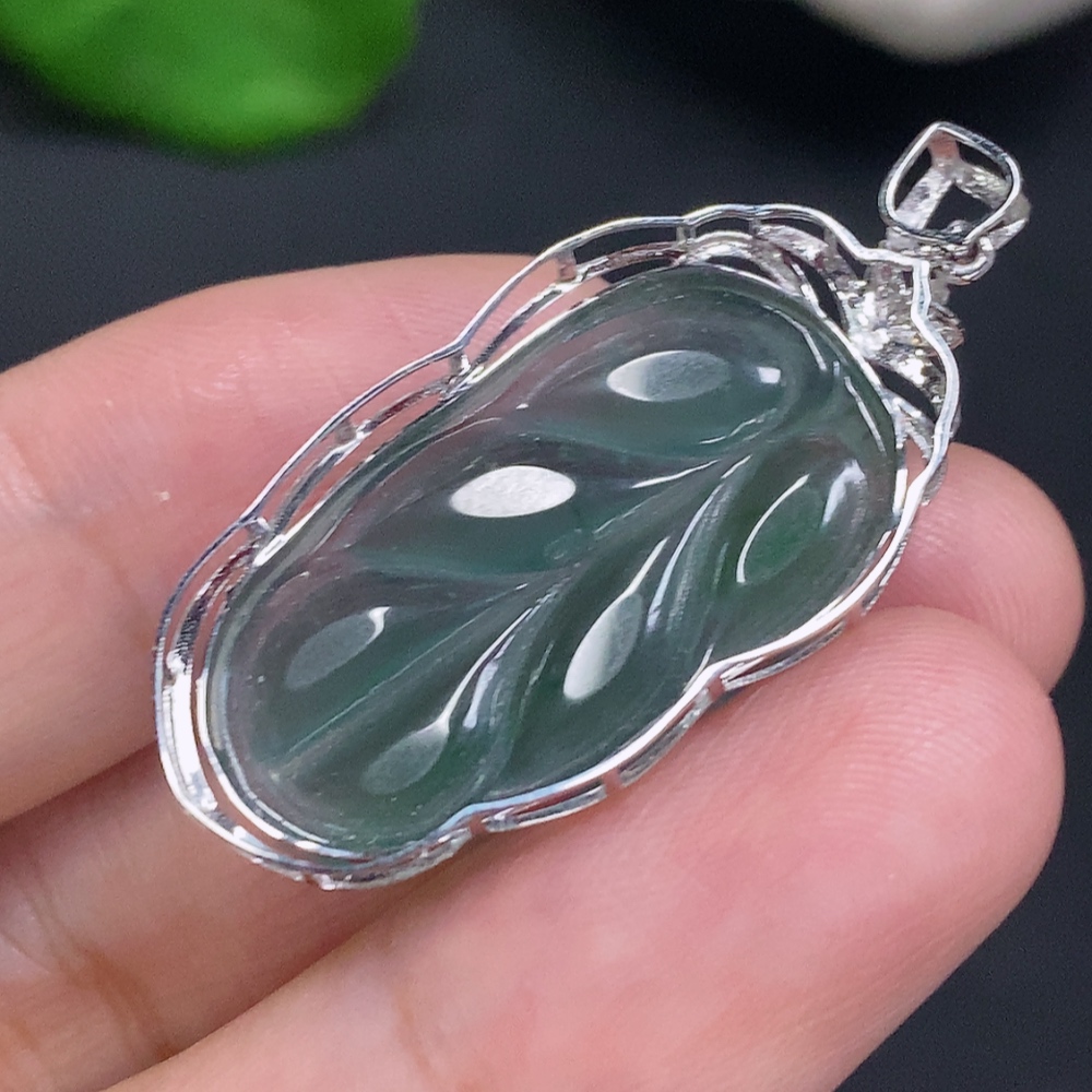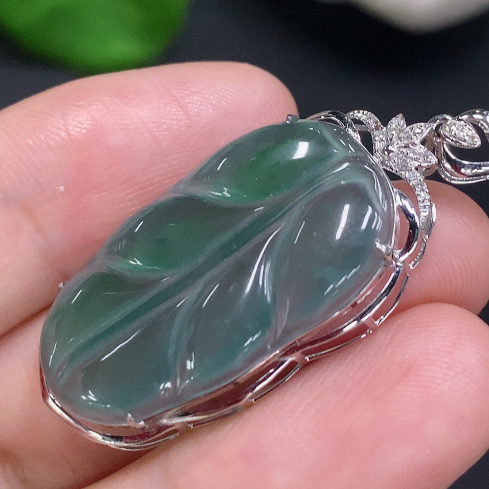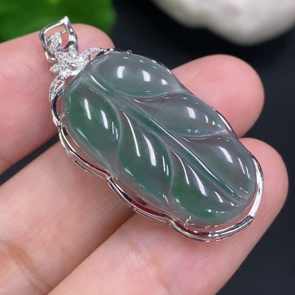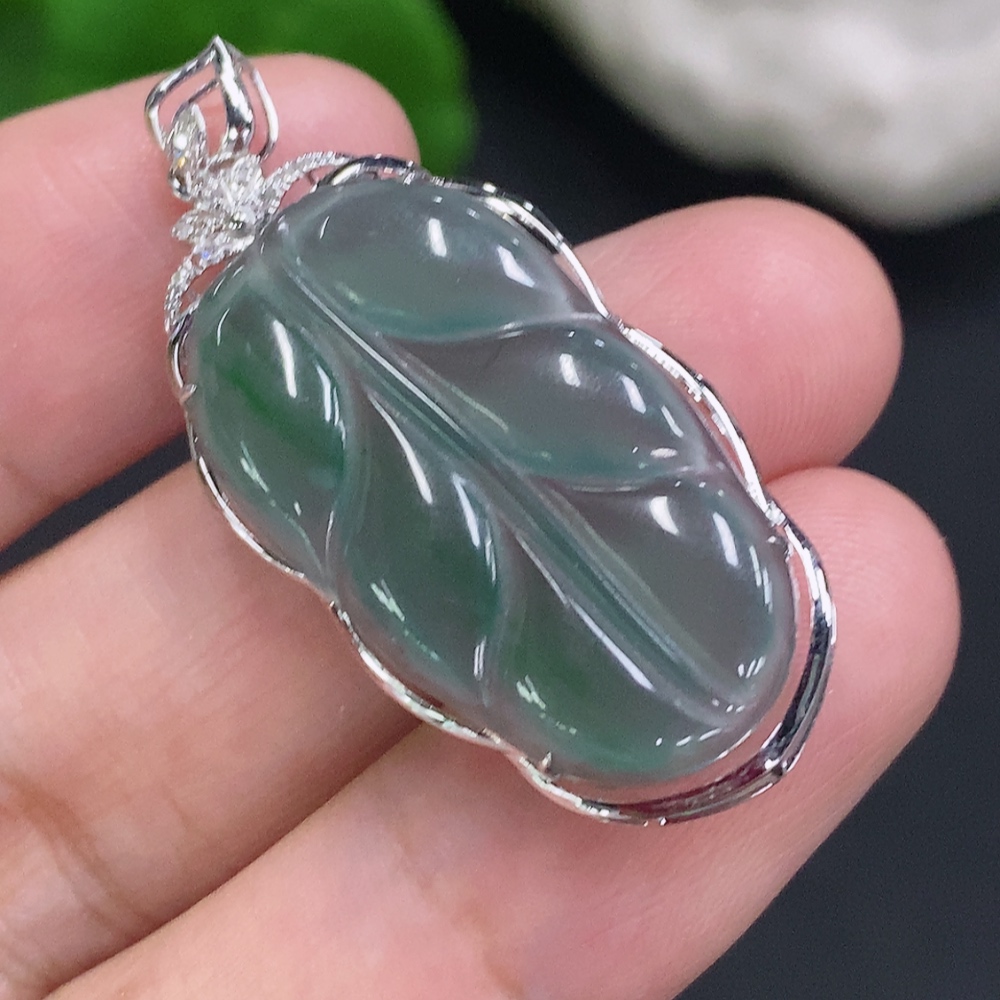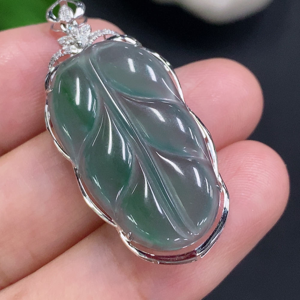 Jadeite Leaf Inlay Pendant 18K Gold Total Weight Approx. 3.1g (With Diamond Accents)